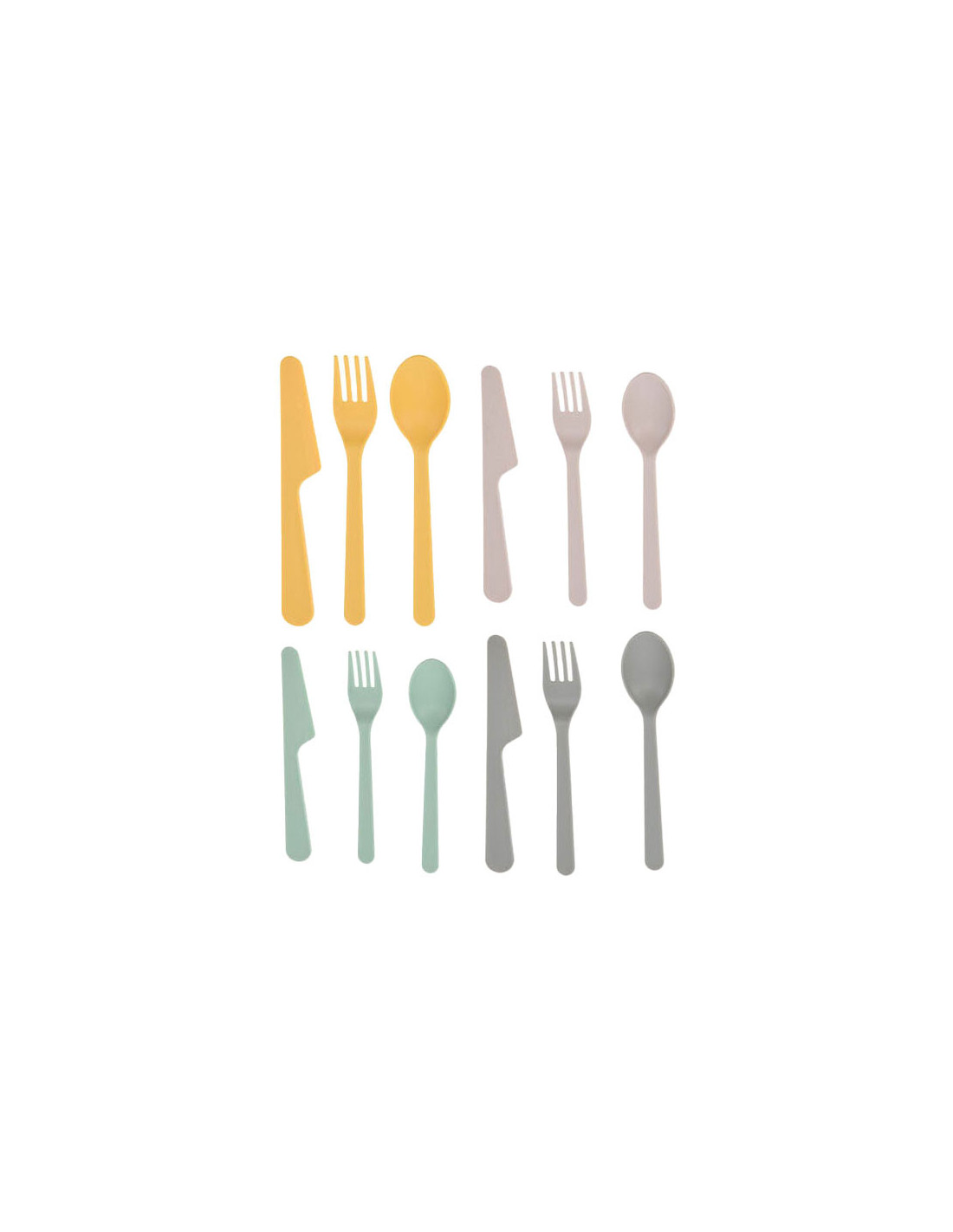 3-delige bestekset gemaakt van gerecycled polypropyleen. Inhoud: 1 vork, 1 mes en 1 lepel.