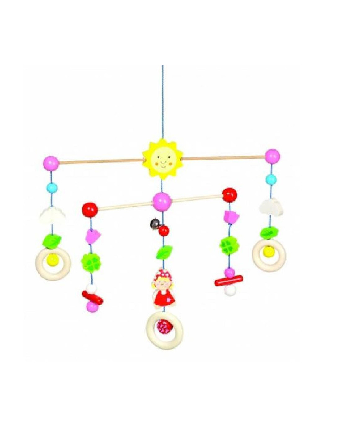 Een mooie mobiel voor de allerkleinsten met prachtige figuurtje. De houten mobiel is een elegant accessoire om boven de babycommode, het babybedje of aan het plafond te hangen. Als de baby met zijn voetjes trapt, begint de mobiel te bewegen en komt het tot leven.