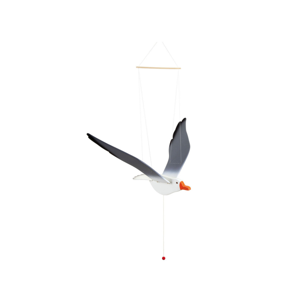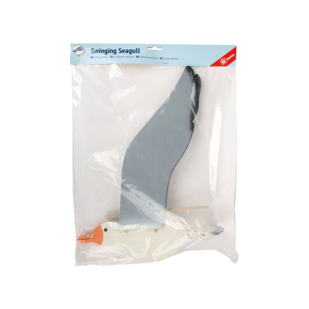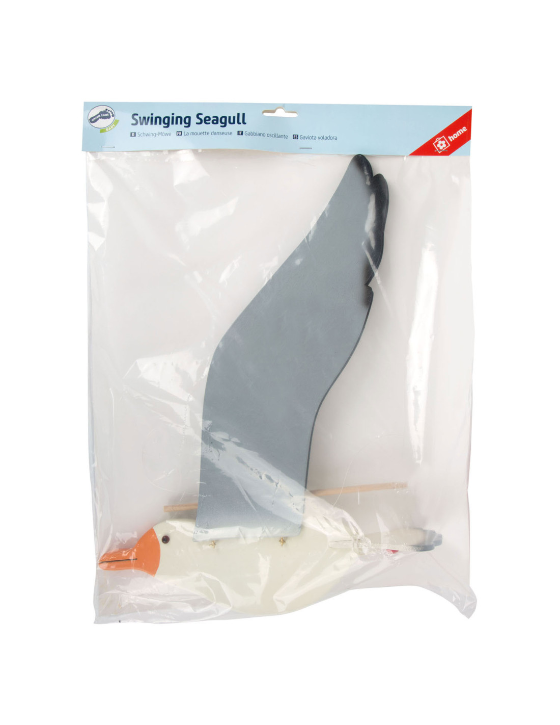 Maritieme look voor de kinderkamer! Deze grote houten meeuw met een spanwijdte van ca. 74 cm laat kinderogen stralen en geeft ze het gevoel op het strand te zijn. Deze swingende meeuw is perfect geschikt als eyecatcher en decoratiestuk voor de kinderkamers van jonge strandfans!