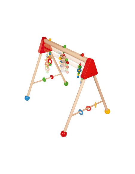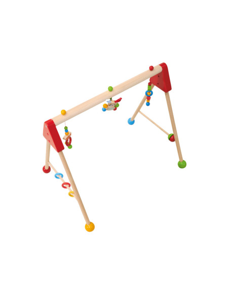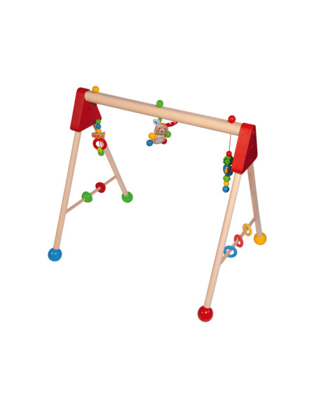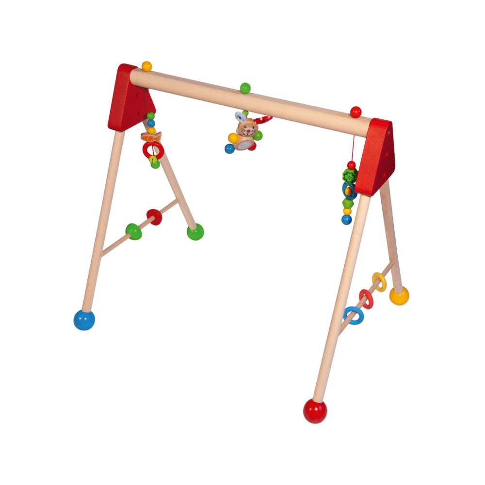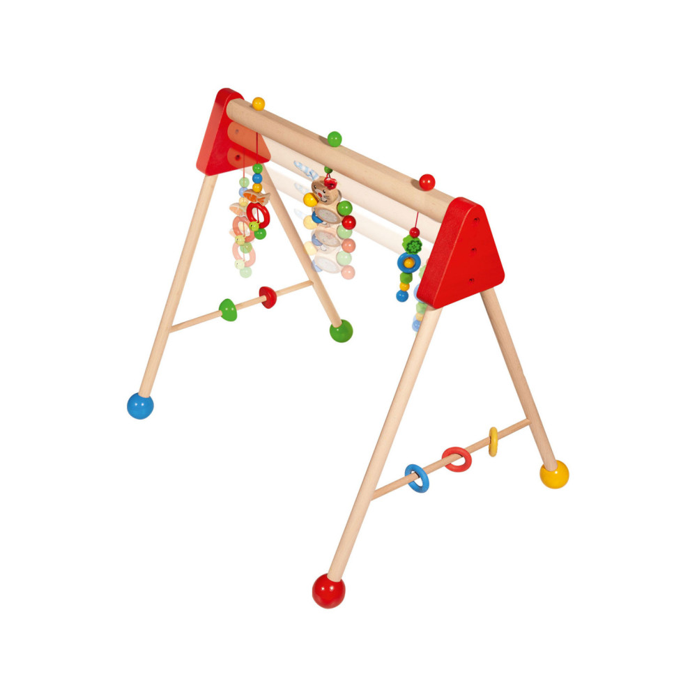 Kleurrijke Eichhorn Baby speelboog met speelactiviteiten en geluiden, waarmee vaardigheden als grijpen, reactievermogen en concentratie getraind worden. Aan de speelboog hangen drie speeltjes om vast te pakken, elk met een andere spannende functie: een belletje, verschillende materialen om te voelen en een schattig konijntje met pluche oren. Aan de zijkanten zitten draaiende elementen en siliconen bijtringen, waar kleine baby's mee kunnen spelen. De speelboog heeft een afmeting van 46 x 52 x 60 cm. Bovendien kan de hoogte eenvoudig en snel in drie stappen worden aangepast, naar 42 cm, 46 cm of 50 cm. Zo groeit de speelboog met je kindje mee! Gemaakt van 100% FSC® hout uit duurzame bosbouw. Geschikt voor kinderen vanaf 3 maanden.