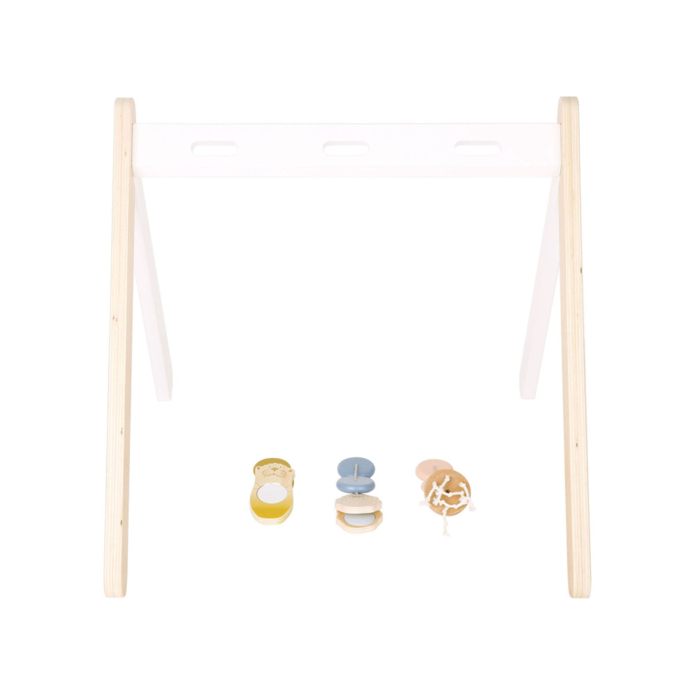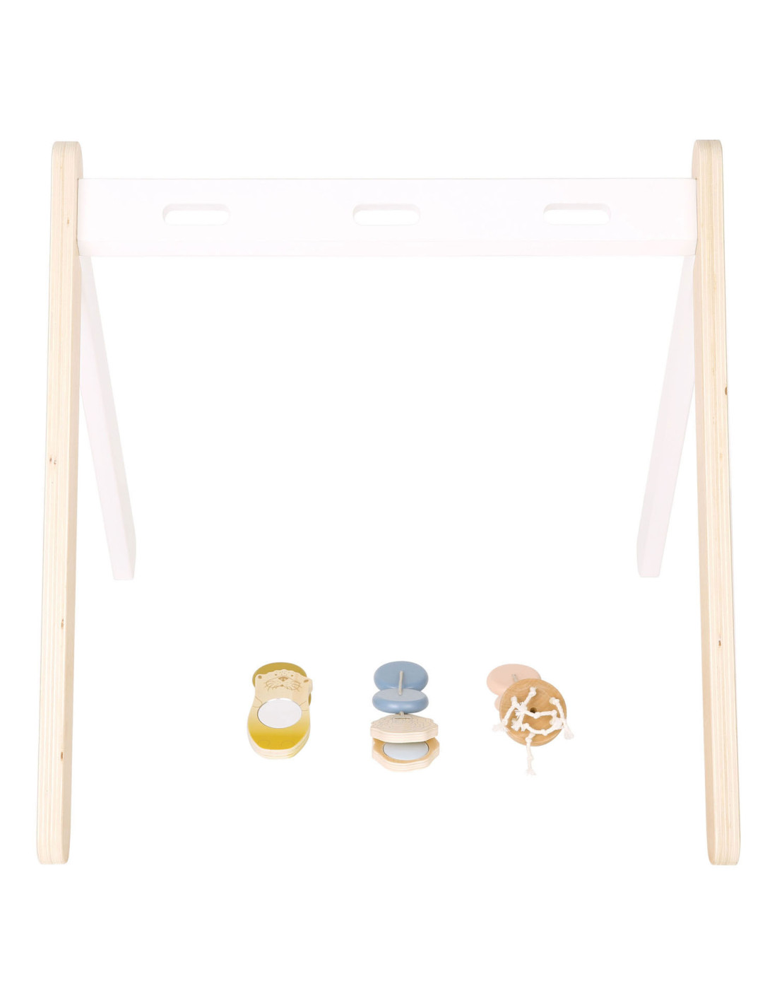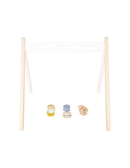 • Grote speelboog van stevig hout voor vermaak en het trainen van de motoriek van liggende baby's