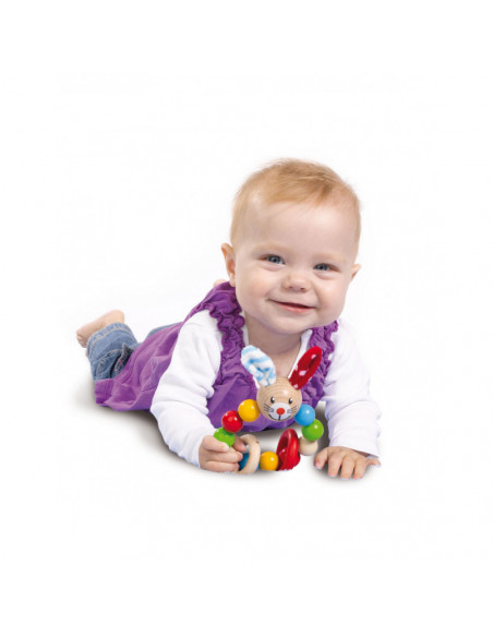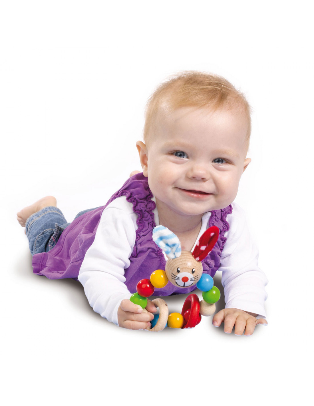 Eicchorn houten baby bijtring in de vorm van een konijn. Het hout is 100% FSC-gecertificeerd. Geschikt voor kinderen vanaf 3 maanden.