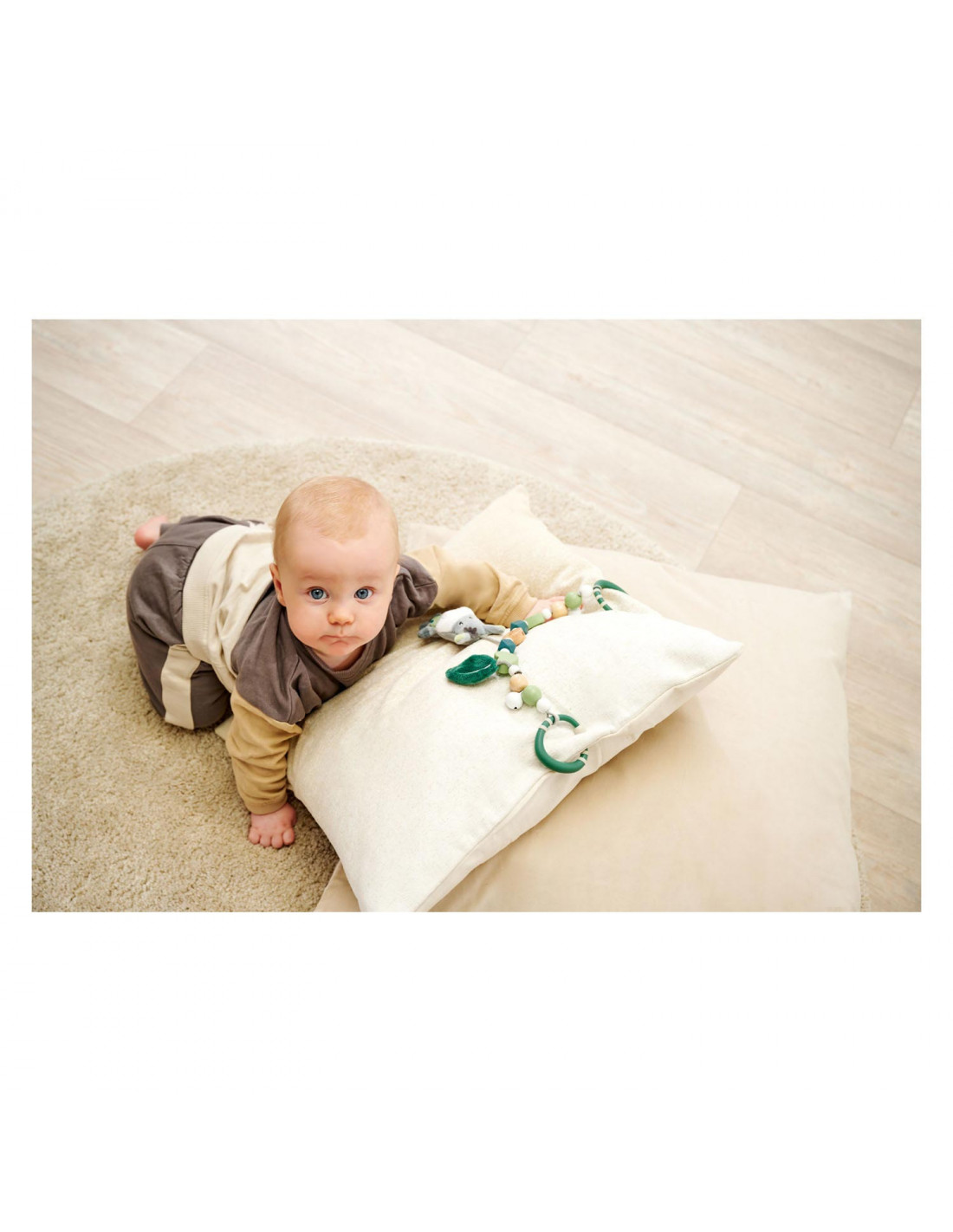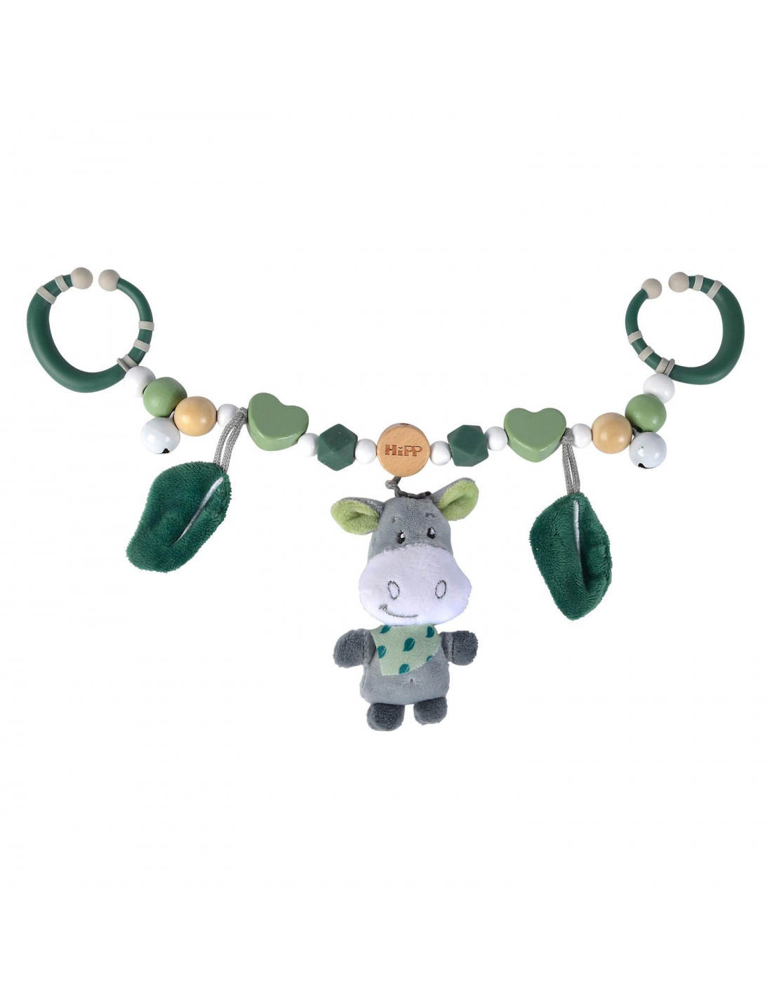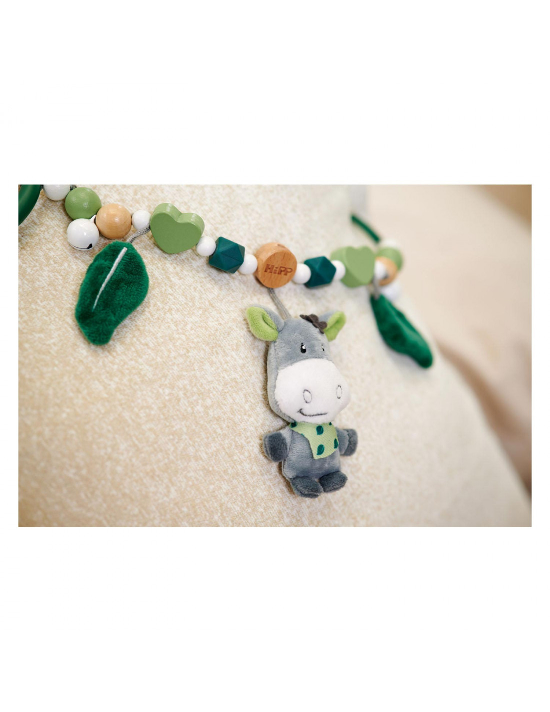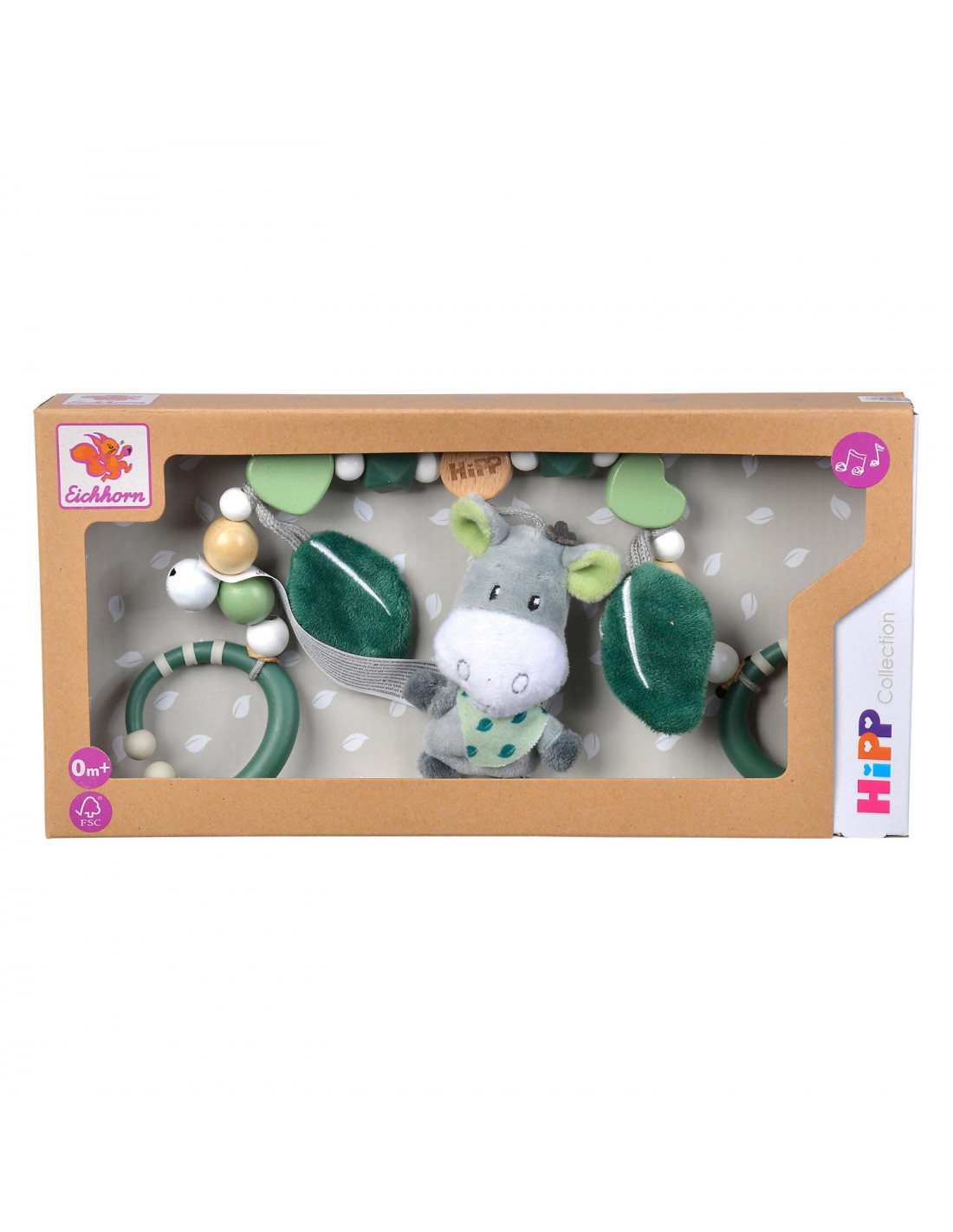 Kinderwagenspanner van Eichhorn Baby HIPP voor baby’s vanaf 0 maanden oud. Deze wagenspanner heeft de kleur groen en heeft natuurlijke vormen. Met sensorische kralen, een zacht pluchen ezeltje en rinkelende belletjes.