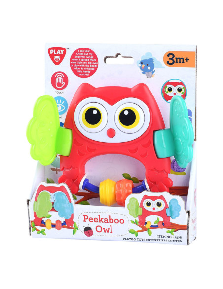 Kiekeboe Uil voor baby’s vanaf 3 maanden oud. Dit leuke babyspeeltje heeft bijtbare vleugels die open en dicht kunnen slaan, sensorische kraaltjes en draaiende ogen. Geschikt voor kinderen vanaf 3 maanden oud.