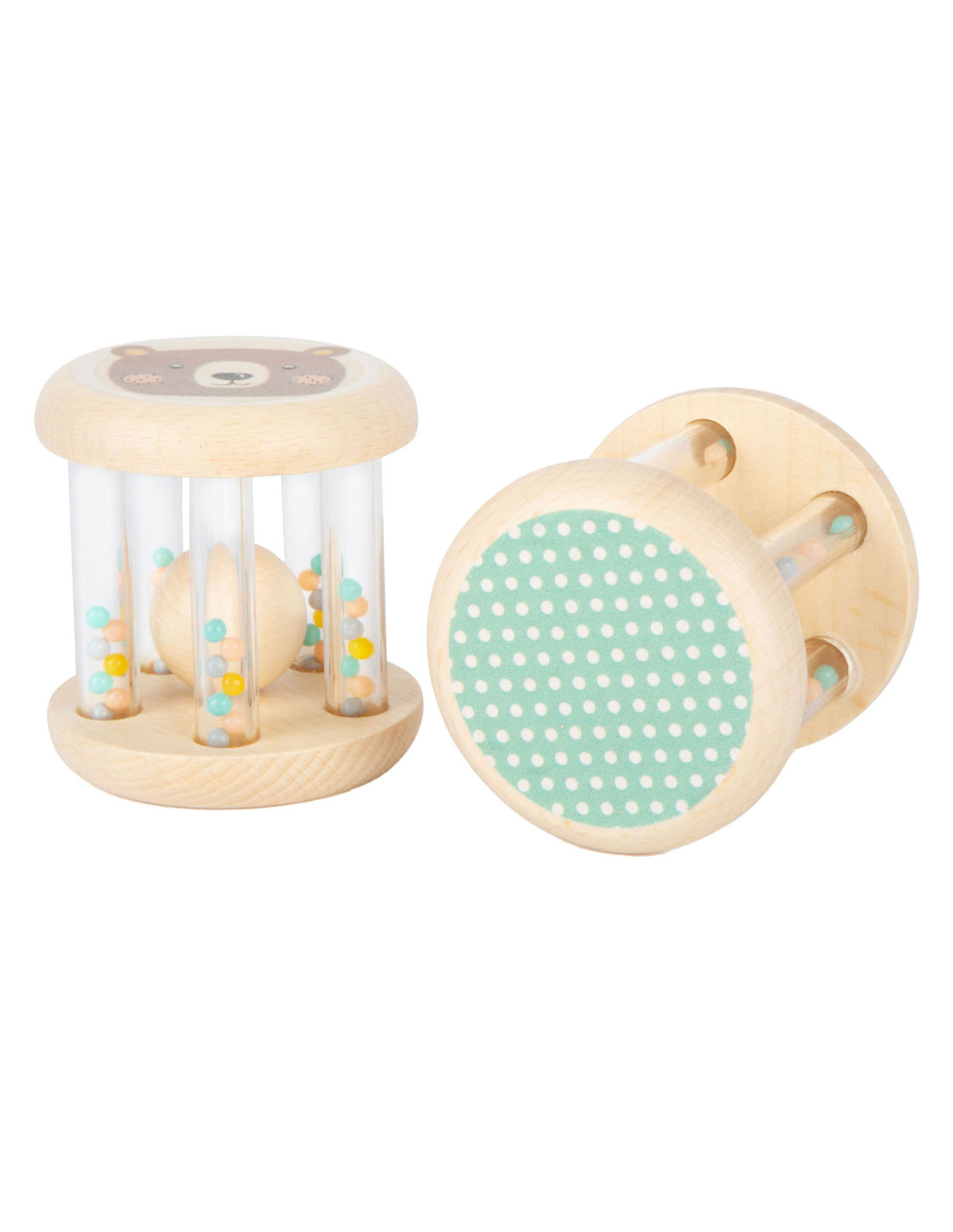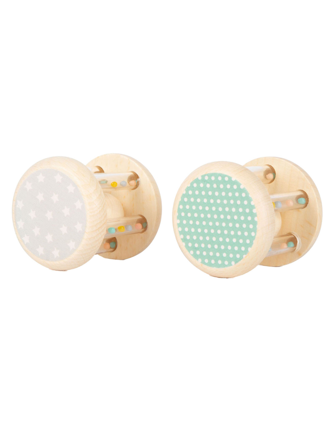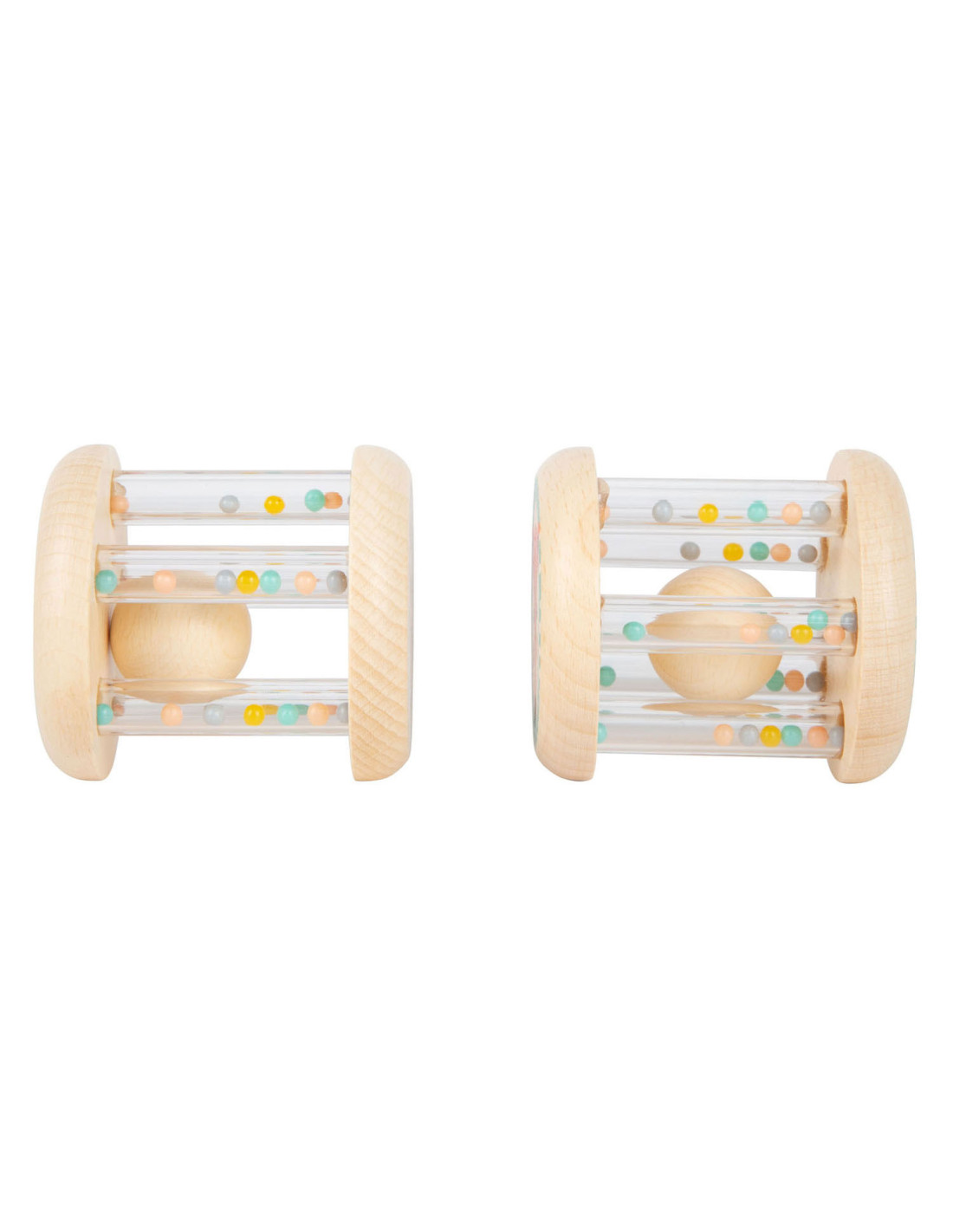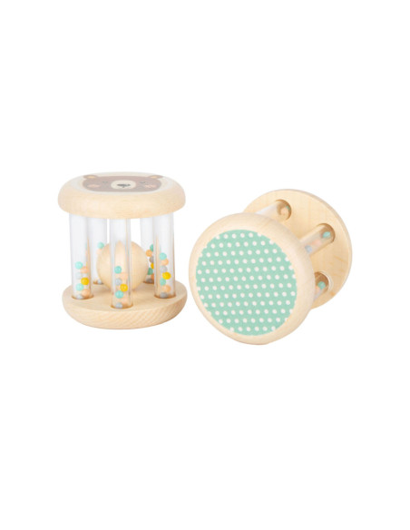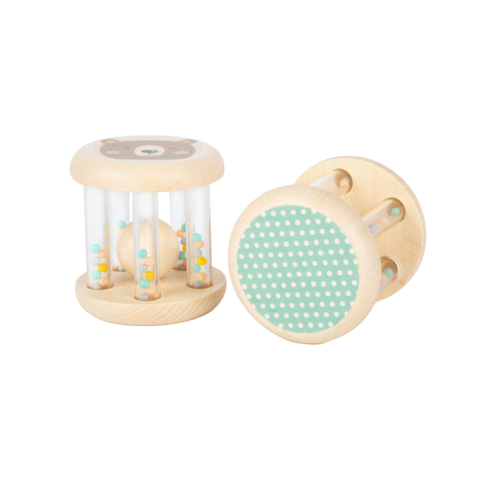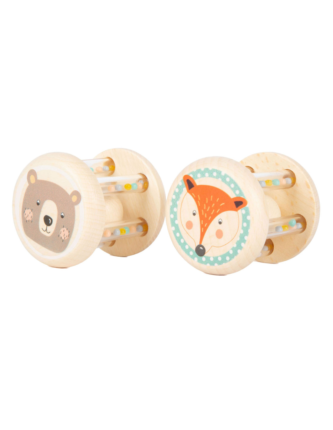 Grijpen, schudden en rammelen! In deze babyrammelaars met kleine, kleurrijke kraaltjes in transparante buisjes klettert een houten balletje rond. Wat leuk voor je ogen en oren! Het is ideaal babyspeelgoed in een set van 2, voor het ontwikkelen van motorische vaardigheden en zintuiglijke waarneming. Bijzonder gemakkelijk vast te pakken en vast te houden voor baby's! Veel natuurlijk houtmateriaal en de delicate pastelkleuren en schattige dierenprints maken deze rammelaars tot echte blikvangers onder het babyspeelgoed. Geschikt vanaf 0 maanden.