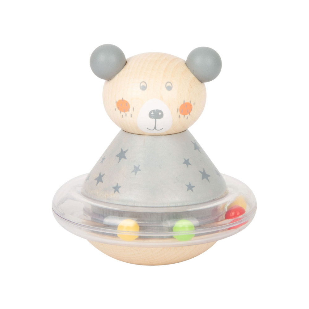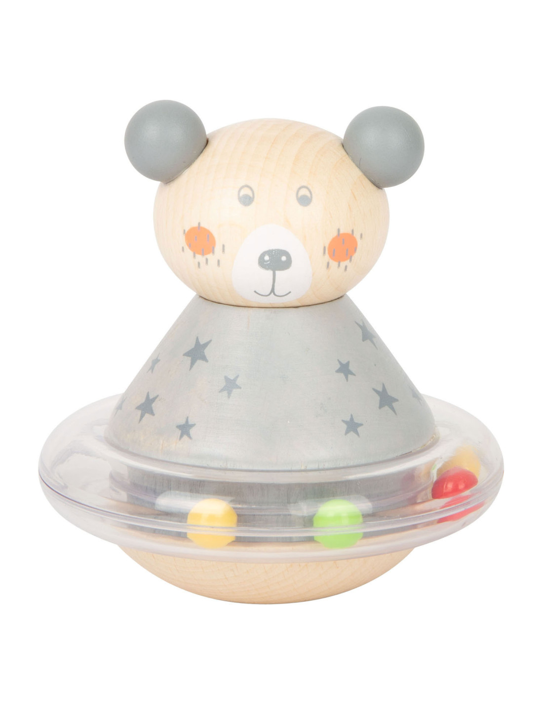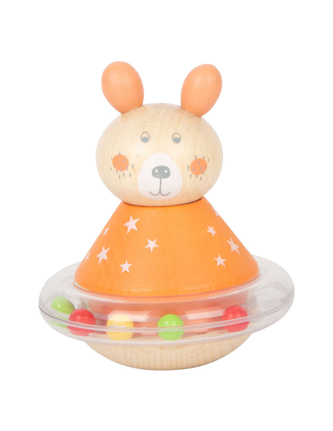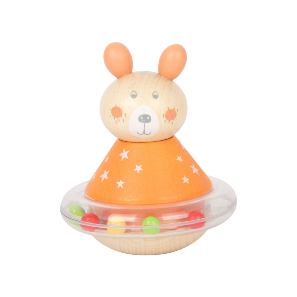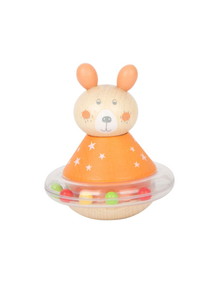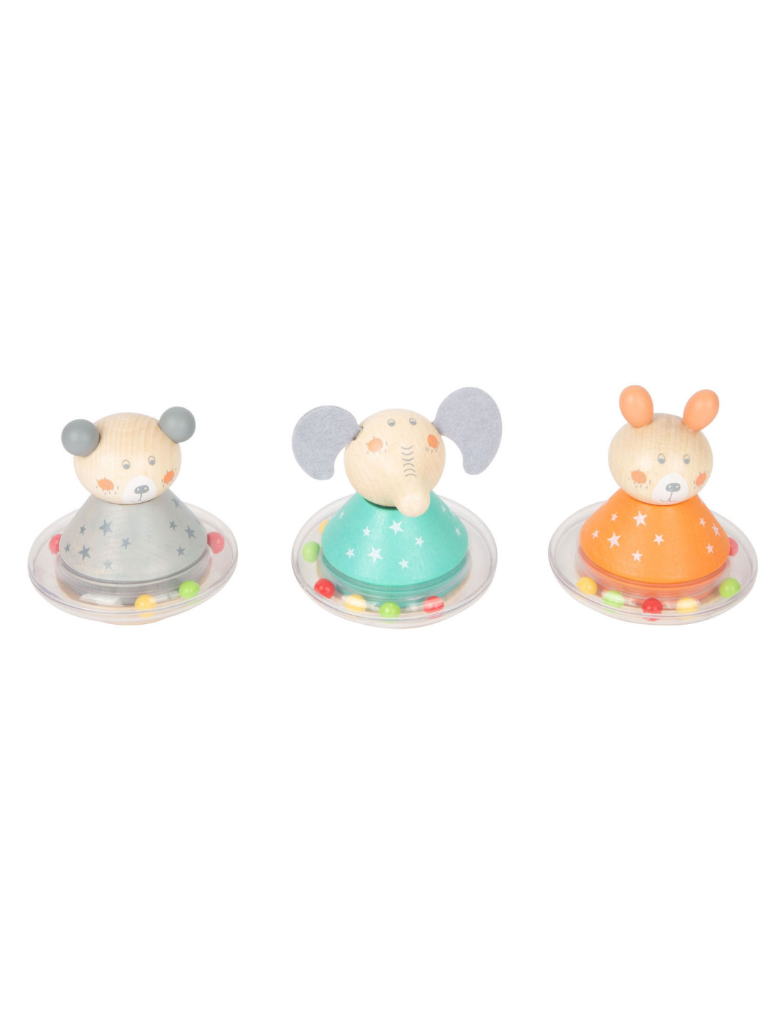 Sta op, Beer! Wanneer dit schattige houten tuimelaarspeelgoed wordt geduwd, wiegen ze heen en weer terwijl de kleurrijke kleine kraaltjes in de omwikkelbare plastic ring opwindende geluiden maken. De kunststof ring is draaibaar en biedt fascinerende speelmogelijkheden, net zoals wanneer het hoofd aan een elastische band zou worden vastgemaakt. De beer, het konijn en de olifant maken ook indruk als rammelaar en grijpspeeltje! Dit buitengewone babyspeelgoed staat garant voor langdurig speelplezier. Verveling zal hier niet snel bij komen kijken!