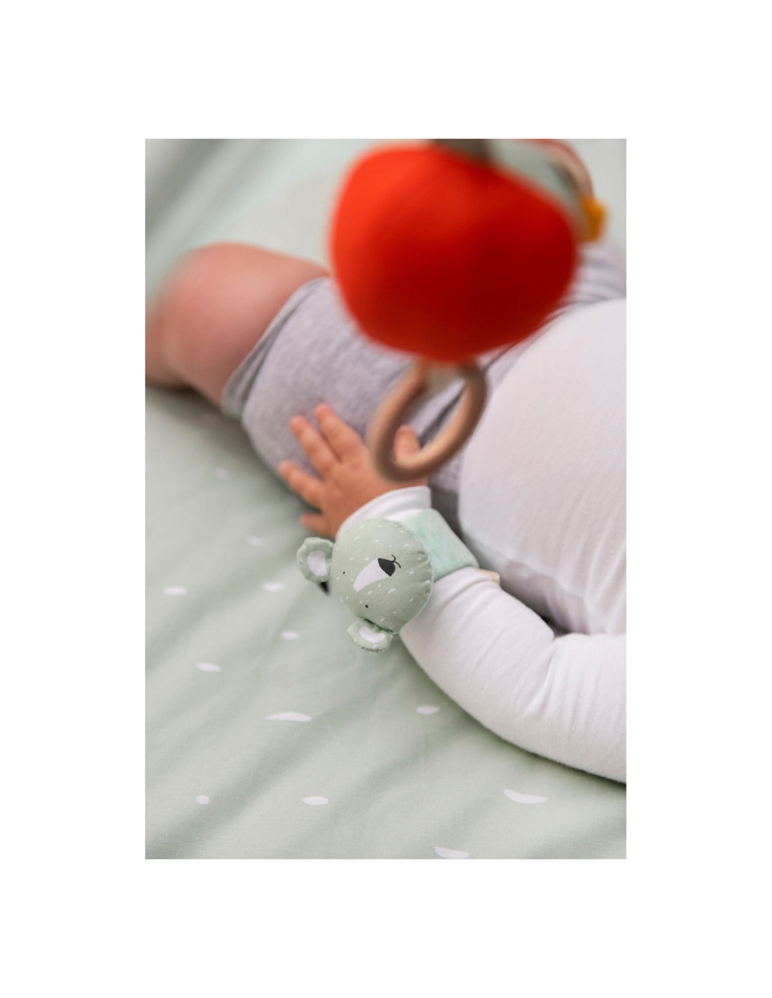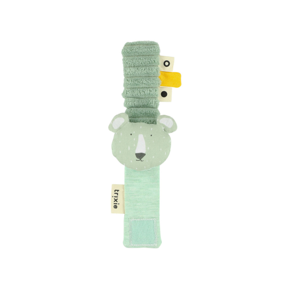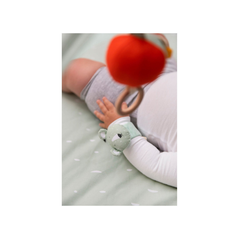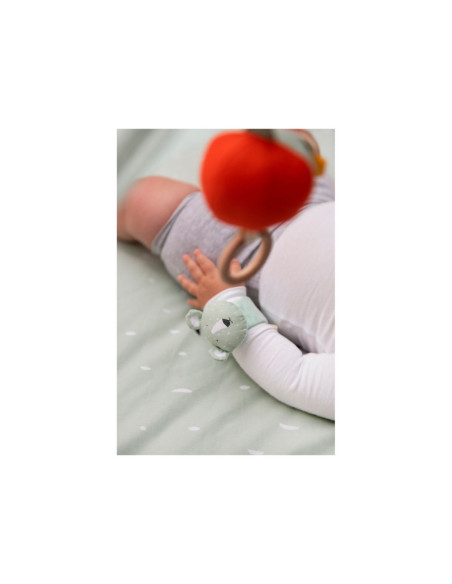 Onze armbandrammelaar houdt je baby een hele tijd bezig dankzij de vele geluiden die het maakt bij elke beweging. Het spant niet te hard rond de pols en is gemaakt uit de zachtste materialen.