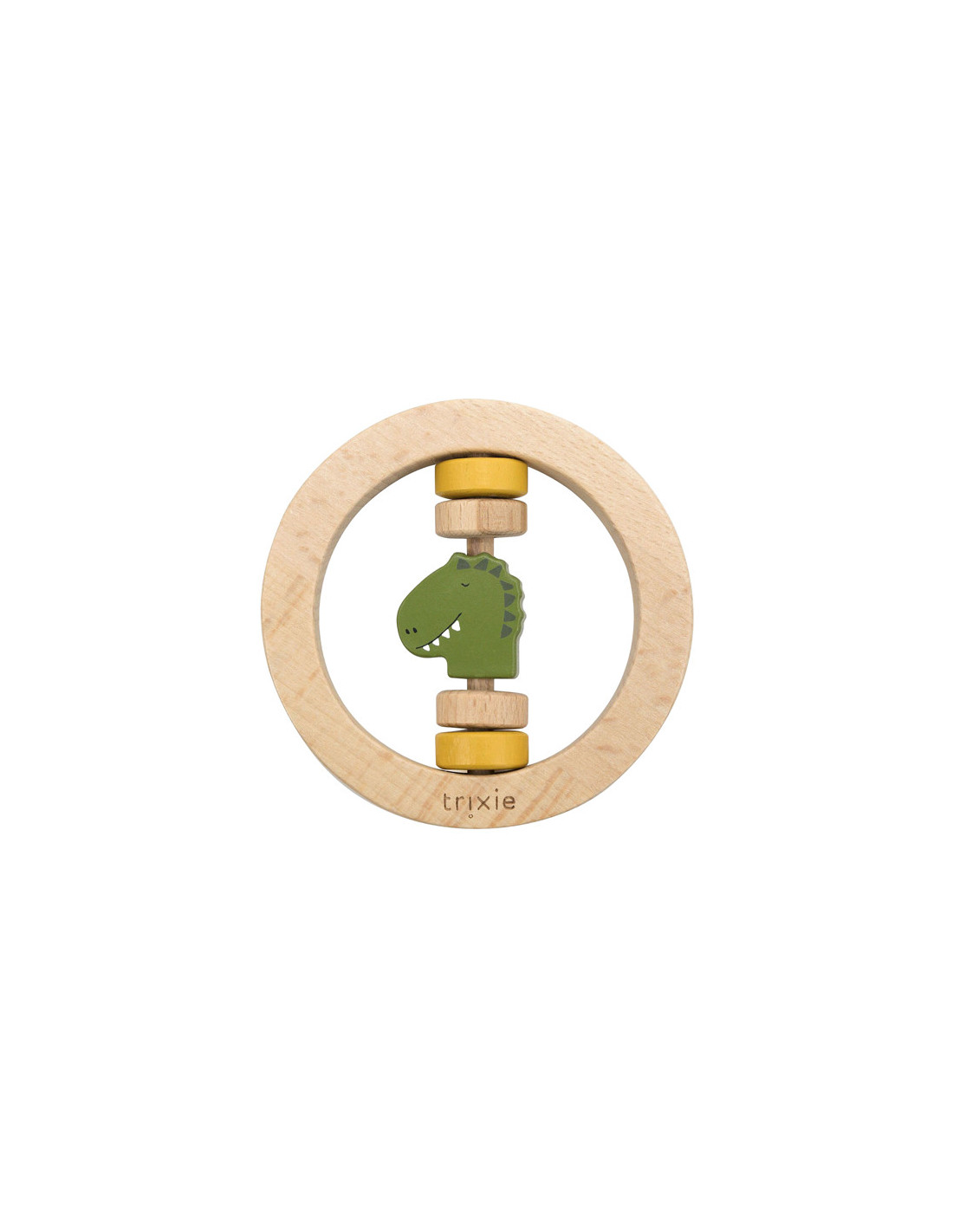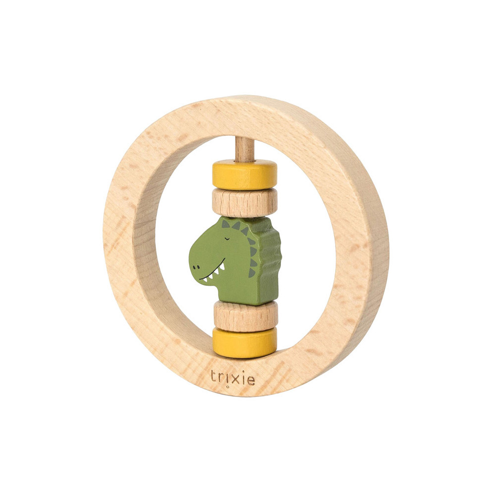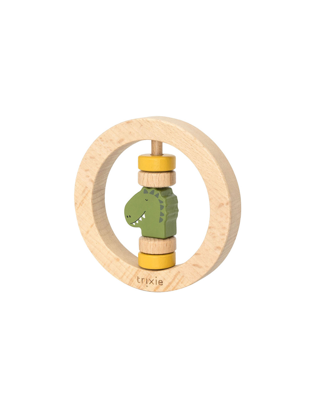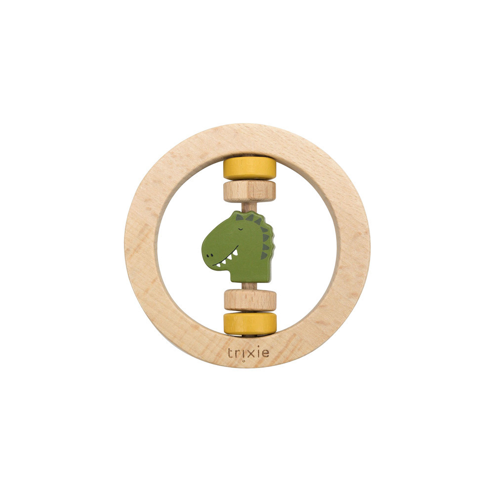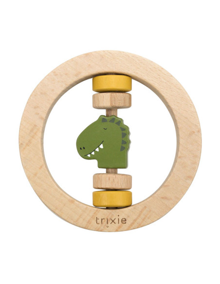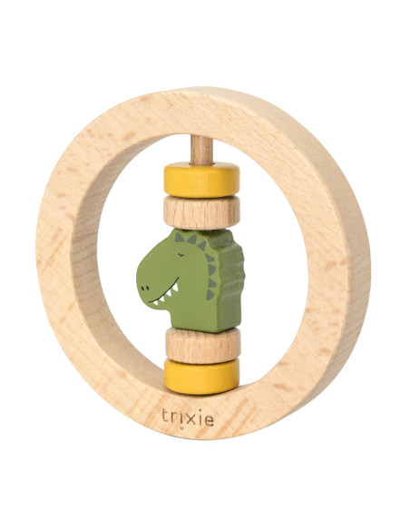 Met de Trixie Mr. Dino Houten Ringrammelaar kan je kindje lekker rammelen en spelen. Wanneer je de rammelaar heen en weer beweegt zal het vrolijk rammelen, dit zal je kindje erg interessant vinden. De houten figuren in het midden van de bijtring kunnen ronddraaien en zorgen voor het rammel-geluid. De ring kan ook dienen als bijtring wanneer de tandjes beginnen door te komen. Door op het houten speeltje te bijten zal het tandvlees verzachten en de pijn verminderen. Dankzij de houten ring is de rammelaar gemakkelijk vast te pakken met kleine kinderhandjes. Verder is de vrolijke rammelaar gemaakt van hoogwaardig materiaal.