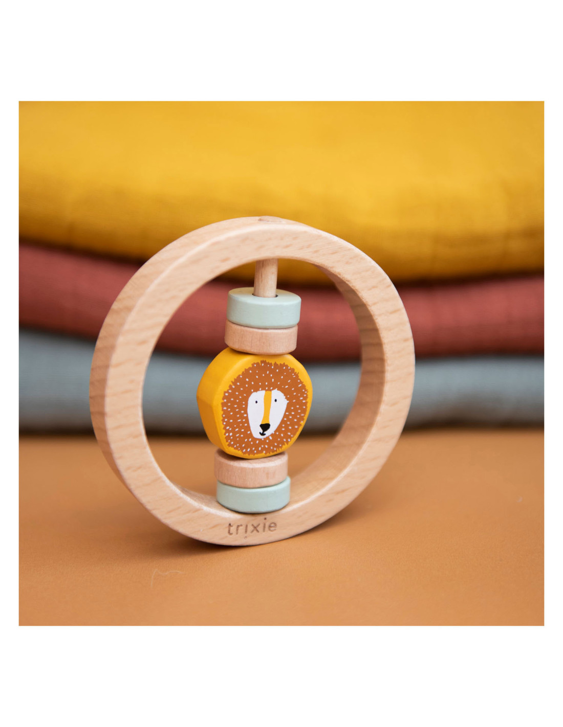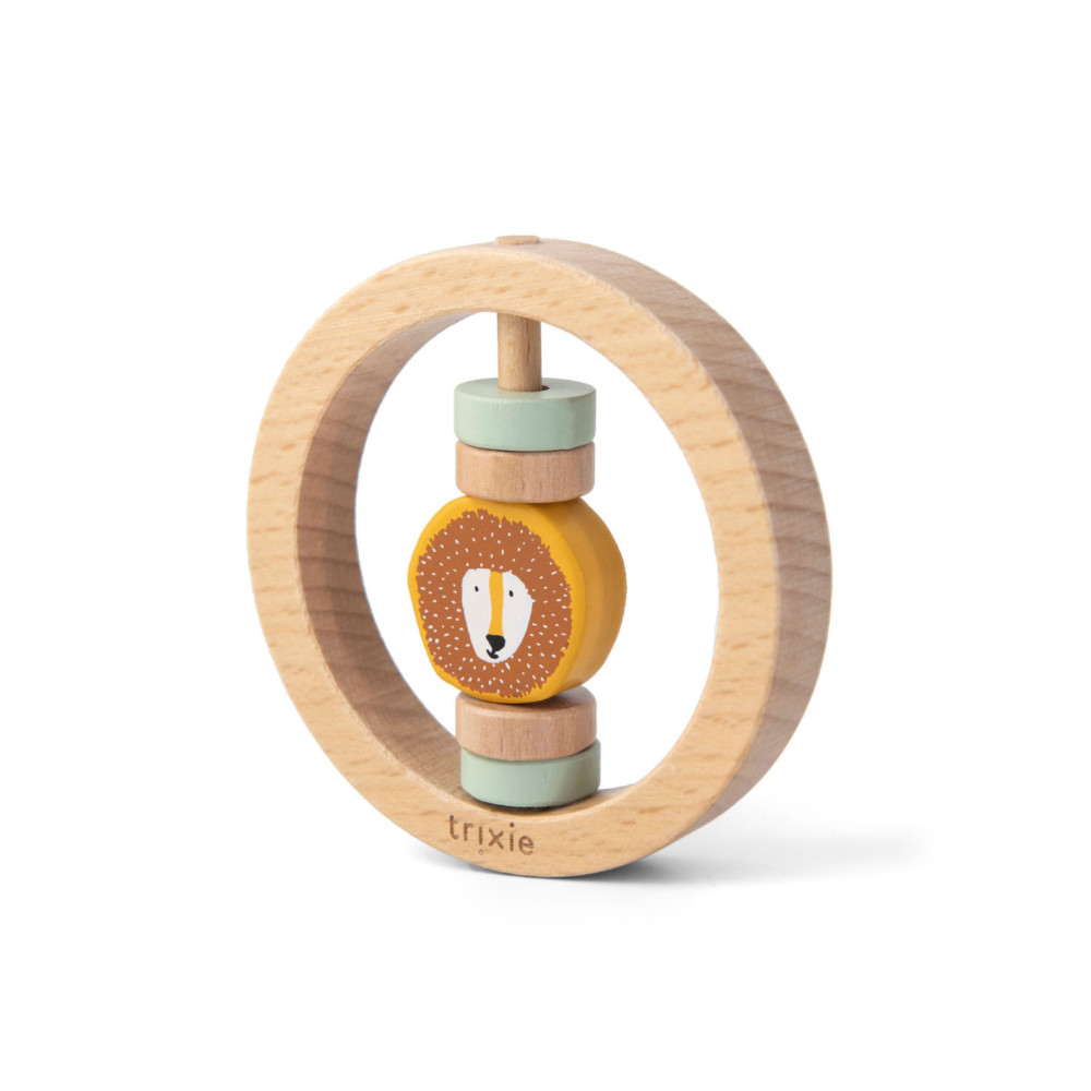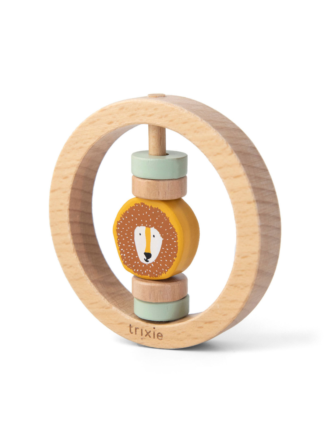 Deze ronde rammelaar is perfect voor kleine vingertjes! Ze kunnen voelen aan de verschillende elementen en het geheel maakt een leuk geluid als je ermee schudt. Deze rammelaar is gemaakt van hoogwaardig 100% FSC © gecertificeerd beukenhout. Alle verven zijn op waterbasis en veilig voor baby's. Verkrijgbaar in verschillende dieren.