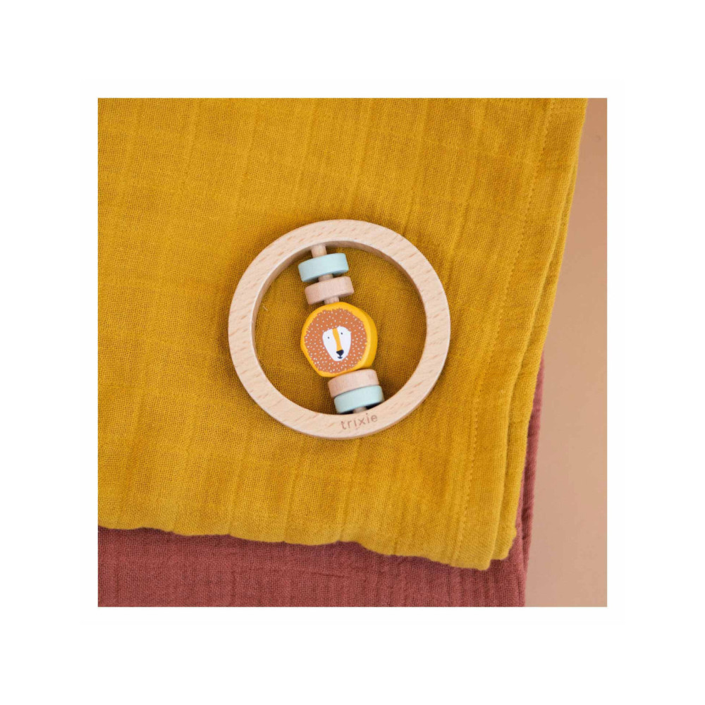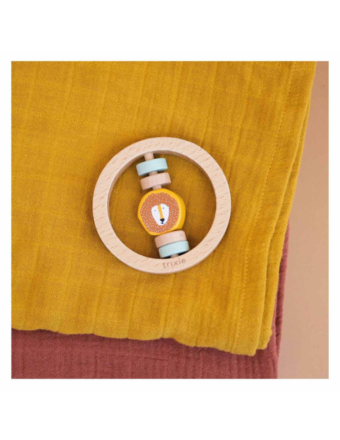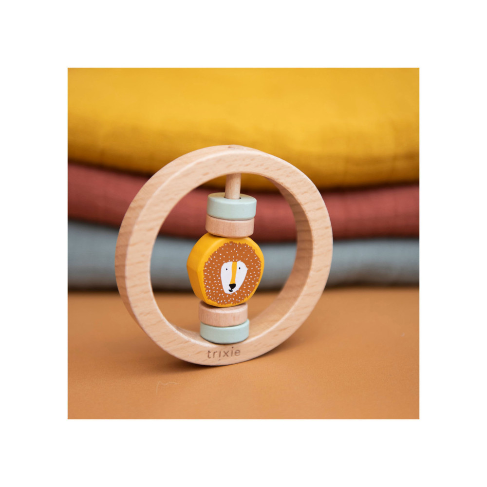 Deze ronde rammelaar is perfect voor kleine vingertjes! Ze kunnen voelen aan de verschillende elementen en het geheel maakt een leuk geluid als je ermee schudt. Deze rammelaar is gemaakt van hoogwaardig 100% FSC © gecertificeerd beukenhout. Alle verven zijn op waterbasis en veilig voor baby's. Verkrijgbaar in verschillende dieren.