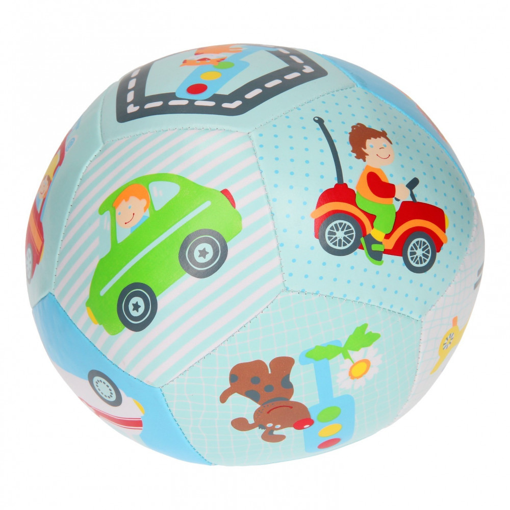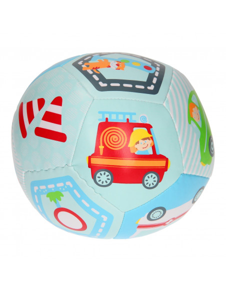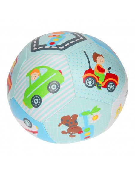Deze leuke lichtblauwe softbal van Happy World is prima geschikt voor baby's, maar ook voor de iets grotere kinderen. Gooi de softbal naar elkaar toe of laat hem rollen. De bal voelt zacht aan en is voorzien van voertuig afbeeldingen.