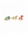 Houten dinofiguur met wielen. Door het gat in het midden, is het figuur gemakkelijk vast te houden.