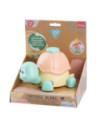 Lopende schildpad met drukknop. De schildpad is geschikt voor kinderen vanaf 24 maanden en heeft een formaat van 15 x 9 x 10 cm. Geen batterijen nodig.