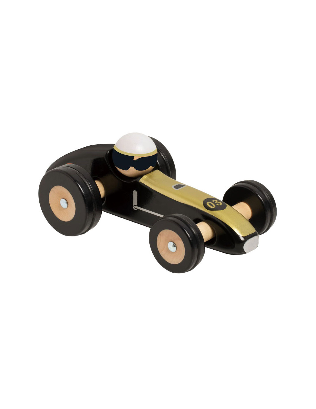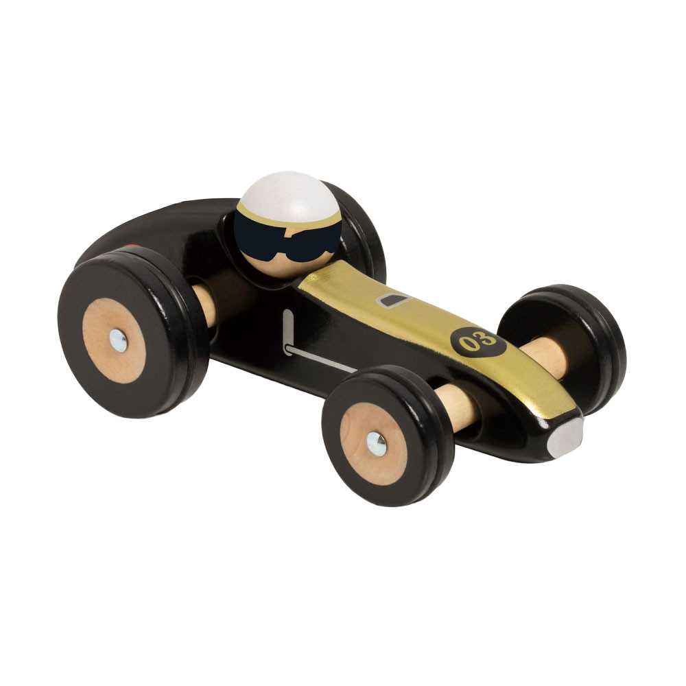 Deze prachtige zwarte raceauto is geïnspireerd op de beroemdste auto's uit de geschiedenis van de autosport en met hun stuursysteem kunt u de sensaties van leuk rijden herontdekken. De kleintjes kunnen hun fijne motoriek en hand-oogcoördinatie oefenen. Deze auto's zijn handgemaakt van hout en zijn ook geweldige verzamelobjecten voor oudere kinderen!