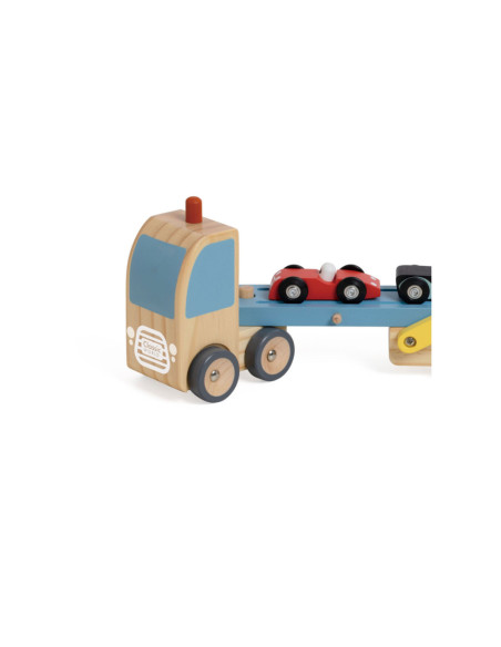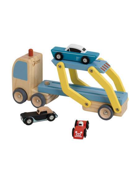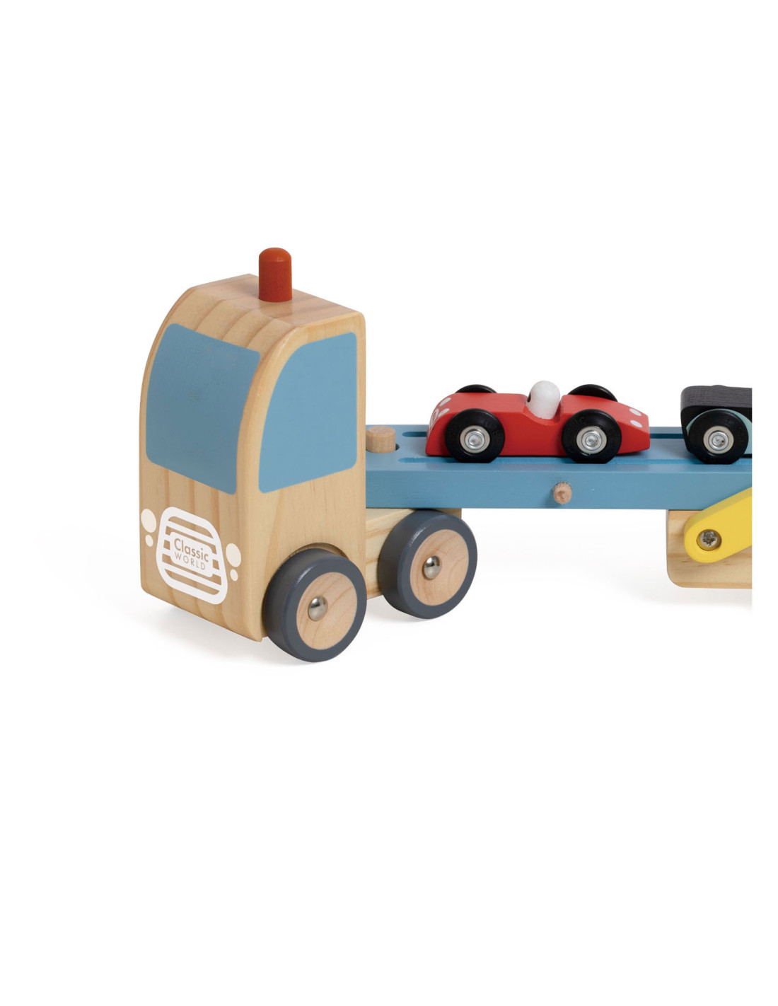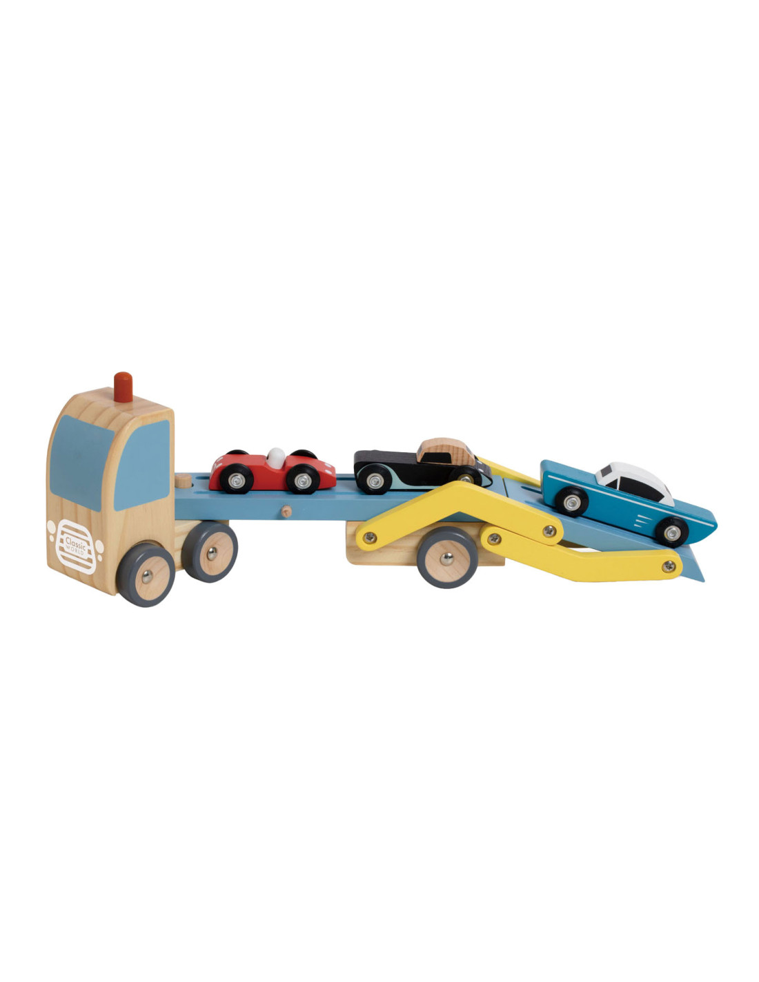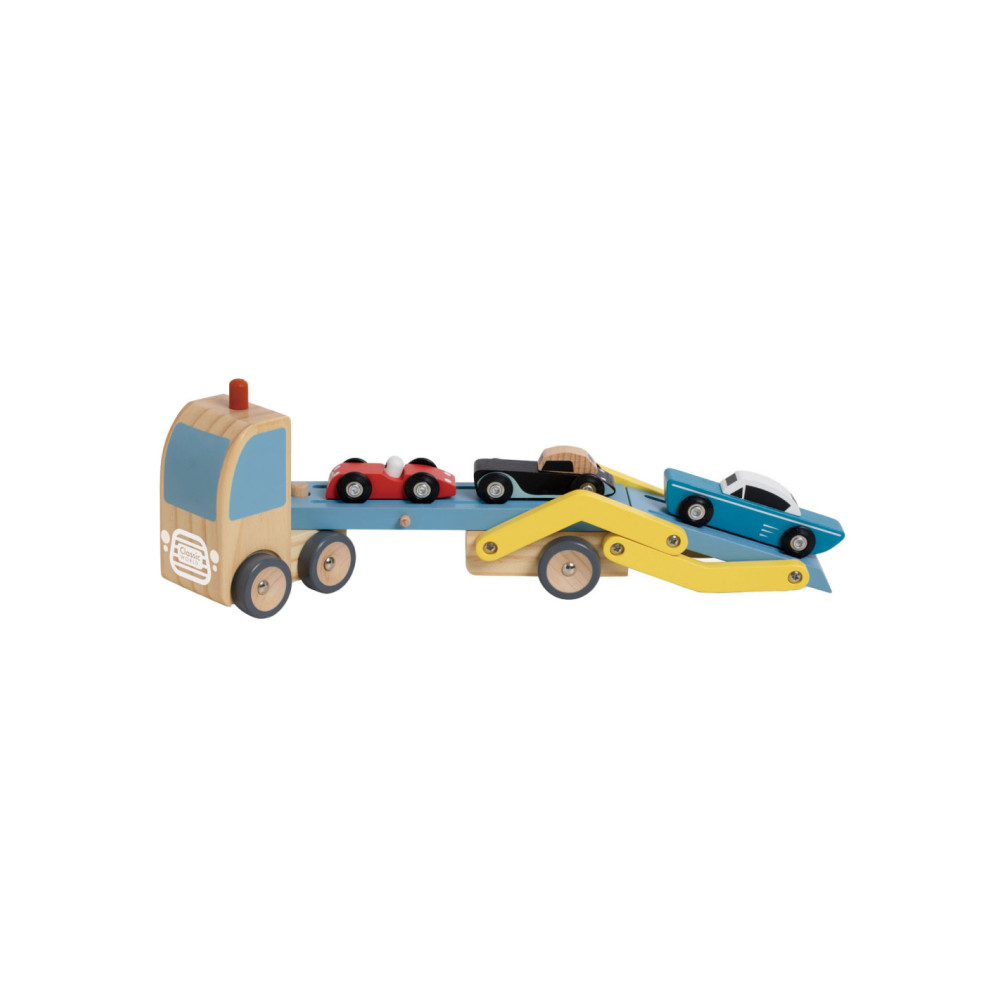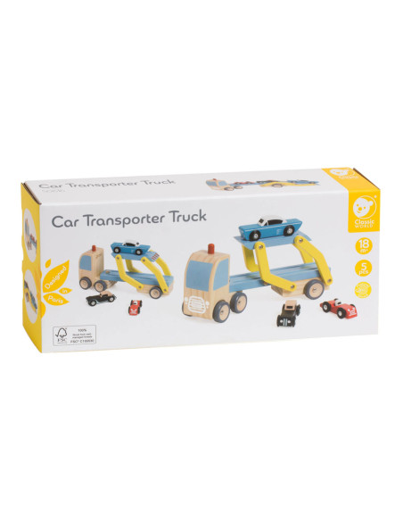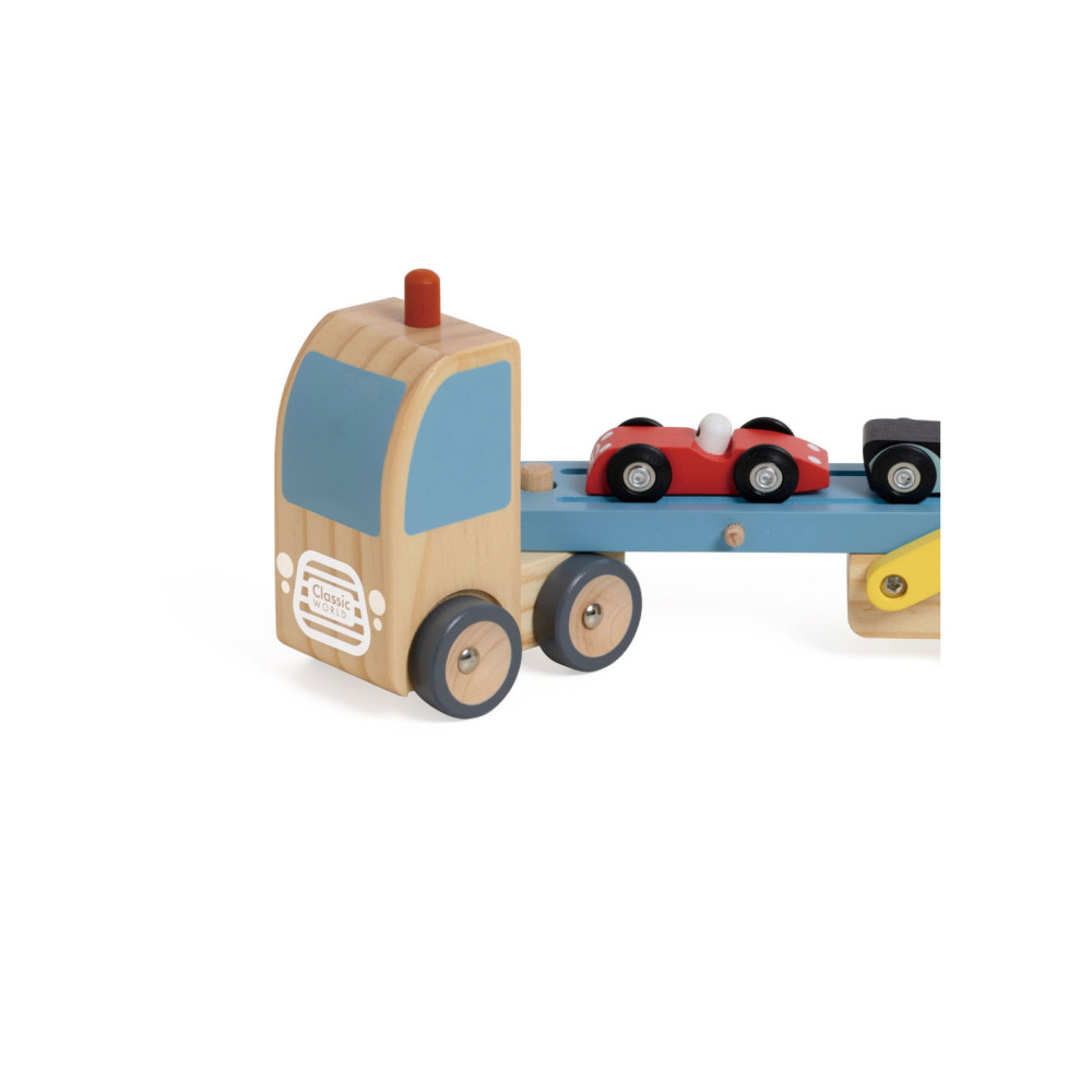 Deze nieuwe houten autotransporter is een duurzame en hoogwaardige speelgoedset met 1 vrachtwagen en 3 voertuigen. Het helpt kinderen bij het ontwikkelen van fijne motoriek, beweging en hand-oogcoördinatie en biedt urenlang laad- en losplezier.