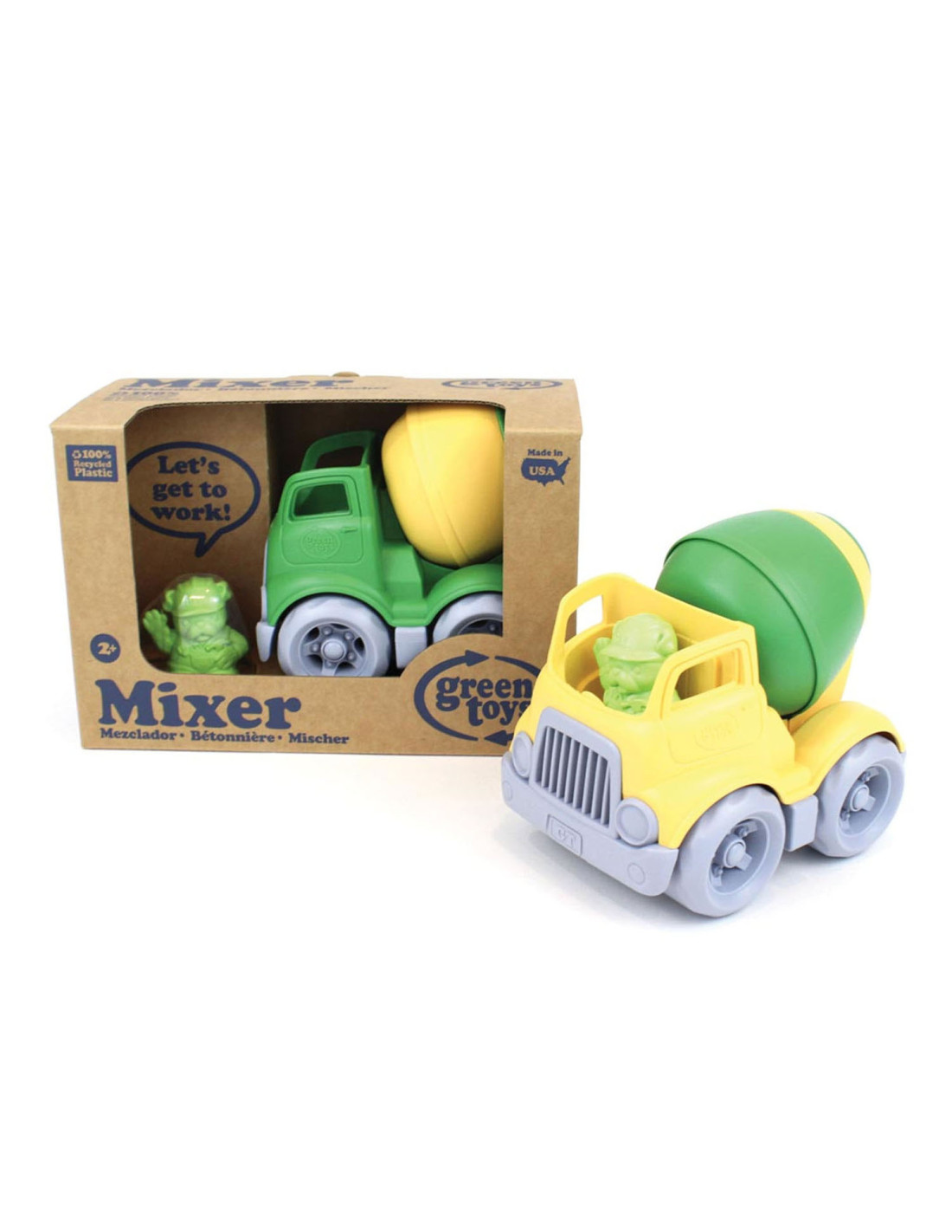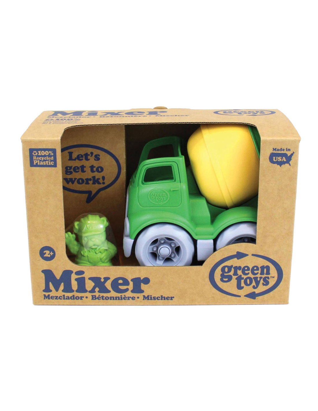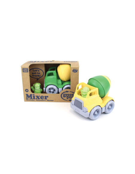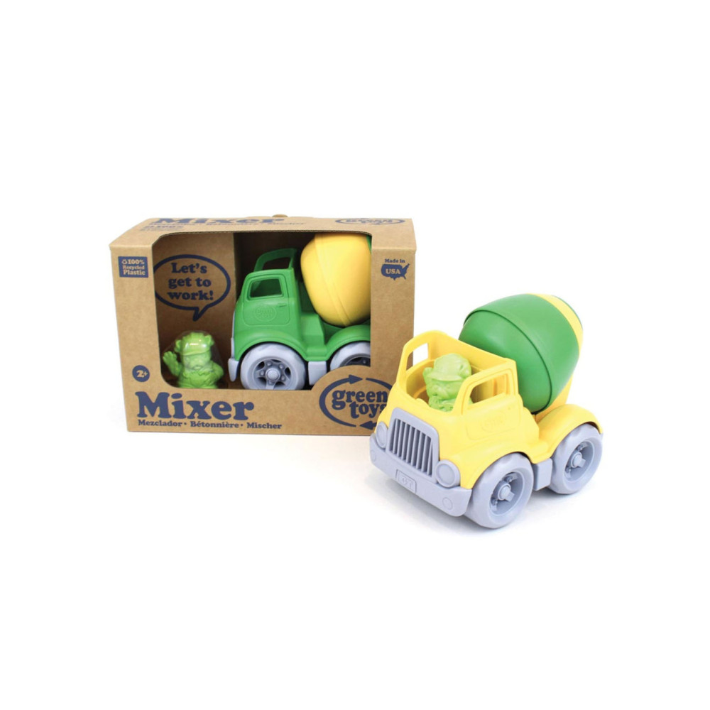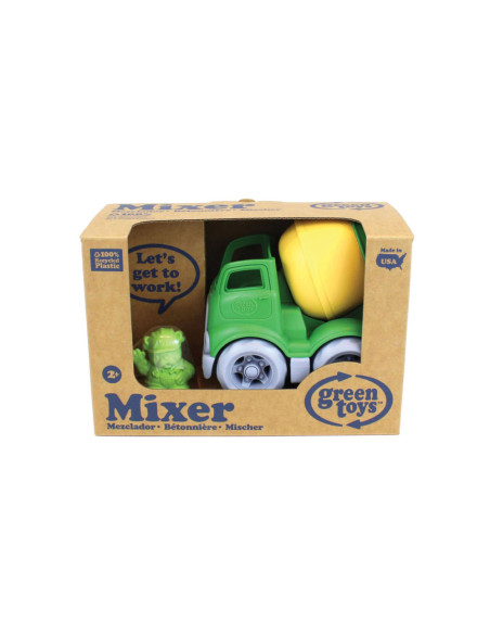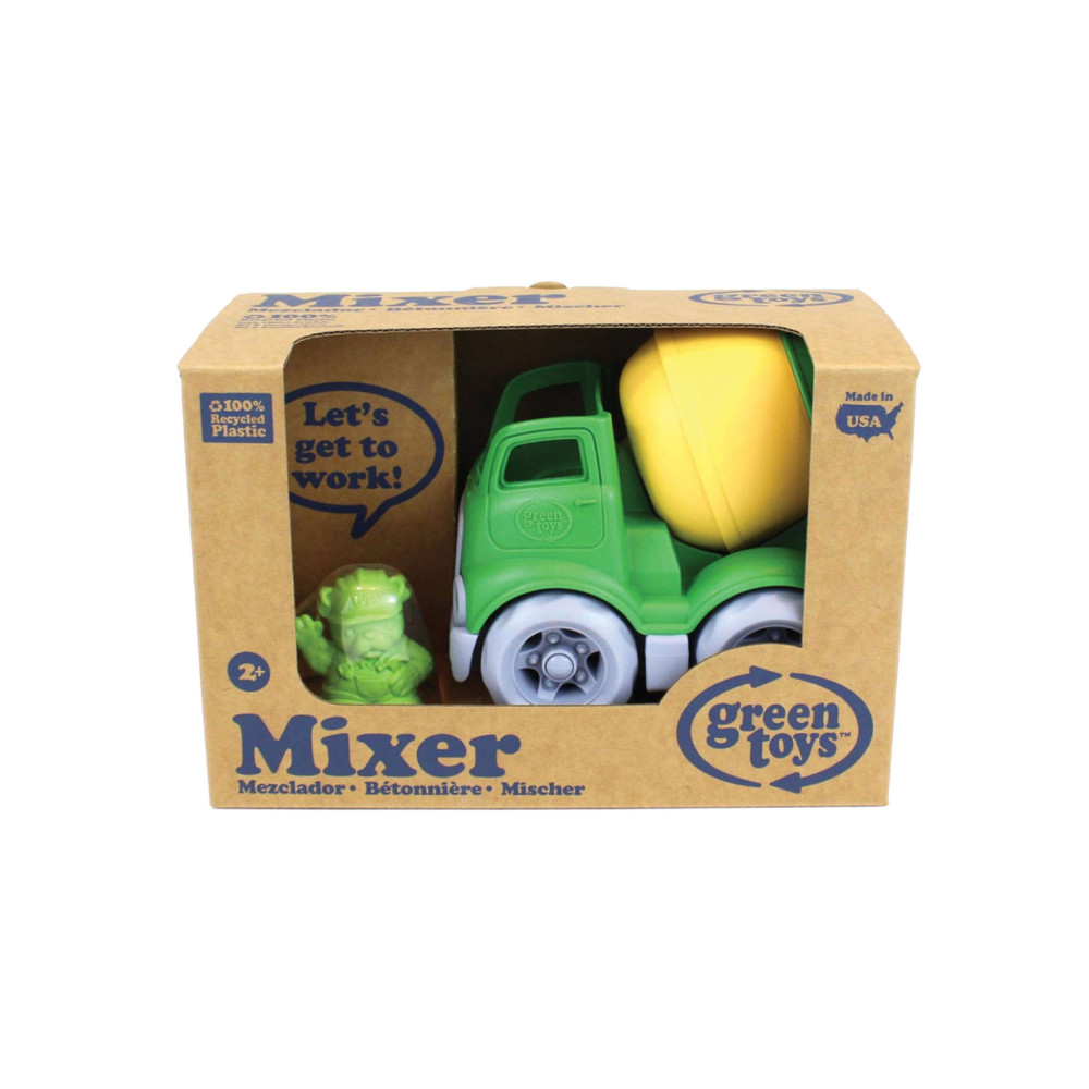 Green Toys mixer, gemaakt van 100% gerecycled plastic. Inclusief bouwvakker bulldog als chauffeur. Afmetingen: 12,7 bij 11,4 bij 14,6 centimeter. Geschikt voor kinderen van 2 tot 5 jaar oud.