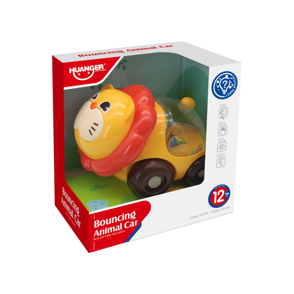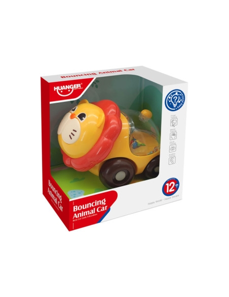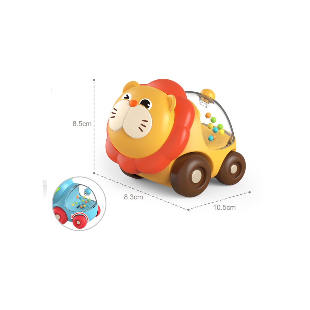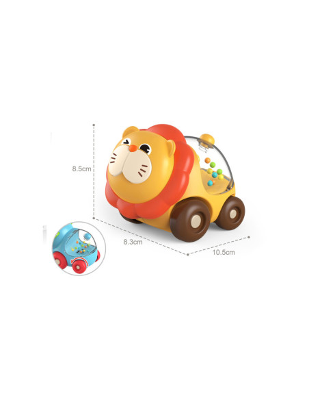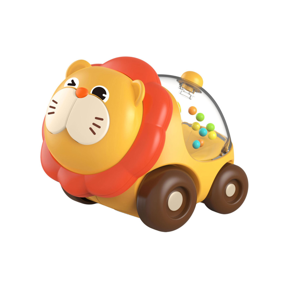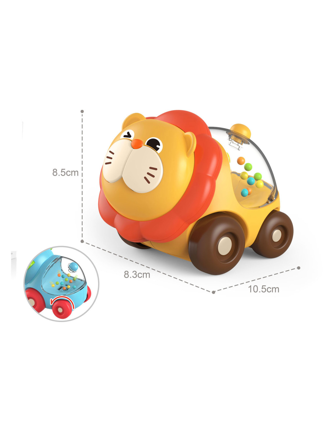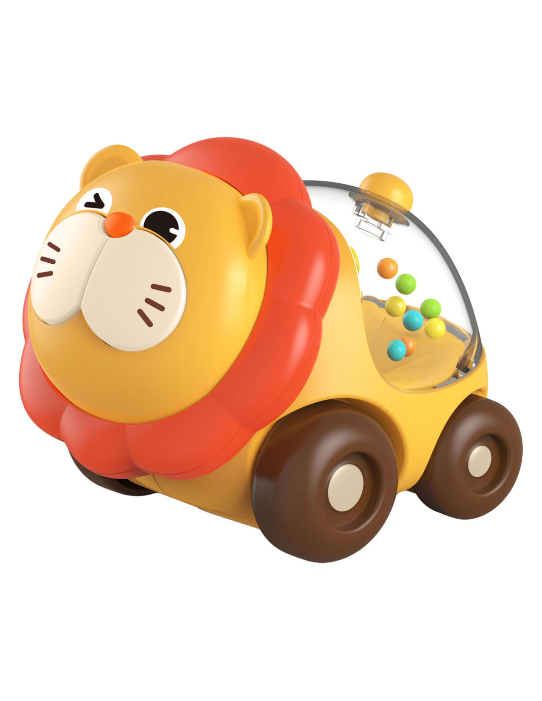 Pas op! Daar komt een leeuw om de hoek gereden. Deze auto die geschikt is voor peuters heeft aan de achterkant een doorzichtige koepel waar verschillende kleurrijke balletjes in zitten. Zodra de auto in beweging komt vliegen deze hierdoorheen. De koepel kan ook geopend worden door de staart van de leeuw te verwijderen. Deze auto in de vorm van een leeuw stimuleert de hand- oogcoördinatie en het gehoor. Geschikt voor kinderen vanaf 12 maanden.