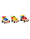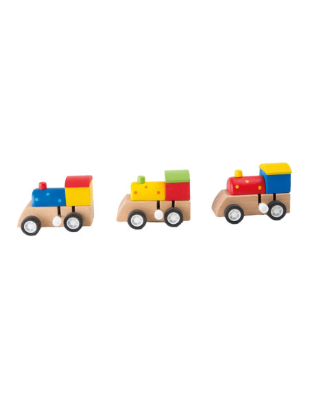 Kleurrijk geverfde treinen voor super opwindplezier! De treinen zijn gemaakt van felgekleurd, FSC® 100% -gecertificeerd hout met kunststof banden. Als het wiel wordt gedraaid, tuffen ze rond zonder enige rook.