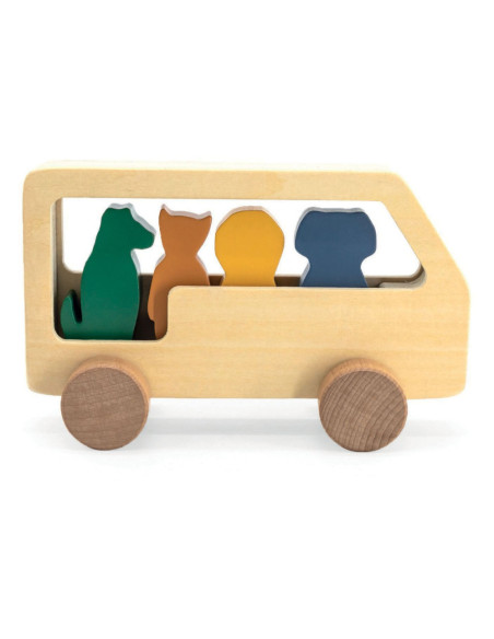 De bus en de dieren zijn gemaakt van 100% FSC ® gecertificeerd hout. Alle verven zijn op waterbasis en veilig voor baby's."