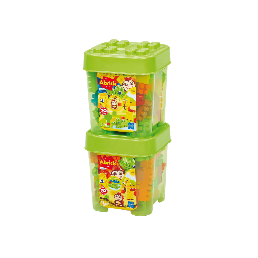 EEN GROTE PRAKTISCHE BAK: deze set bevat 1 transparante opbergbak met een deksel dat als basis dient voor de constructie en gevuld met 70 stapelstenen in verschillende kleuren en vormen.