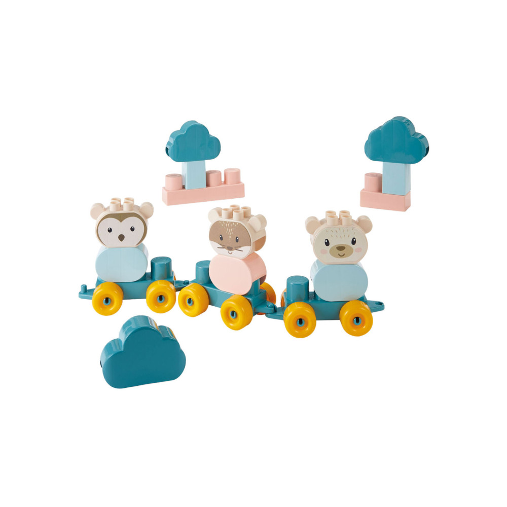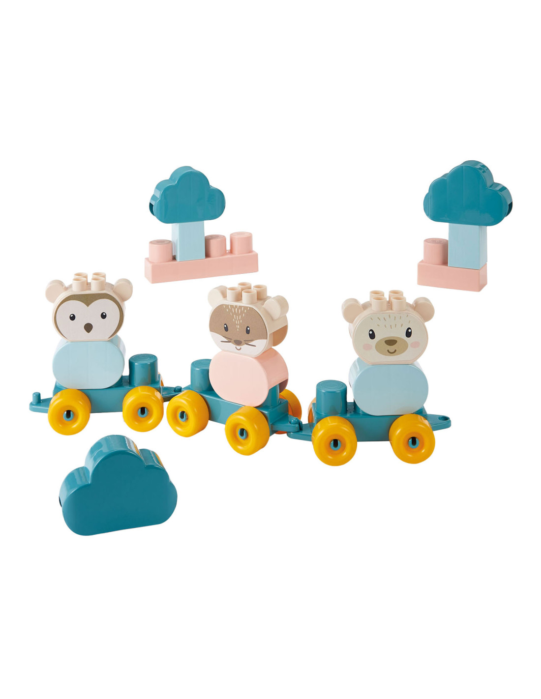 LATEN WE OP REIS GAAN: ontmoet in deze zachtgekleurde trein je 3 kleine metgezellen voor geweldige avonturen! Je kind kan zijn eigen trein en zijn landelijke decor bouwen. Handig: zodra het avontuur voorbij is, kan deze trein worden opgeborgen in de kunststof koffer!