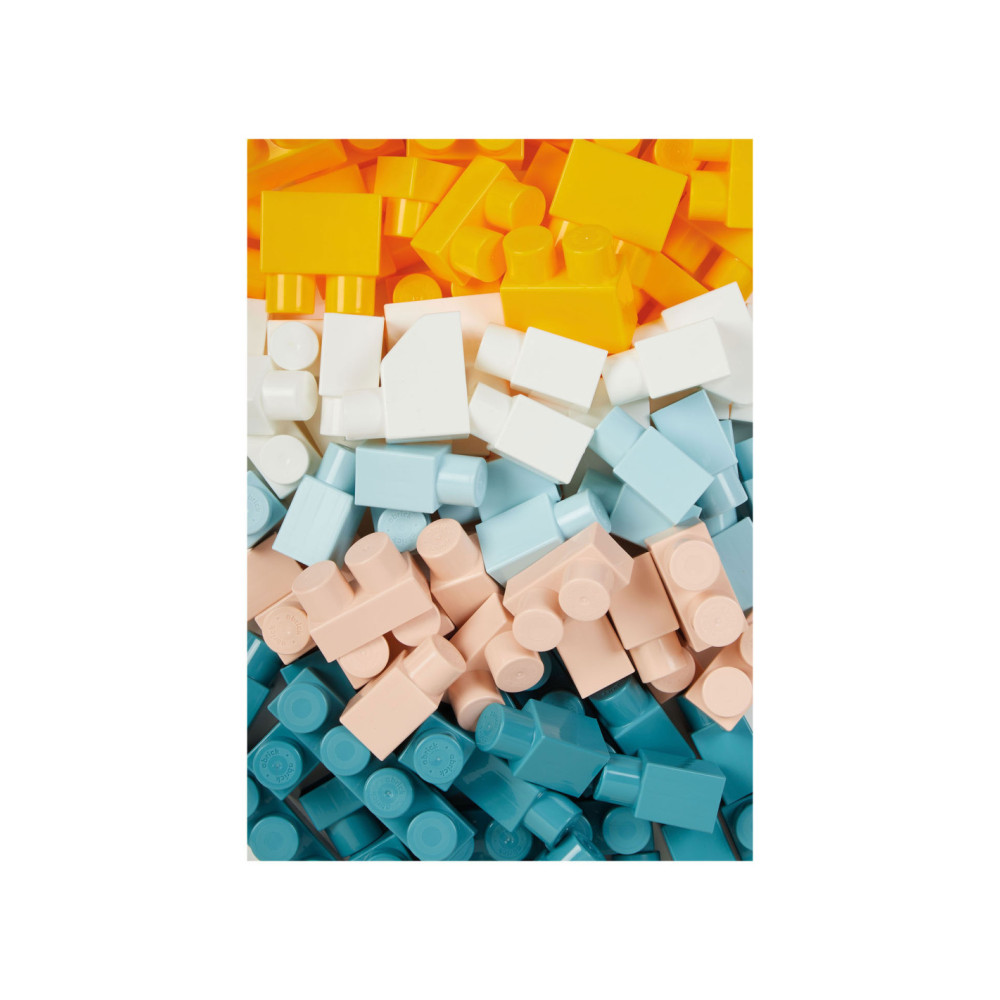 ONEINDIGE CREATIES: deze box en het deksel dat als speelbasis dient, stellen je kind in staat zijn creativiteit de vrije loop te laten door de veelheid aan mogelijke combinaties te ontdekken met deze set van maar liefst 50 bouwbokken.