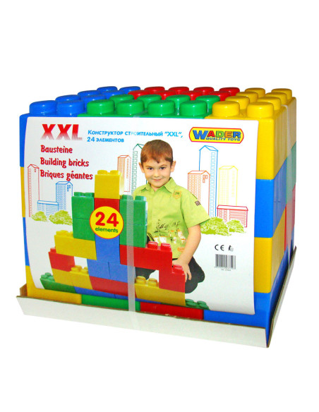 Maak de grootste en mooiste bouwwerken met de Bouwblokken XXL. Een blok kan veel verdragen door de kwalitatieve kunststof van Cavallino. De set bestaat uit 24 grote en kleine blokken in blauw, groen, rood en geel. De afmeting van de grote bouwblokken is 21,5 x 10,5 x 12 cm. De afmetingen van de kleine bouwblokken is 12 x 11 x 11 cm.