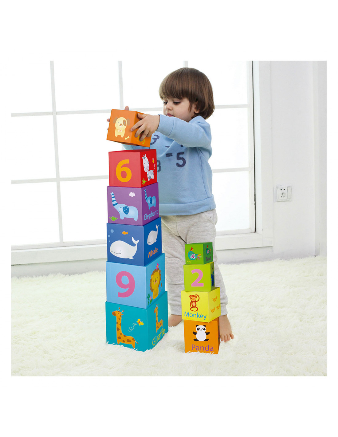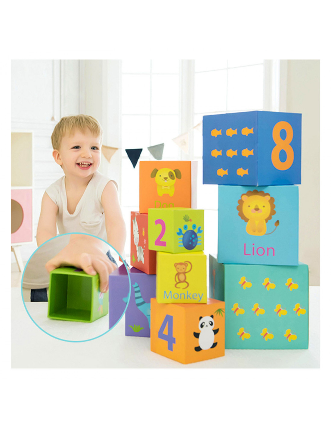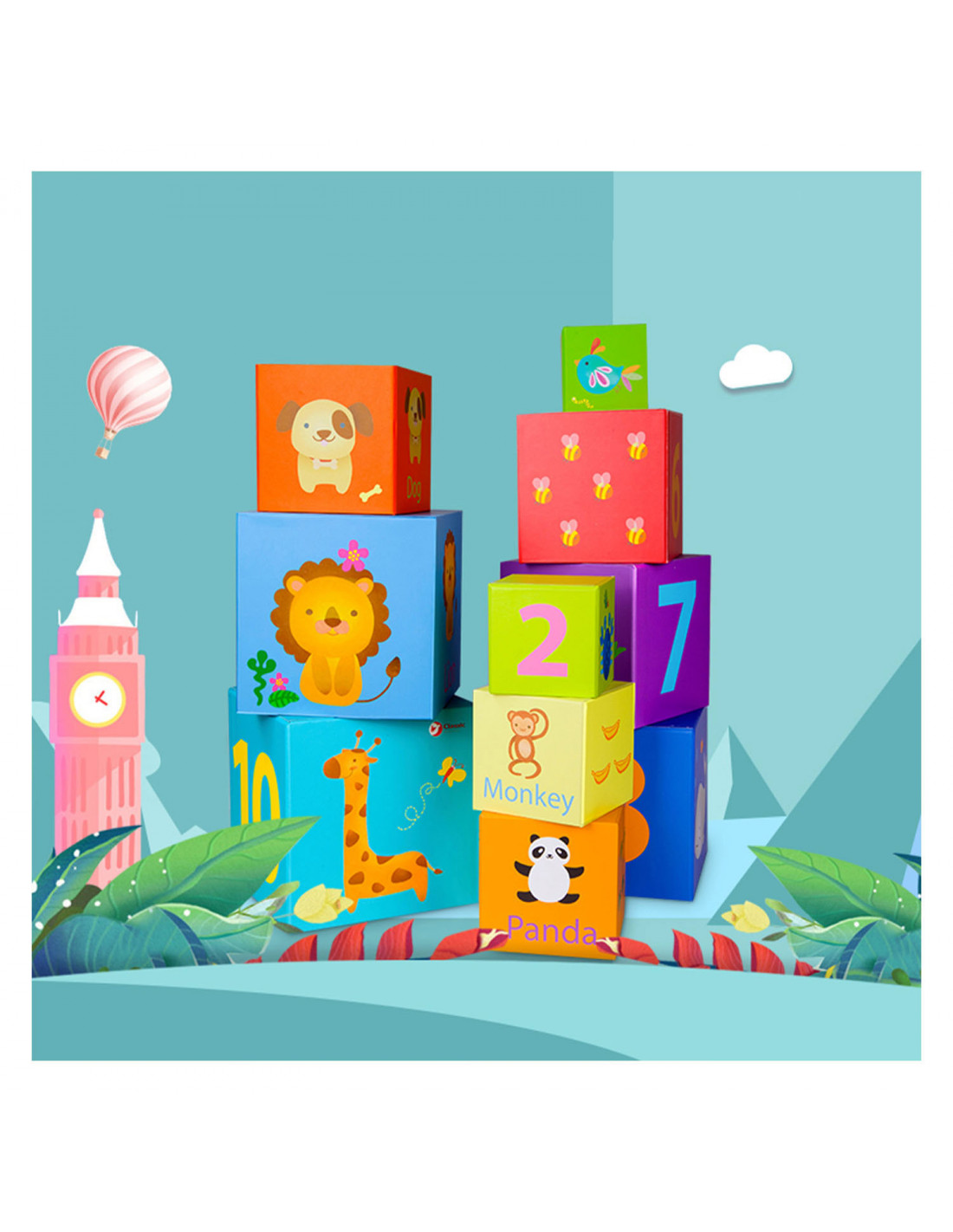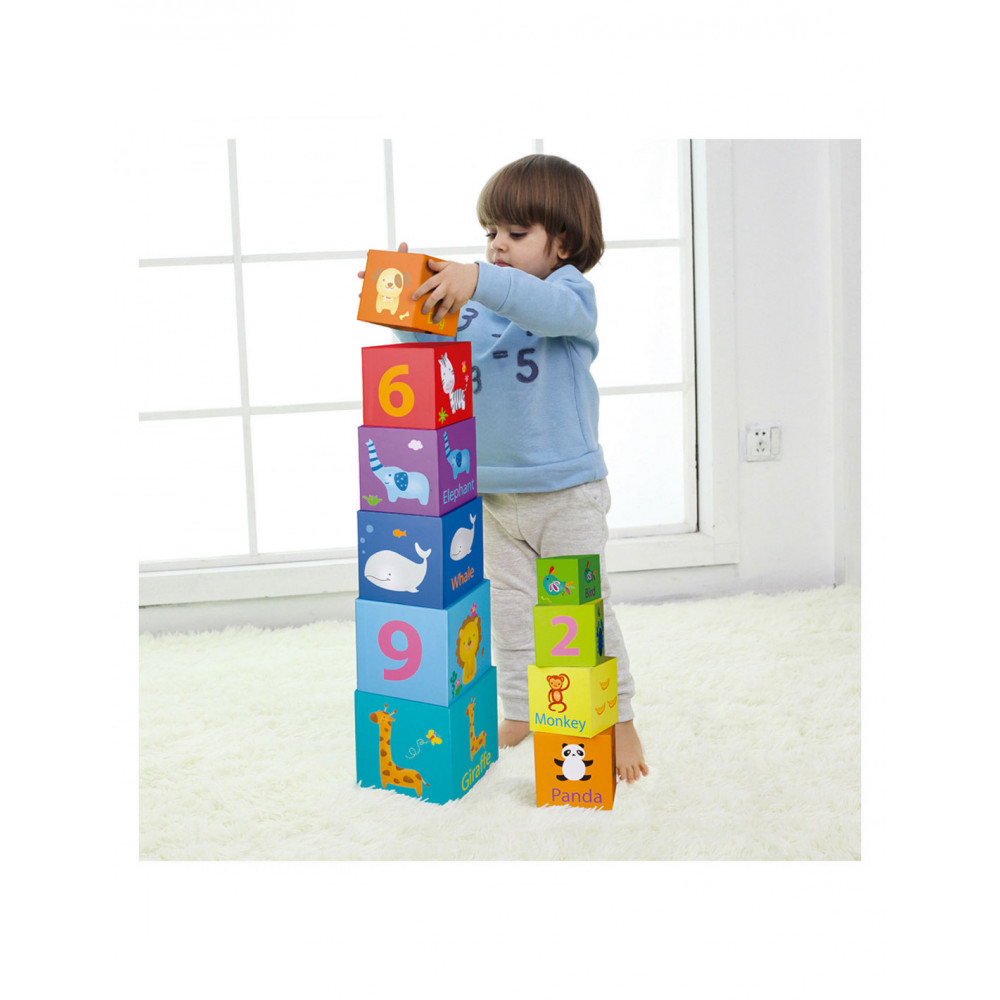 10 lichtgewicht stapelblokken met dieren- en cijferthema van Classic World. De blokken hebben verschillende formaten en kleuren en stimuleren ruimtelijk inzicht en de fijne motoriek. Gemaakt van ecologisch verantwoorde en kindvriendelijke materialen. Geschikt voor kinderen vanaf 18 maanden.