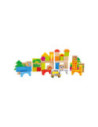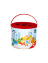 Afmetingen: grootste bouwblok ca. 6 x 3 x 3 cm, kleinste blokje ca. 3 x 3 x 1,5 cm. Geschikt voor kinderen vanaf 12 maanden oud.