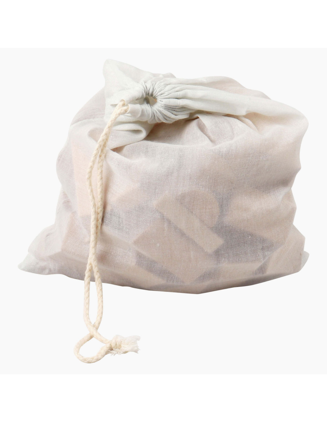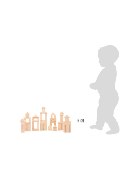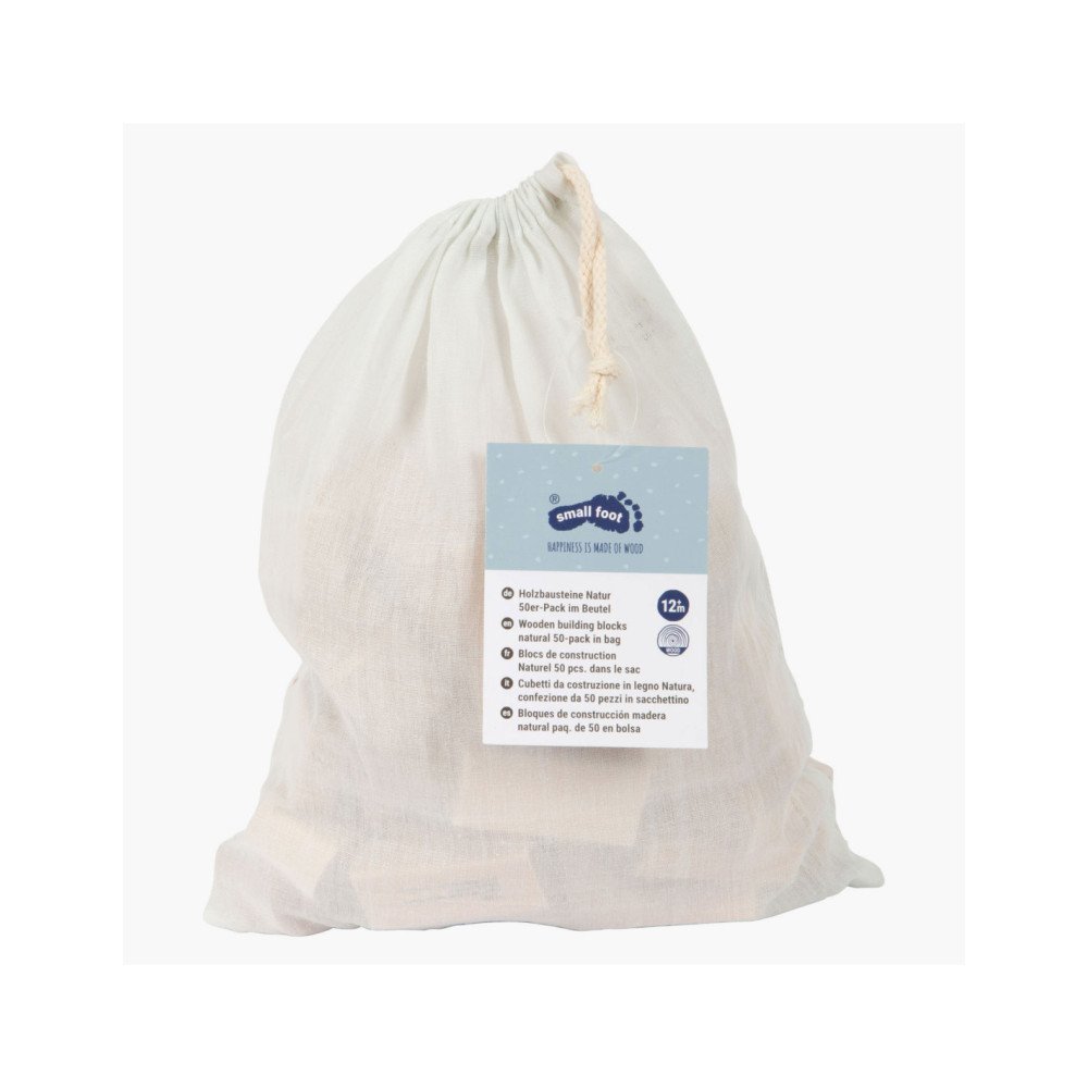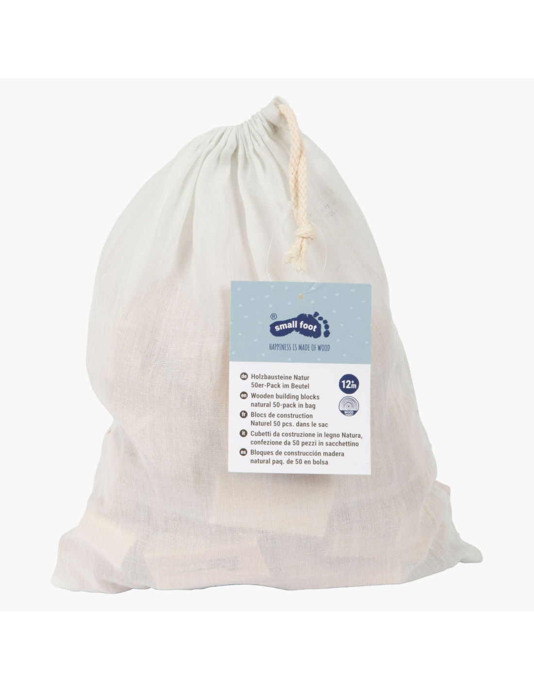 Alle jonge bouwmeesters opgelet! Deze set wordt geleverd met 50 houten bouwstenen van hout en biedt kinderen een grote keuze aan bouwstenen met verschillende vormen om architectonische meesterwerken te bouwen. De natuurlijke houten blokken zijn robuust en hebben een klassiek design. En om te voorkomen dat blokken verloren gaan, kunnen ze veilig worden opgeborgen in de meegeleverde stoffen zak. Zachte, afgeronde randen voorkomen ongelukjes tijdens het spelen. Met deze bouwstenen kunnen jonge kinderen zowel hun grip als hun oog-handcoördinatie trainen. Een beheerste hand is ook vereist om de blokken hoog te stapelen. Wie kan de hoogste toren bouwen? De vierkante blokjes zijn 3 x 3 cm groot.