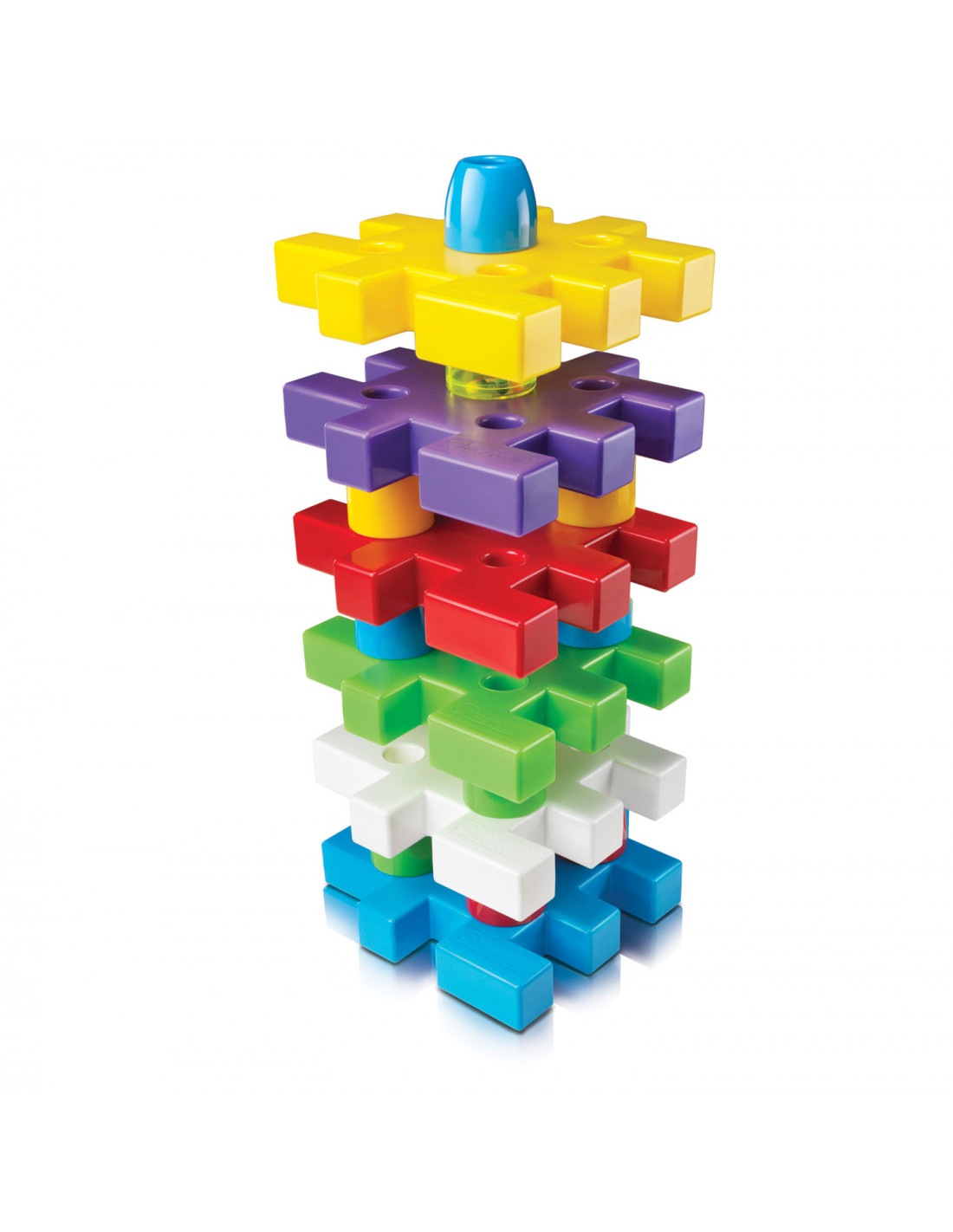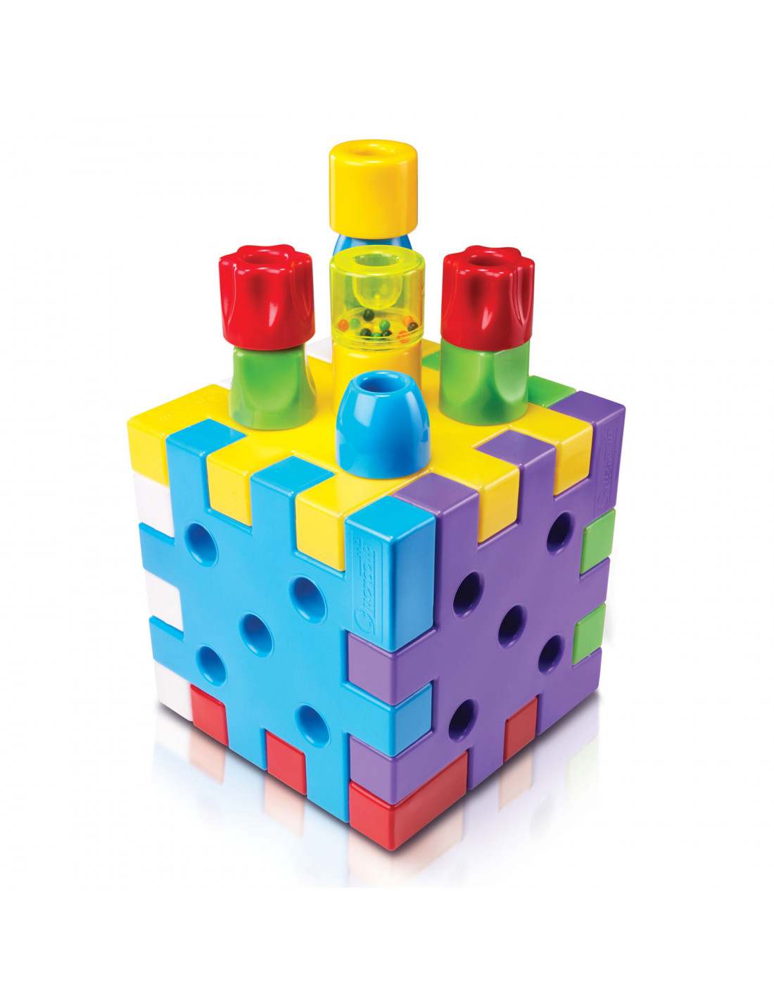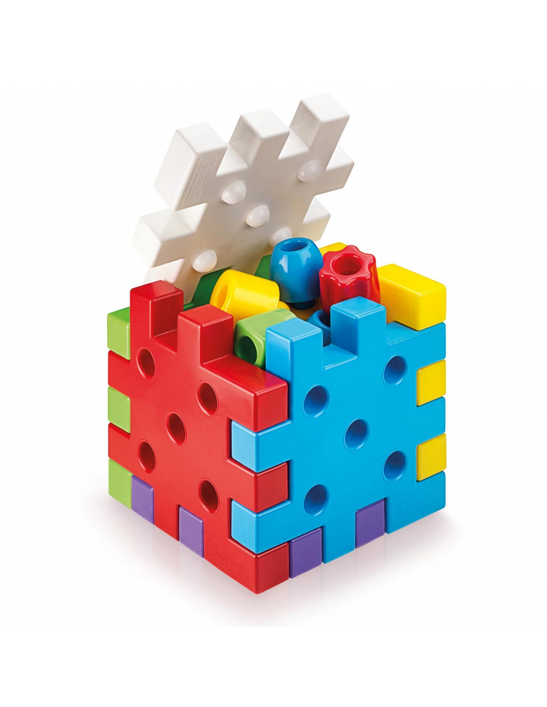 De Quercetti Qubo is bij uitstek geschikt voor de jongere kinderen. Het bestaat uit grote platen en grote insteekpinnen. De aantrekkelijke vormgeving met afgeronde vormen en zijn kleuren maken het extra leuk voor peuters om mee te spelen. Kinderen kunnen er mee stapelen of allerlei spannende torens mee bouwen. De set bevat tevens 1 rammelaar in de vorm van 1 insteekpin/cilinder. Ze zijn gemaakt van veilig en afwasbaar materiaal en zijn makkelijk in gebruik.