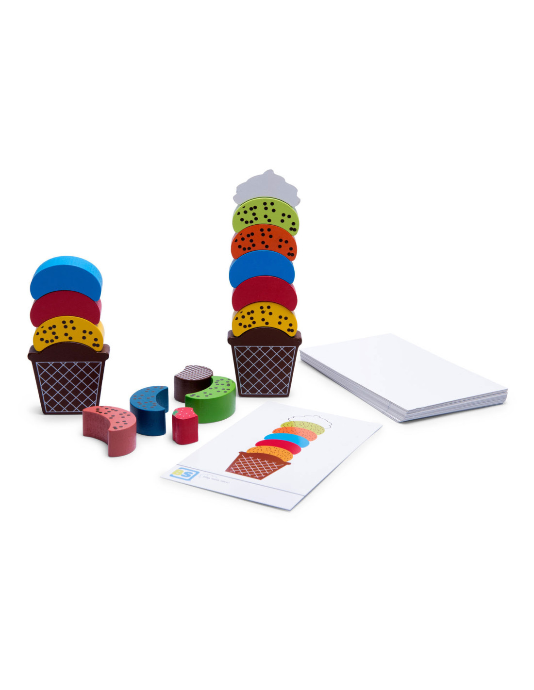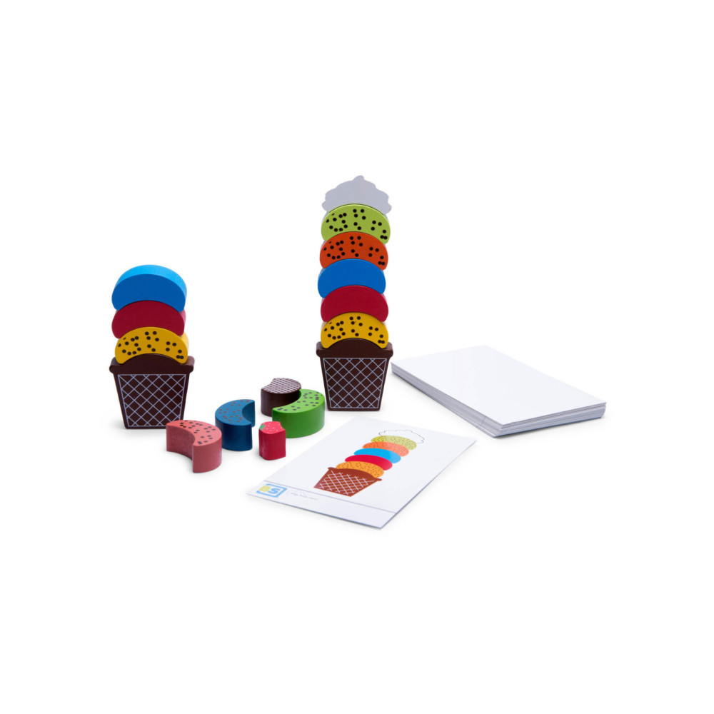 Ijsjes eten is altijd al lekker, maar ze zelf maken is misschien nog wel leuker! Pak snel een kaart en stapel alle verschillende smaken op elkaar. Wie het snelst zijn ijsje kan maken, maar hem niet laat omvallen, wint het spel! Maar je kan natuurlijk ook zelf jouw favoriete smaken bij elkaar zoeken en ijsjes voor elkaar maken.