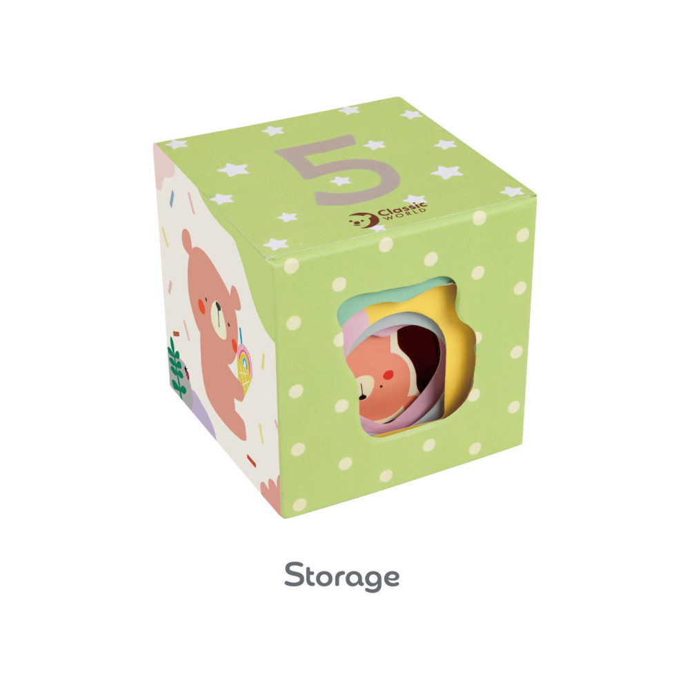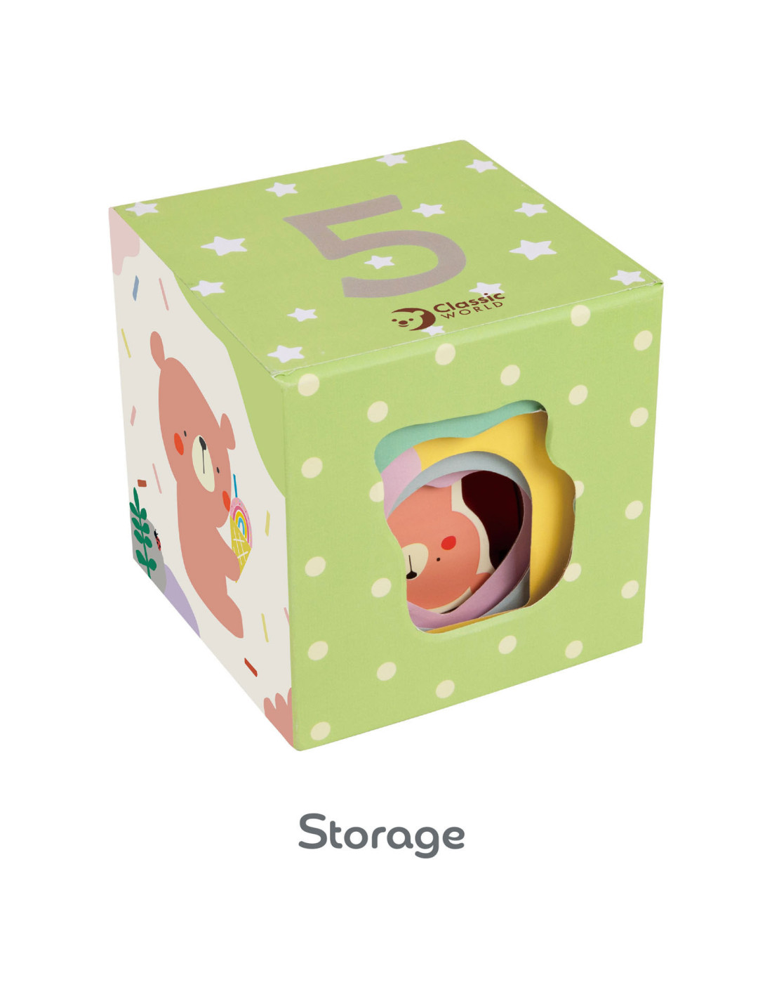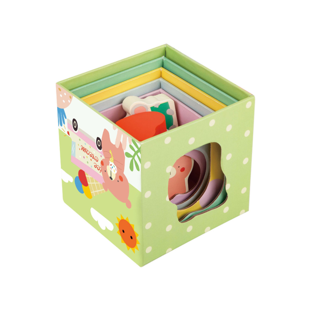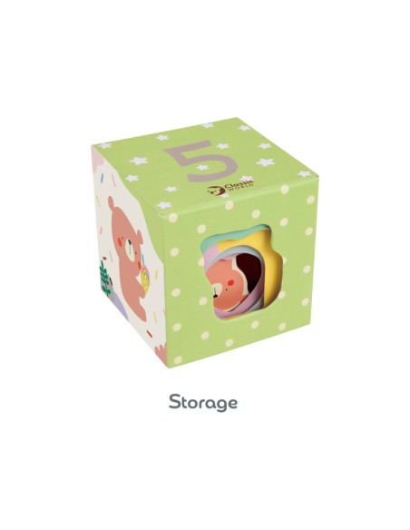 Stapelblokken met een bos-thema. De set bestaat uit 5 blokken van verschillende grote. Hiernaast zitten er ook 5 vormpjes bij die in het goede gat geplaatst moeten worden. De blokken stimuleren de motorische vaardigheden, hand-oogcoördinatie en het probleemoplossend vermogen. De blokken zijn geschikt voor kinderen vanaf 18 maanden.