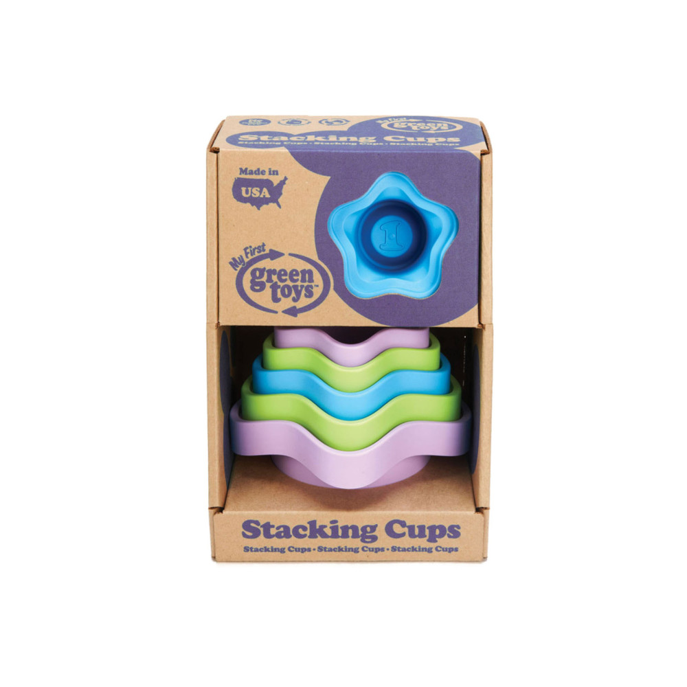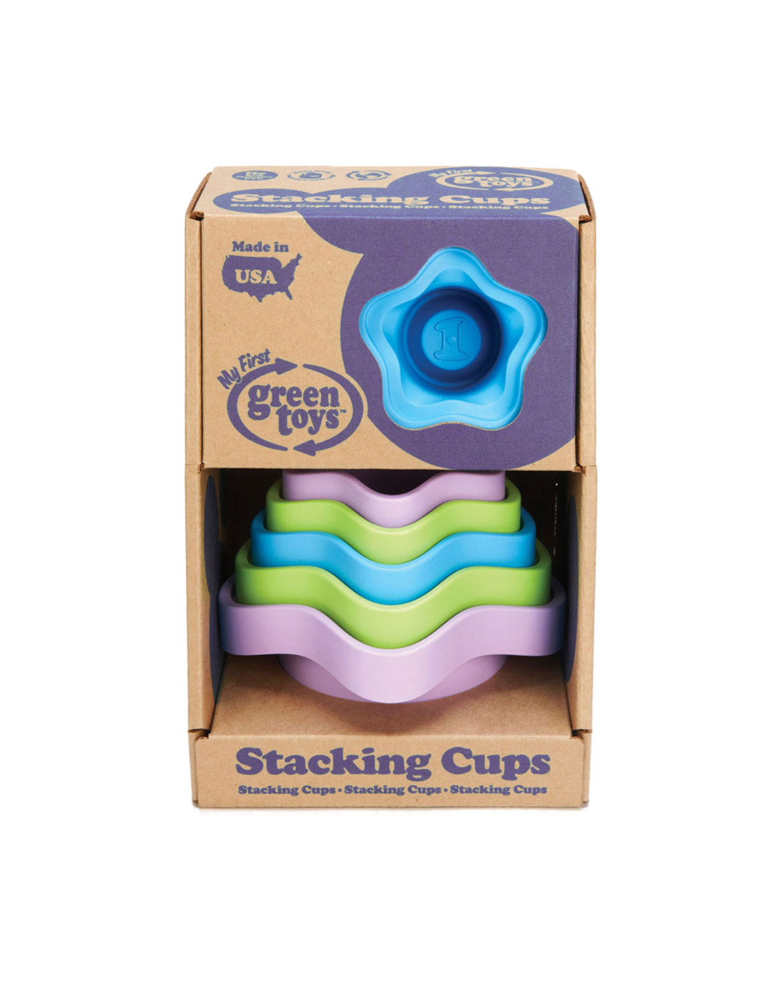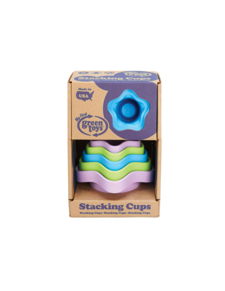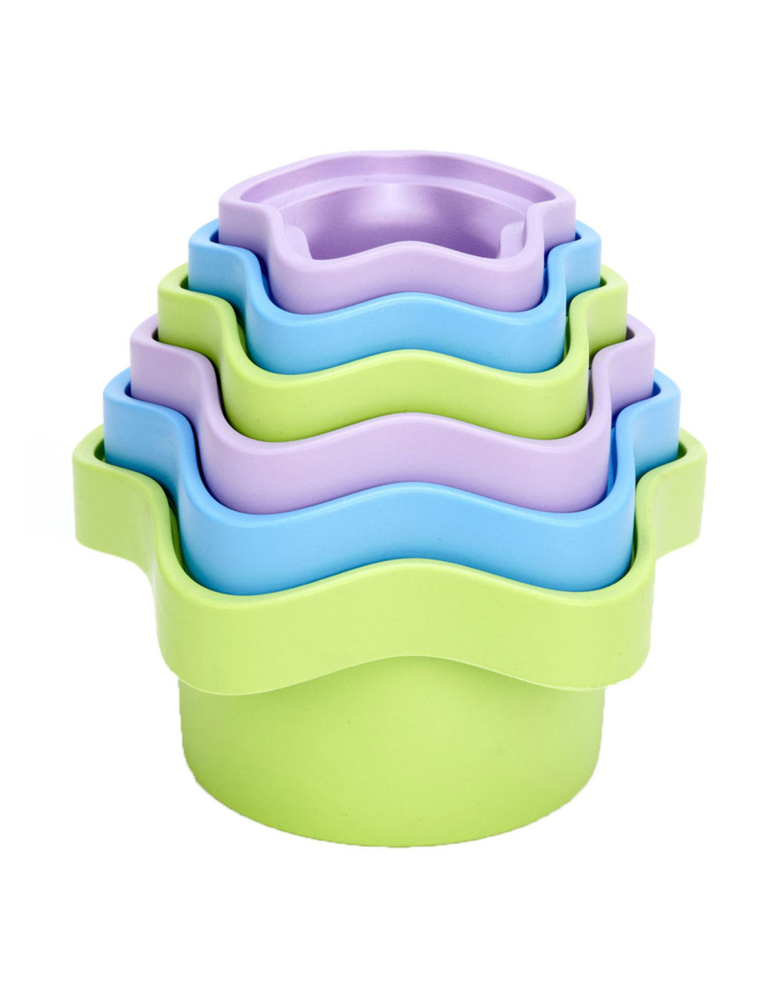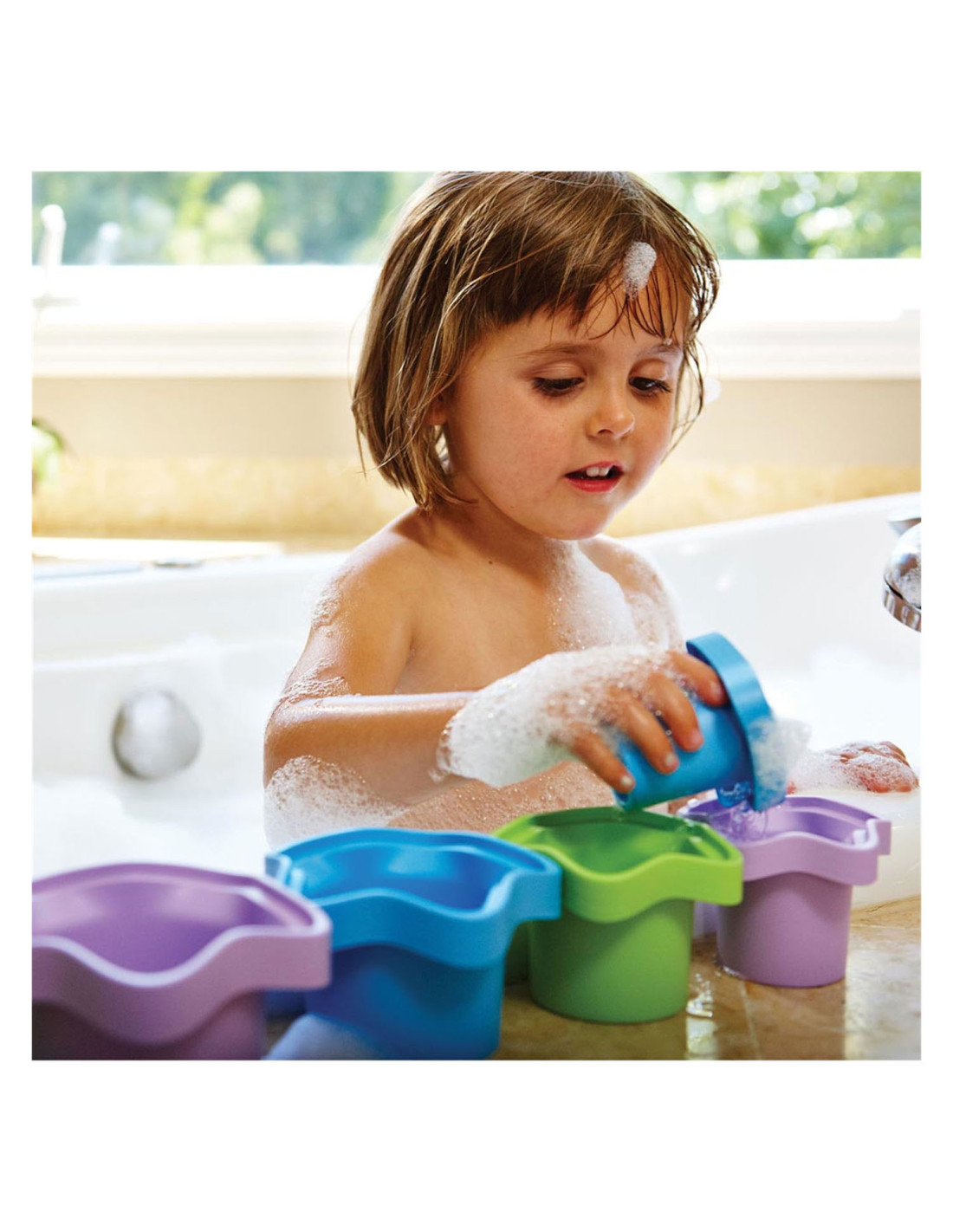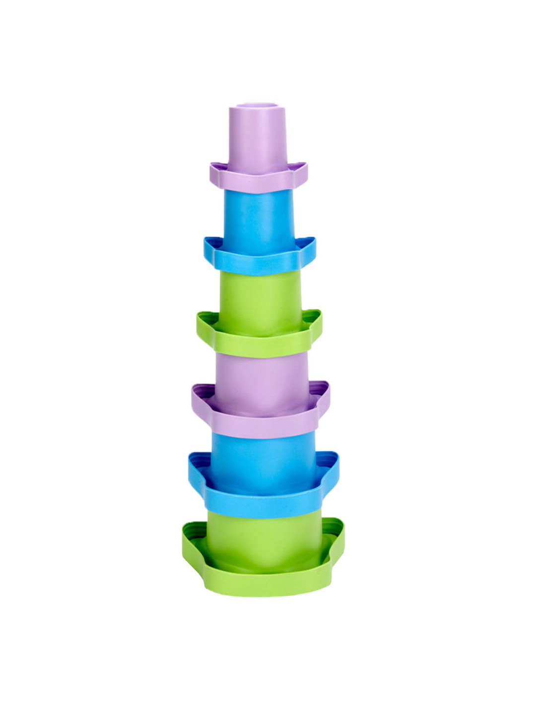 Zes maatbekers om te stapelen, in elkaar te zetten en op allerlei andere manieren mee te spelen. Gemaakt van 100% gerecycled plastic. Geschikt voor kinderen vanaf 6 maanden tot 3 jaar oud.