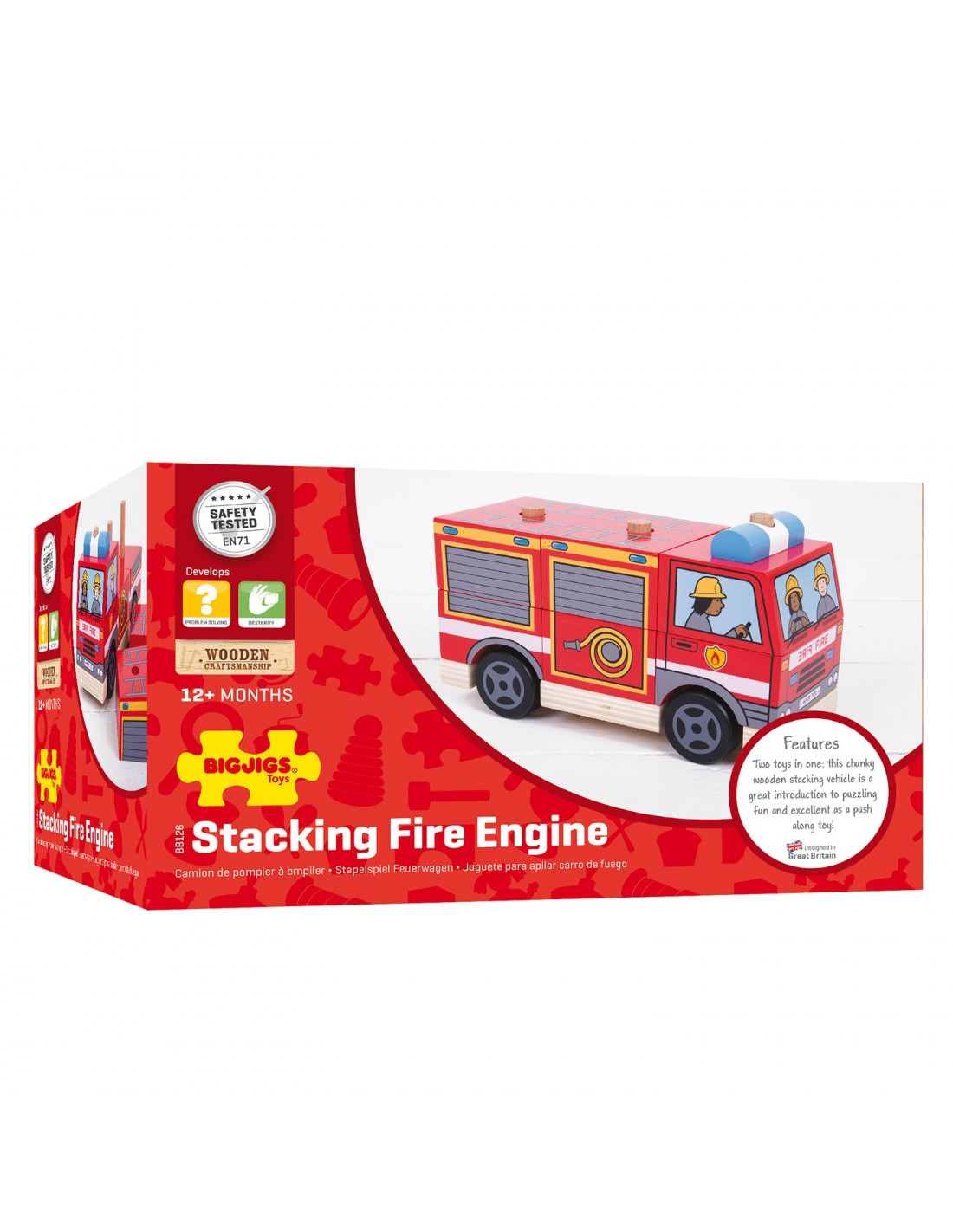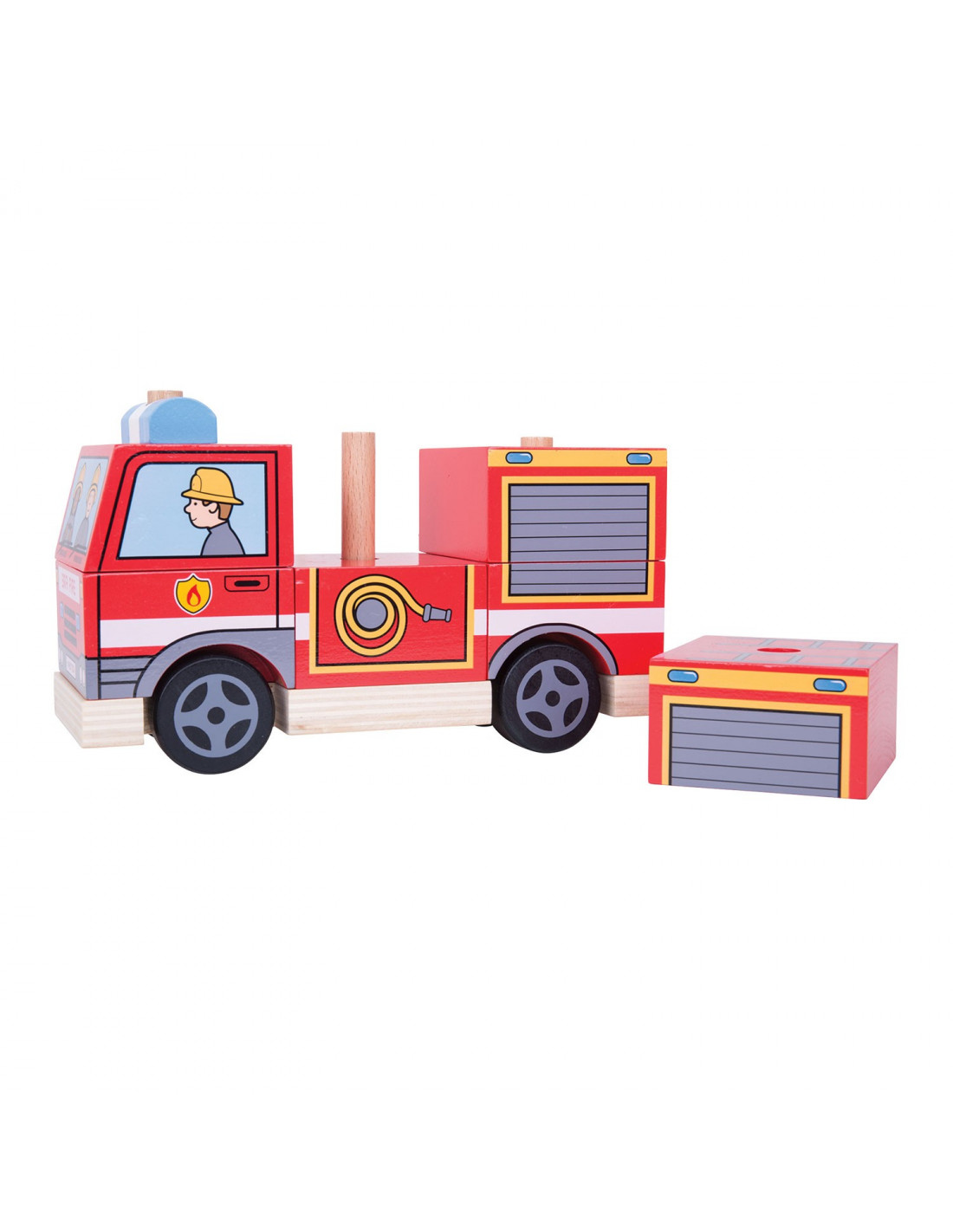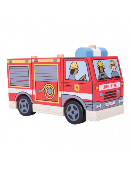 Met deze houten brandweerwagen van Bigjigs heb je dubbel zo veel speelplezier. Eerst heb je het stapelspel: stapel de stukjes zo op elkaar dat je de brandweerwagen goed in elkaar zet. Klaar met stapelen? Dan kun je uren rondrijden met jouw zelf gemaakte stoere brandweerwagen.
