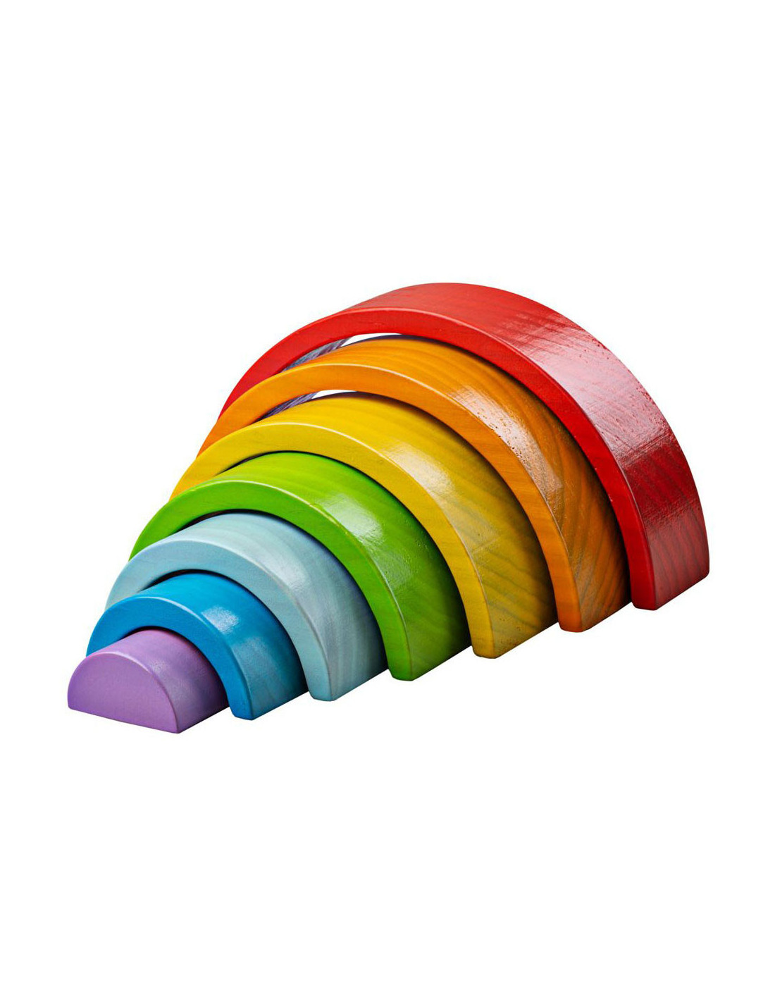 De speelmogelijkheden zijn eindeloos met dit veelzijdige en stevige regenboog stapelspel. Zonder richtlijnen of regels is het een briljant Montessori-speelgoed. Met deze stapelbare speelgoedbogen kunnen kleine handjes allerlei vormen en voorwerpen in elkaar zetten terwijl ze alles leren over verschillende maten en kleuren. Gemaakt van massief hout en gekleurd met niet-giftige verf. Zodra de speeltijd voorbij is, is deze Rainbow Stacker een leuke decoratie voor de slaapkamer of kinderkamer van je kleintje. Ontwikkelt creativiteit en behendigheid. Geschikt voor kinderen vanaf 3 jaar.