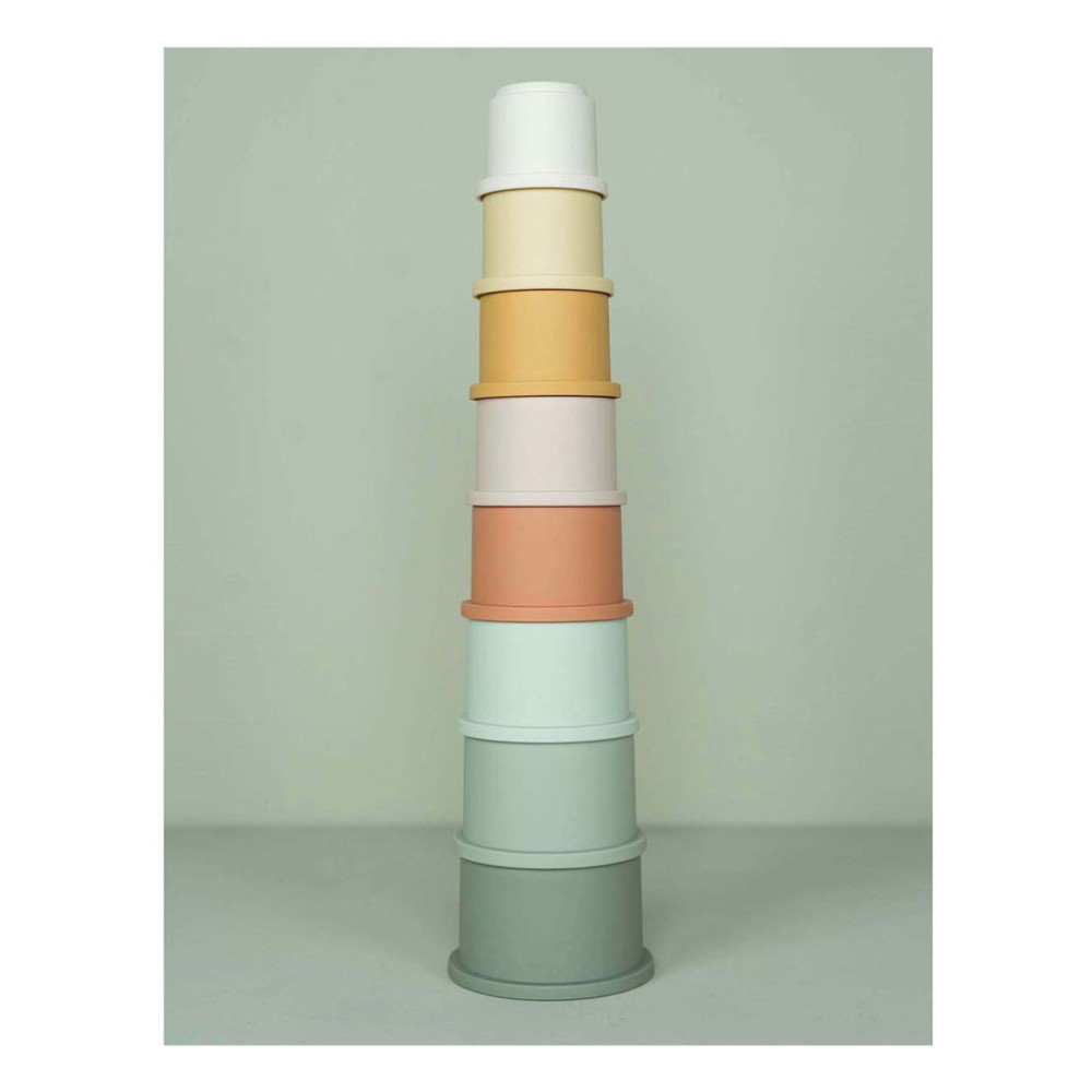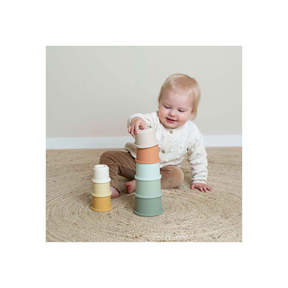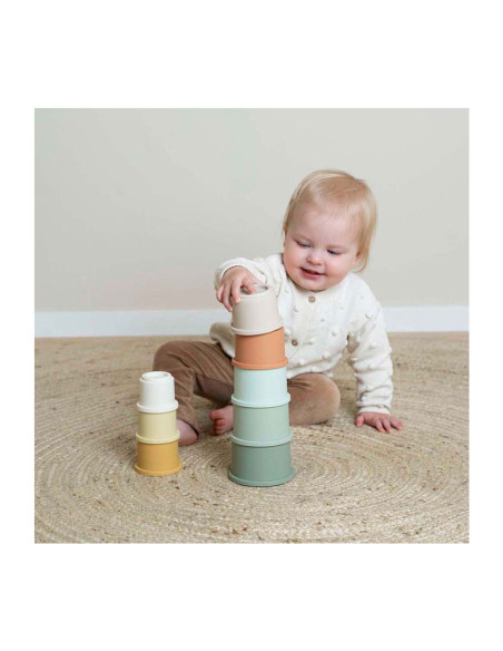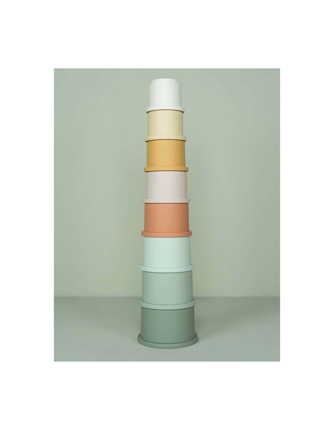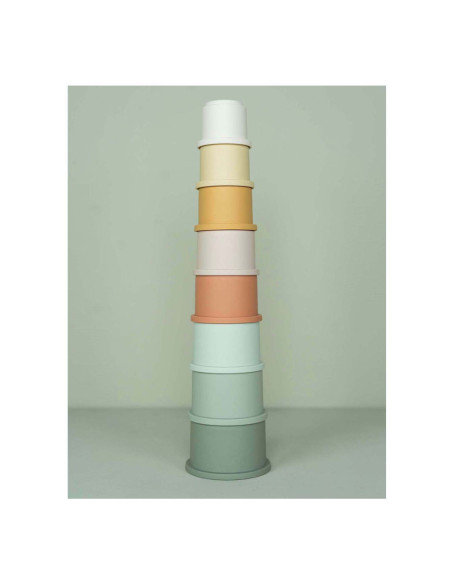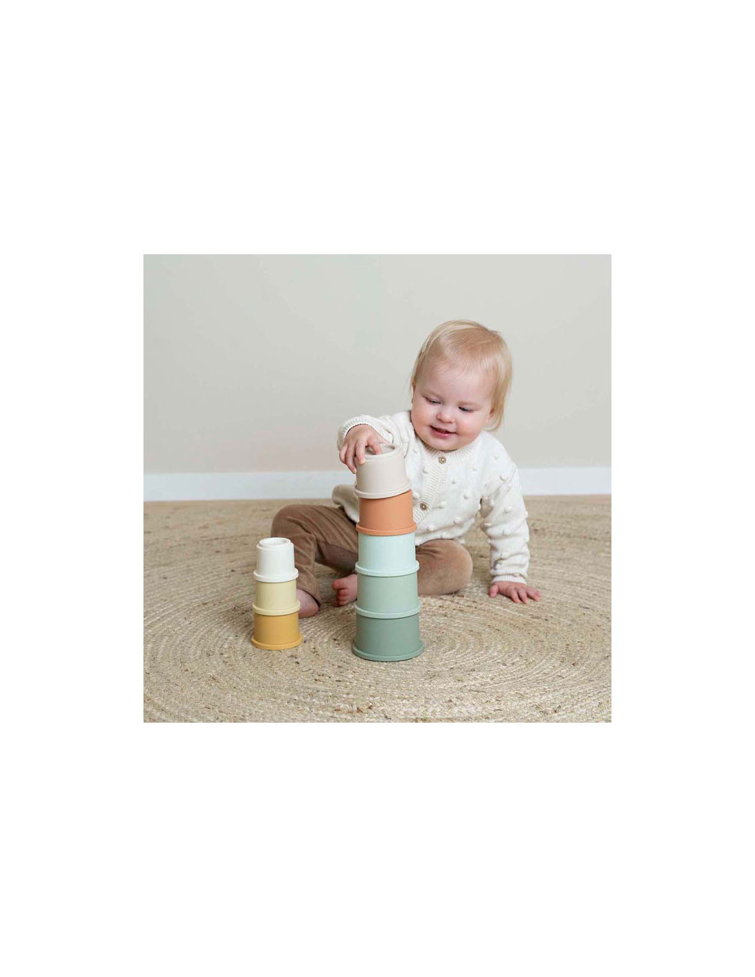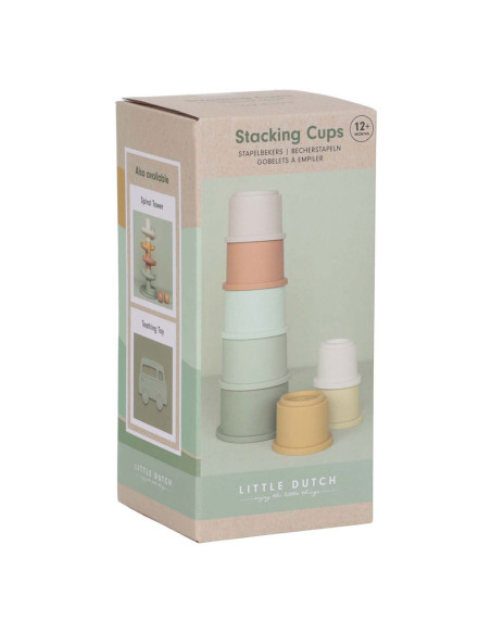 Little Dutch stapelbekers. De set bestaat uit 8 stapelbekers, variërend in diameter tussen 6 en 9,5 cm en de toren is in totaal 43 cm hoog als je alle bekers op elkaar zet. Geschikt voor kinderen vanaf 12 maanden.