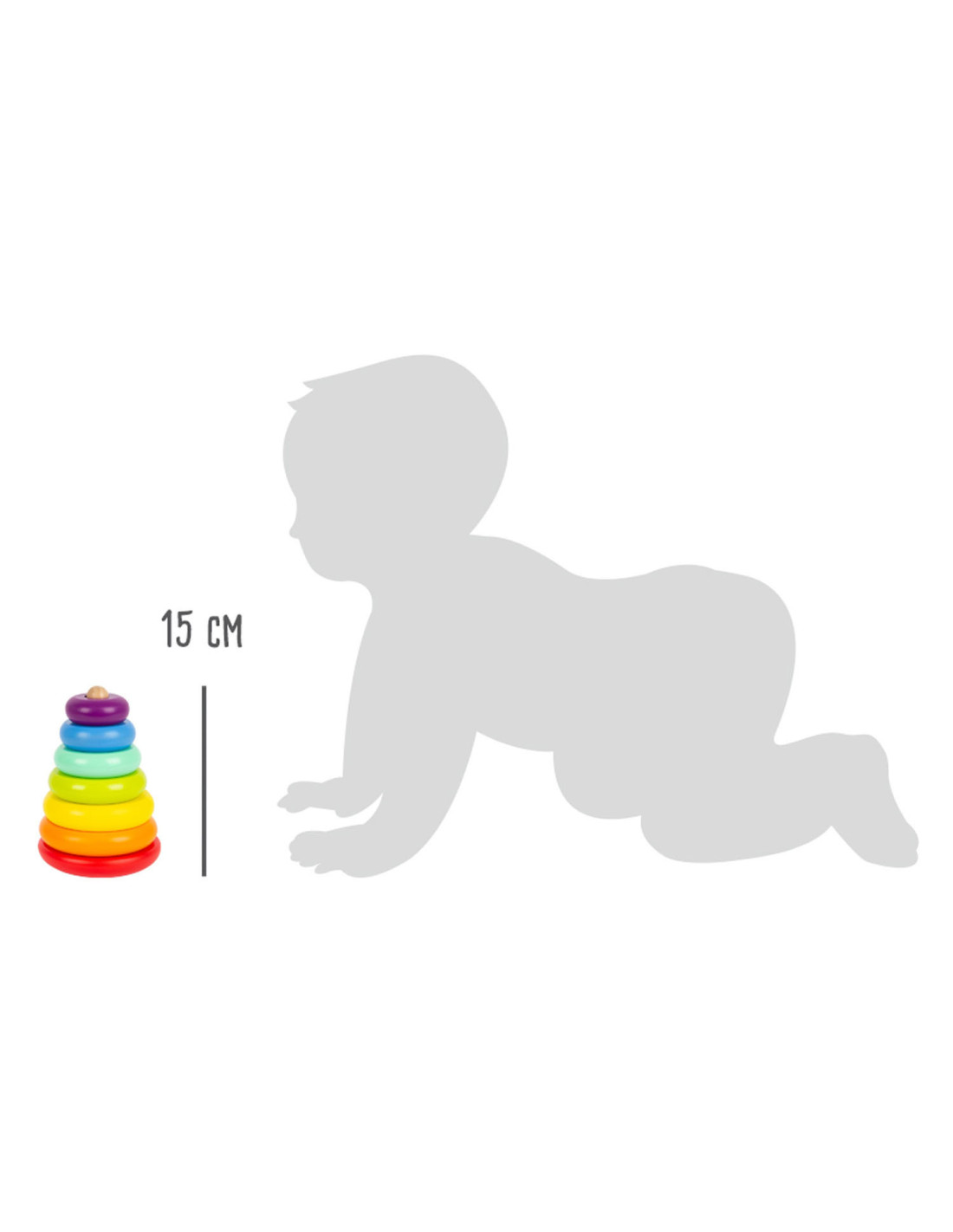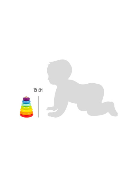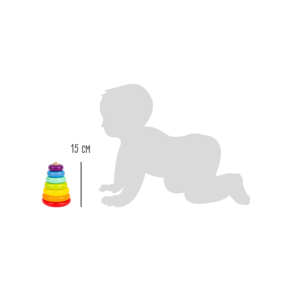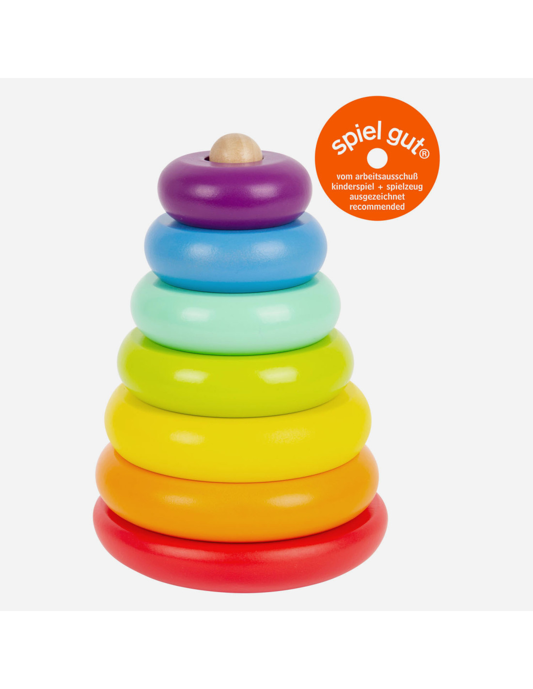 Kindvriendelijke stapelspellen van robuust hout garanderen langdurig speelplezier. De kleintjes zullen zich niet snel vervelen! De regenboogkleuren van deze klassieke motoractiviteit zorgen voor een moderne uitstraling. De stapeltoren is 15 x 10 cm groot en geschikt voor kinderen vanaf 12 maanden oud.