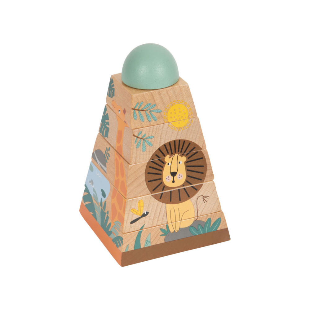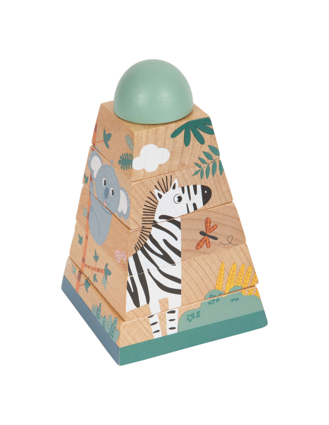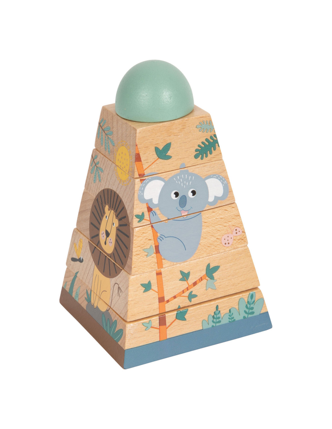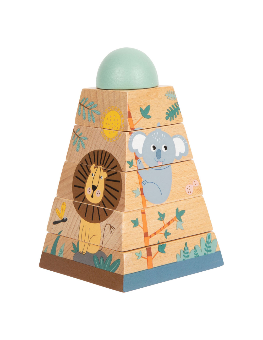 Stapelplezier in een wilde look! Dit stapelspeelgoed van robuust hout traint de fijne motoriek en het ruimtelijk inzicht. Door de massieve houten blokken in de juiste volgorde te stapelen ontstaat een toren die vriendelijke wilde dieren laat zien. De giraf, zebra en leeuw helpen bij het stapelen! Het in elkaar zetten van deze zesdelige stapeltoren traint hand-oogcoördinatie en maatbegrip. Een leerzaam motoriek- en behendigheidsspel voor de allerkleinsten! Geschikt voor kinderen vanaf 12 maanden oud.