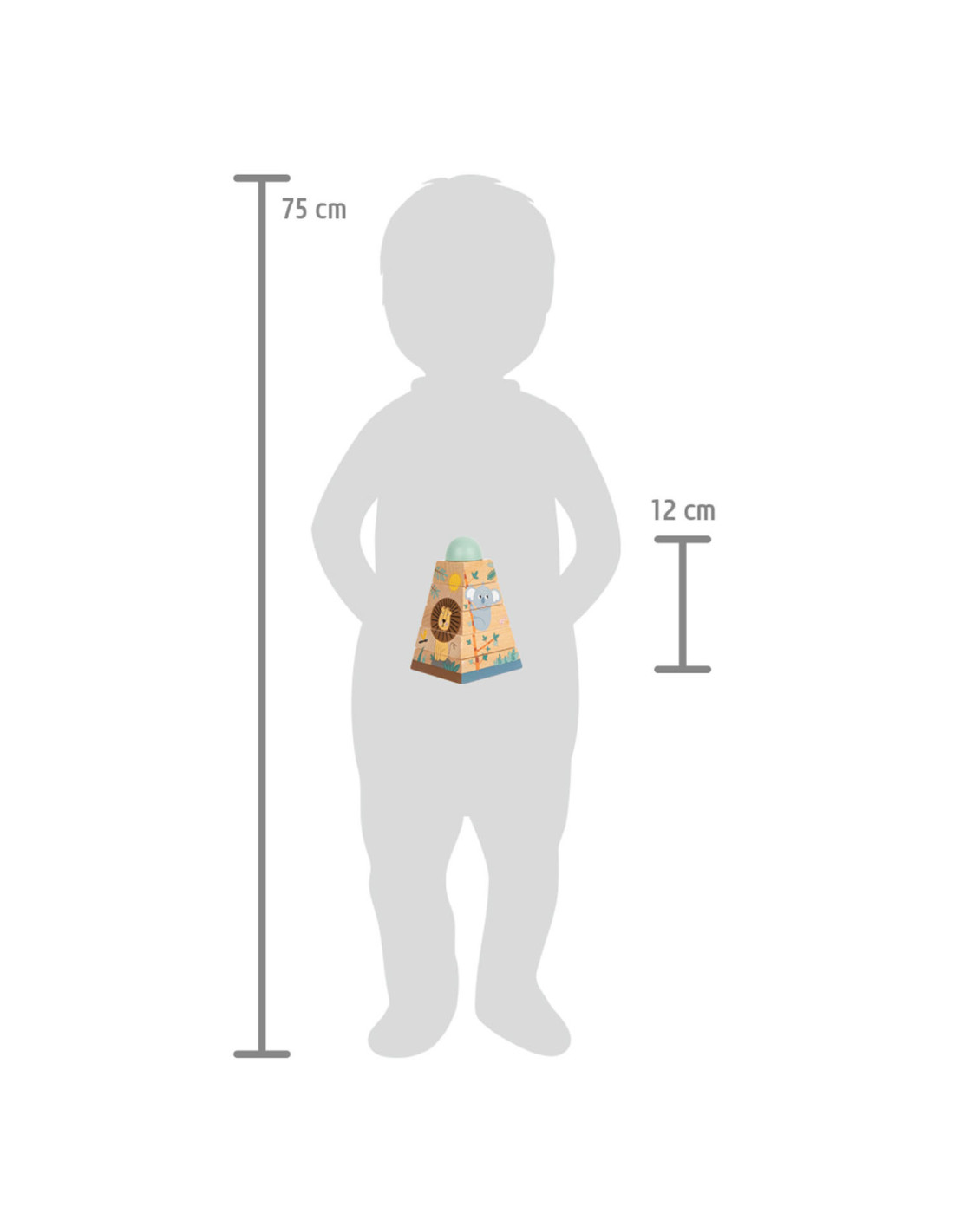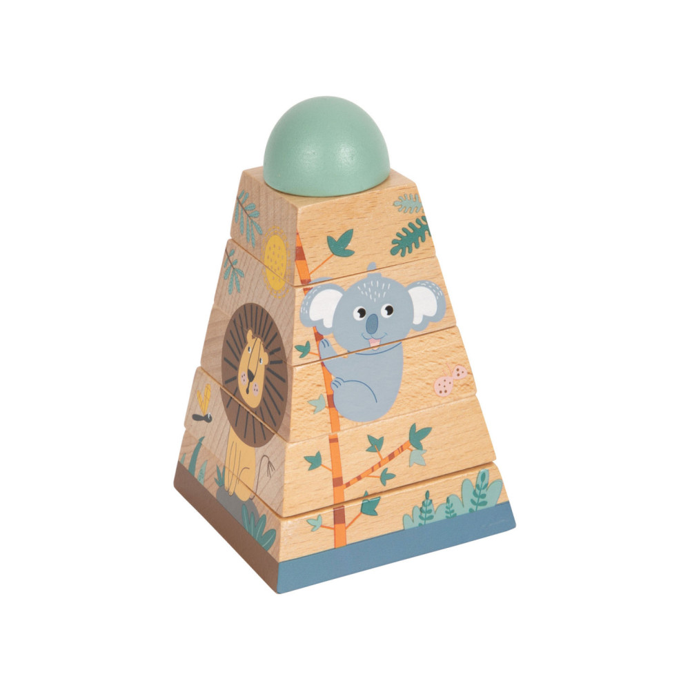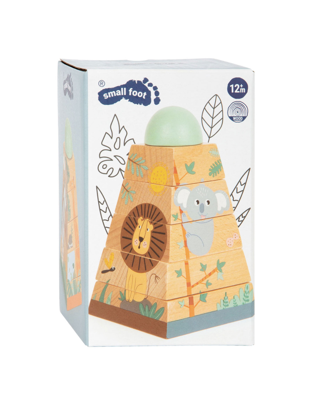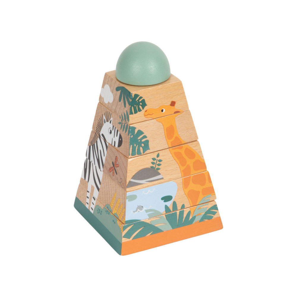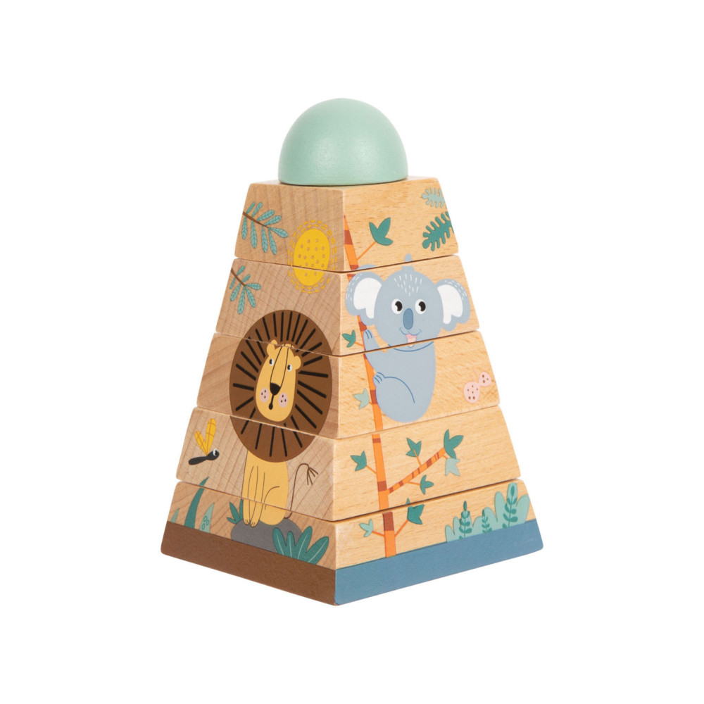 Stapelplezier in een wilde look! Dit stapelspeelgoed van robuust hout traint de fijne motoriek en het ruimtelijk inzicht. Door de massieve houten blokken in de juiste volgorde te stapelen ontstaat een toren die vriendelijke wilde dieren laat zien. De giraf, zebra en leeuw helpen bij het stapelen! Het in elkaar zetten van deze zesdelige stapeltoren traint hand-oogcoördinatie en maatbegrip. Een leerzaam motoriek- en behendigheidsspel voor de allerkleinsten! Geschikt voor kinderen vanaf 12 maanden oud.