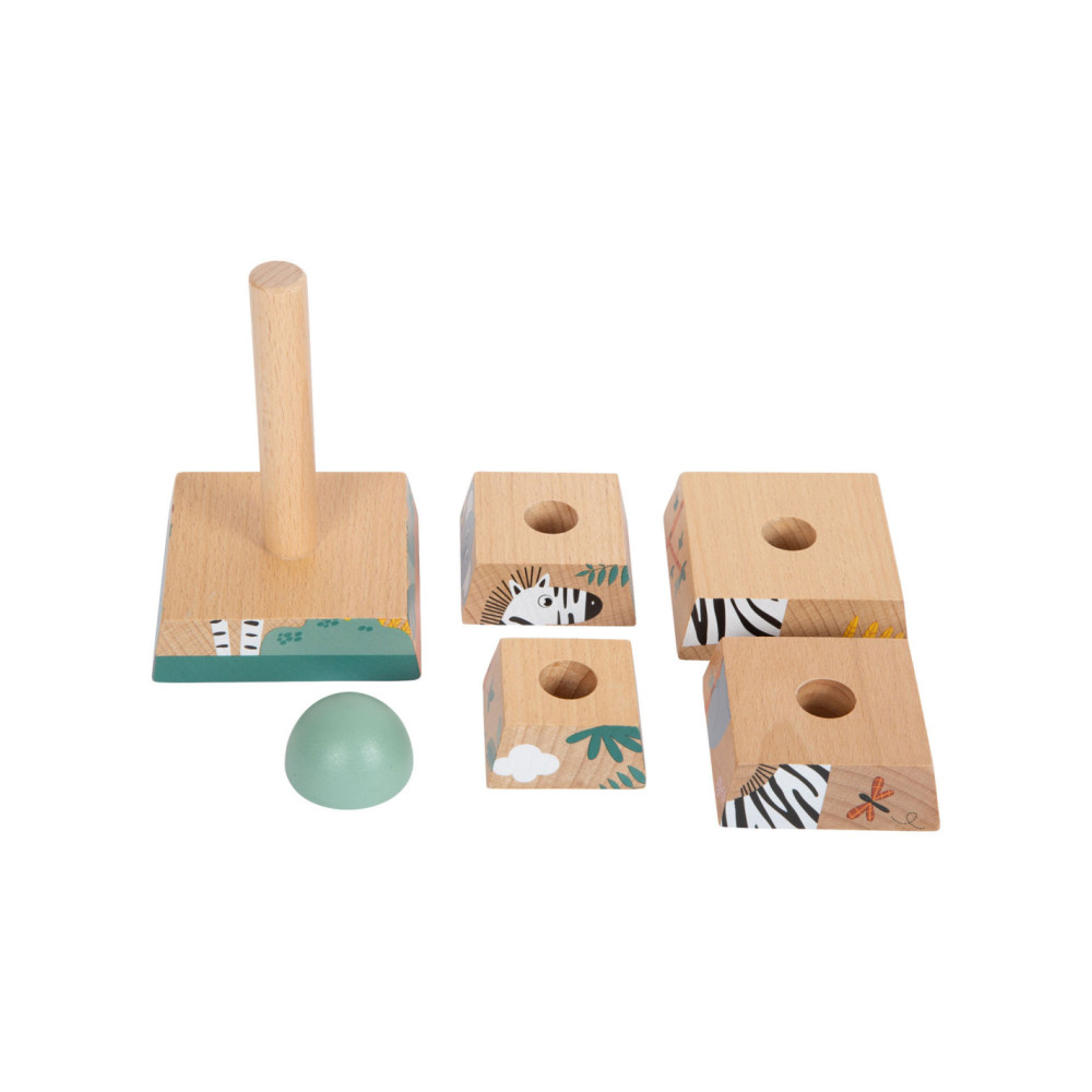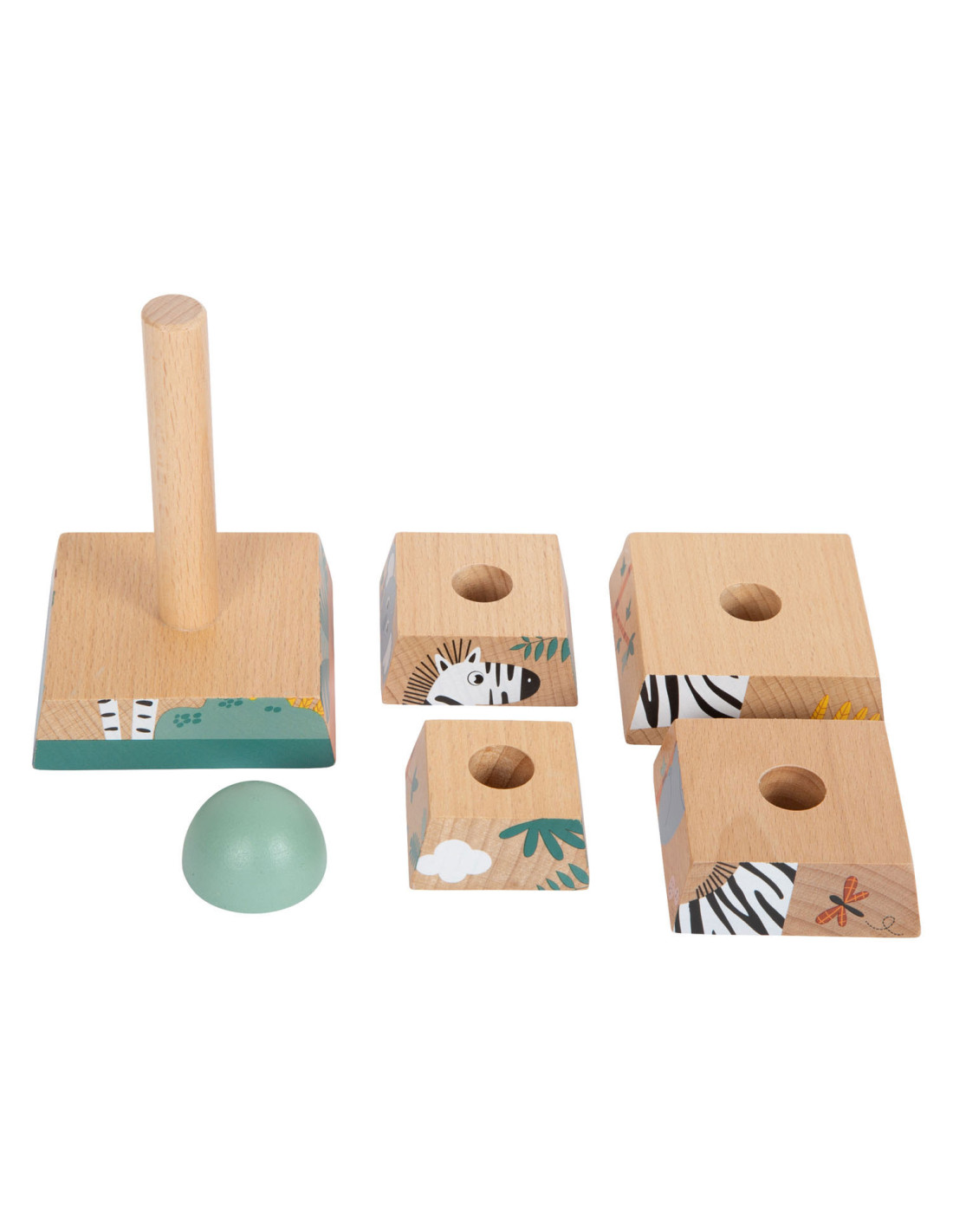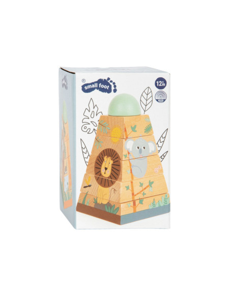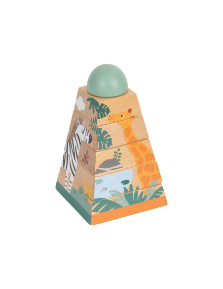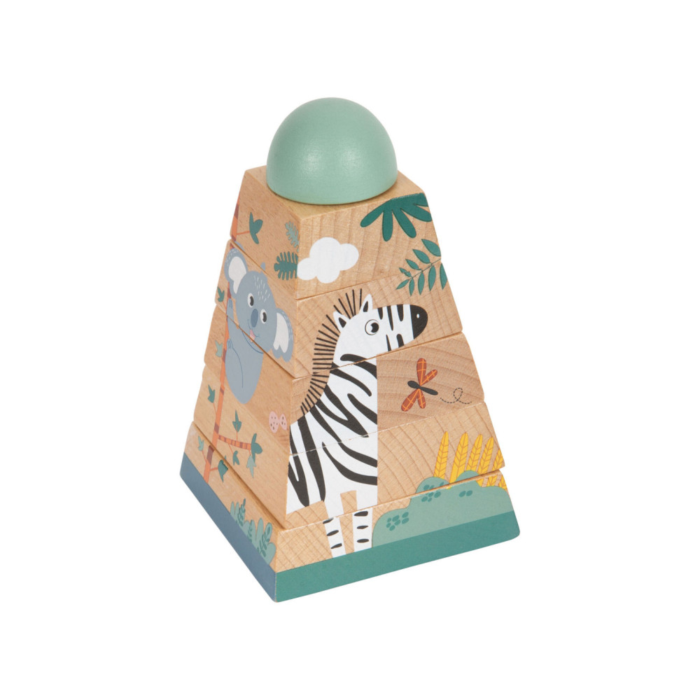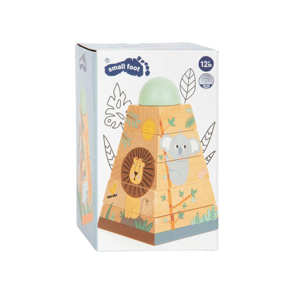 Stapelplezier in een wilde look! Dit stapelspeelgoed van robuust hout traint de fijne motoriek en het ruimtelijk inzicht. Door de massieve houten blokken in de juiste volgorde te stapelen ontstaat een toren die vriendelijke wilde dieren laat zien. De giraf, zebra en leeuw helpen bij het stapelen! Het in elkaar zetten van deze zesdelige stapeltoren traint hand-oogcoördinatie en maatbegrip. Een leerzaam motoriek- en behendigheidsspel voor de allerkleinsten! Geschikt voor kinderen vanaf 12 maanden oud.