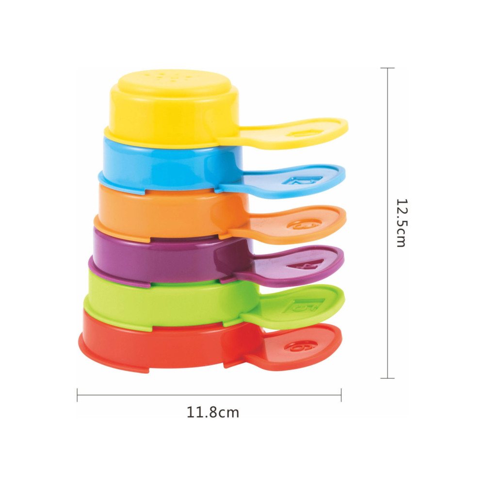 Deze stapelbekers bevorderen allerlei vaardigheden van je baby. Door het handvat zijn ze gemakkelijk te pakken. De gaatjes in elke beker maken ze geschikt om in bad te gebruiken. Geschikt voor kinderen vanaf 6 maanden oud.