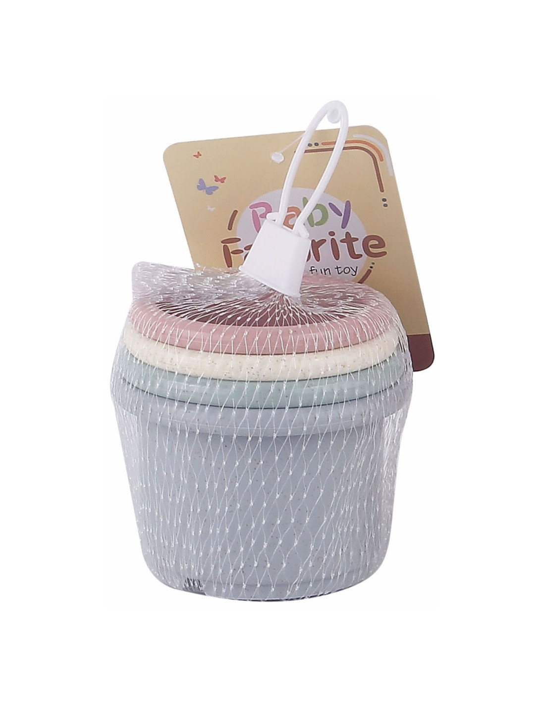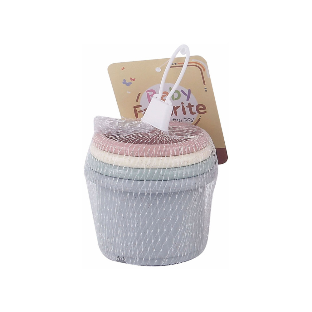 Set van 4 pastelkleurige stapelbekers. Geschikt vanaf 6 maanden.