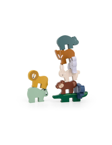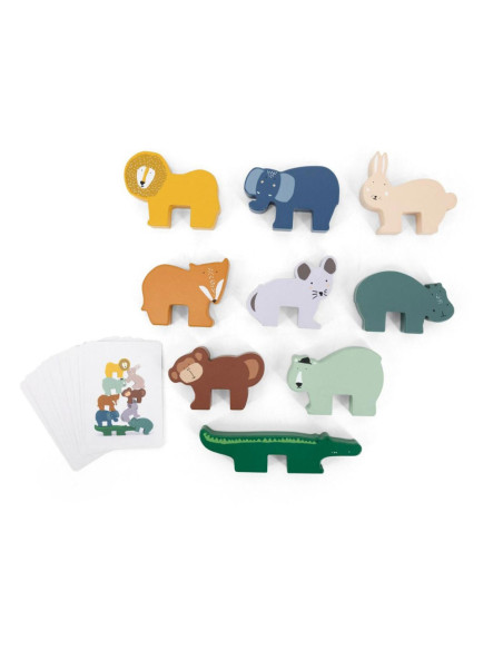 Onze dierenvrienden worden echte acrobaten in dit leuke spel! Daag het ruimtelijk inzicht en de coördinatie vaardigheden van kinderen uit door de dieren te stapelen zoals weergegeven op de kaarten. Het spel bevat kaarten met 3 verschillende moeilijkheidsgraden. De stapeldieren zijn gemaakt van 100% FSC © gecertificeerd hout. Alle verven zijn op waterbasis en veilig voor baby's.