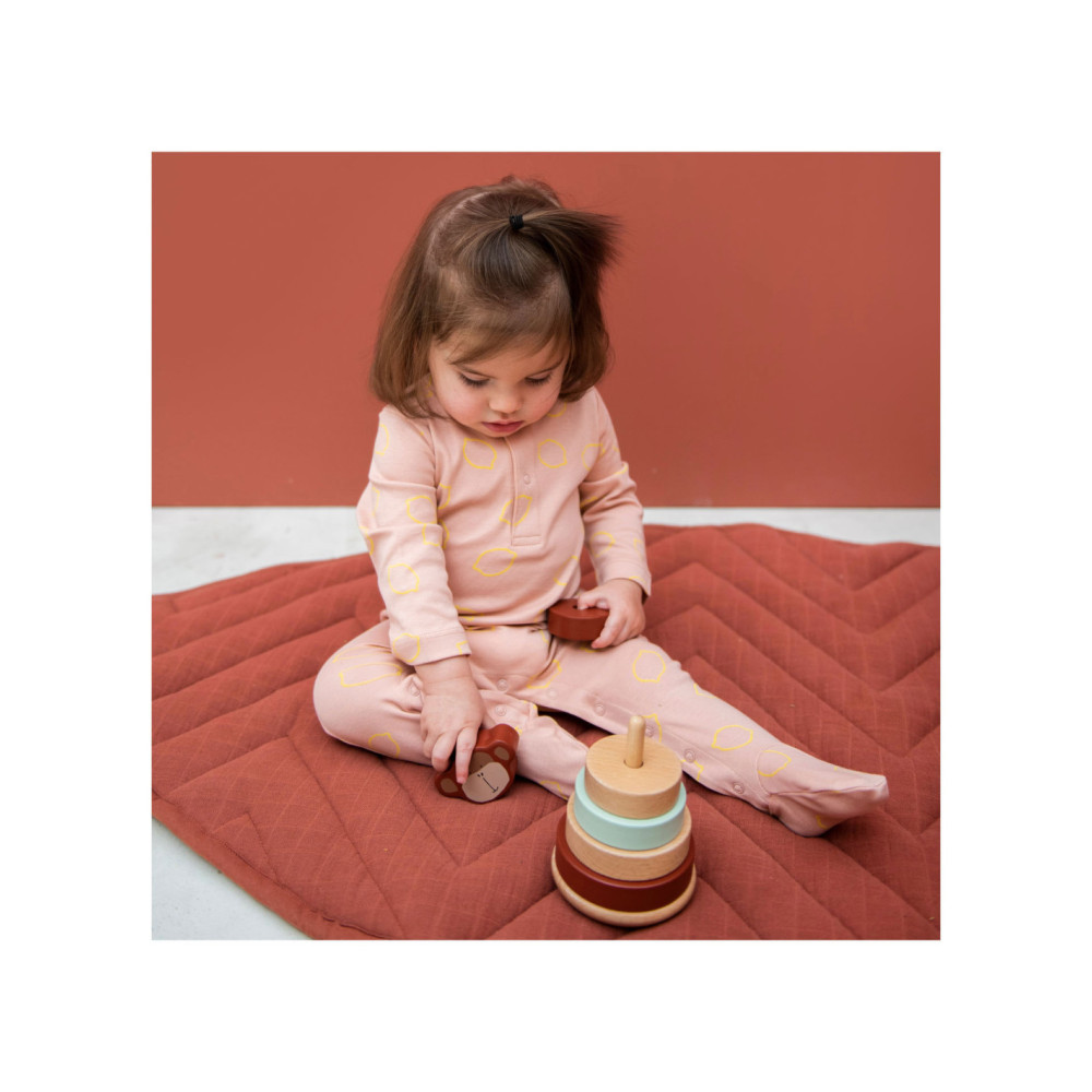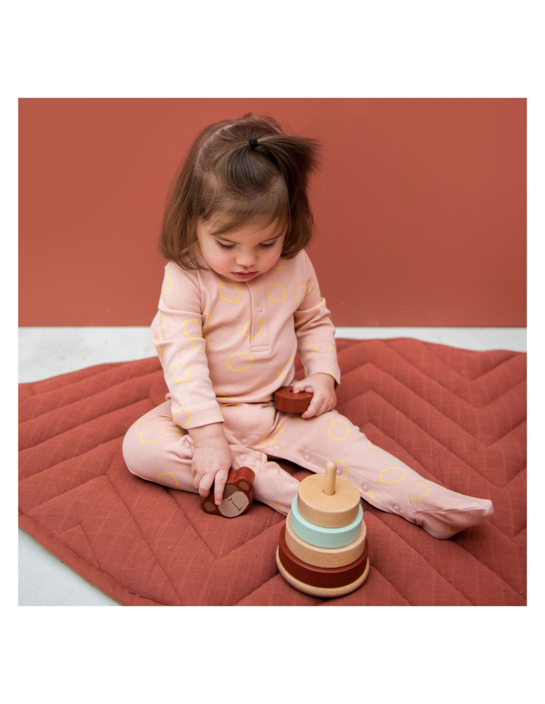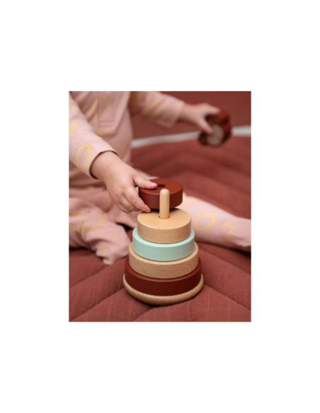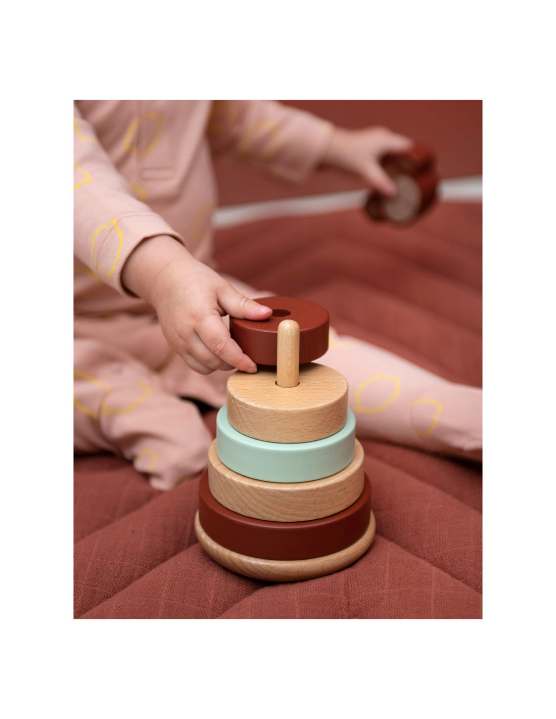 Met zijn mooie balans tussen hout en kleur is deze klassieker in de houten speelgoedlijn een absolute must-have! De houten basis wiebelt, wat een extra uitdaging vormt tijdens het stapelen! Deze stapelaar verbetert de hand-oog coördinatie en stimuleert de fijne motoriek, terwijl kinderen spelenderwijs verschillende vormen en kleuren leren herkennen.Dit product is gemaakt van hoogwaardig 100% FSC © gecertificeerd beukenhout. Alle verven zijn op waterbasis en veilig voor baby's. Verkrijgbaar in verschillende dieren.
