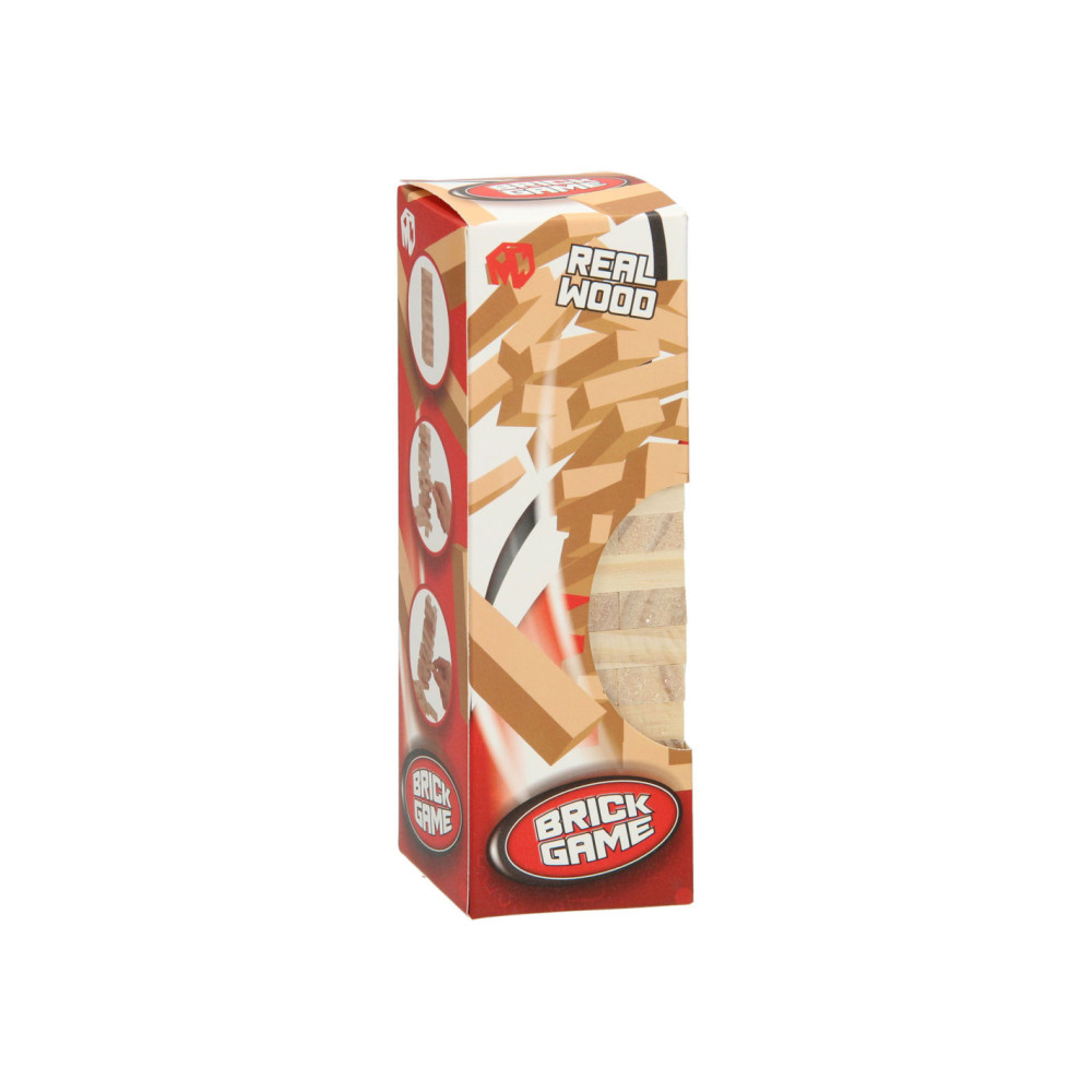 Grappig wiebel stapeltorenspel met 48 blokjes. Stapel de blokjes, met 3 per verdieping, op tot een hoge toren. Haal nu omdebeurt steeds heel voorzichtig 1 blokje uit de toren. Hoe lang blijft de toren overeind?!? Als de toren instort wanneer het jouw beurt is, verlies je het spel. Wees dus voorzichtig en bekijk de toren goed voor je er weer een blokje uit haalt! Het spel is gemaakt van hout, de set bevat 48 blokjes.