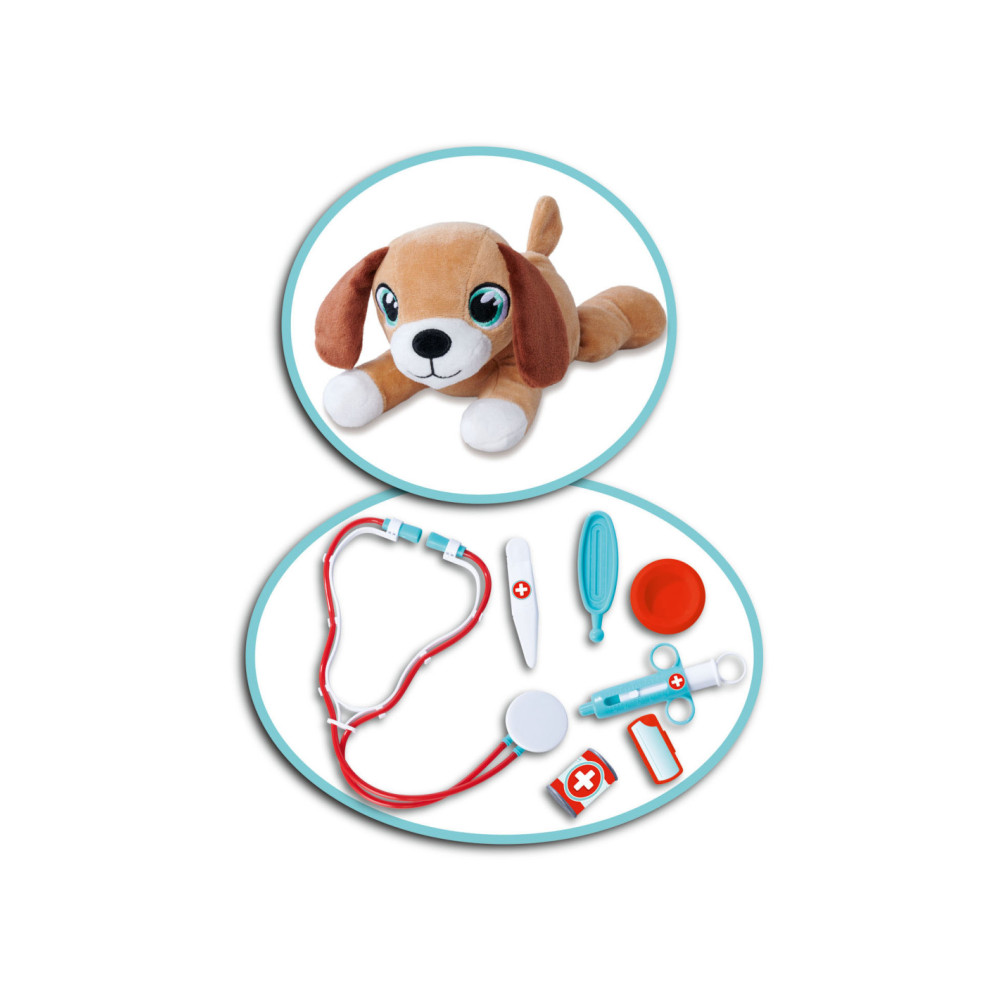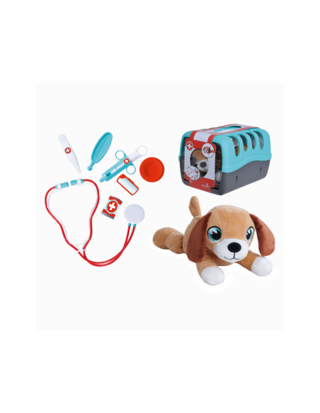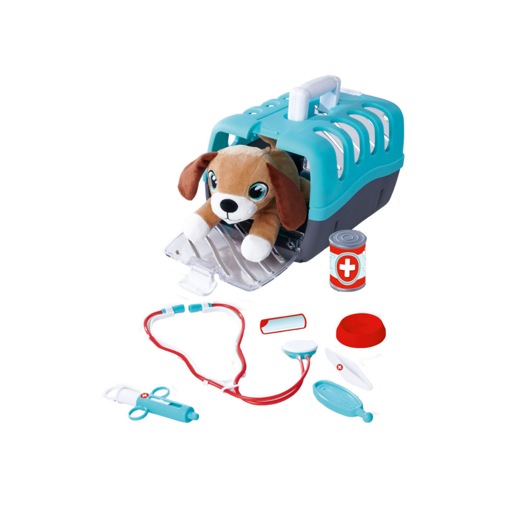 De dierenarts speelgoed speelset met honden knuffel van pluche biedt kinderen een leerzame en leuke ervaring. De set bevat een schattige hondenknuffel van pluche, compleet met een verscheidenheid aan accessoires voor dierenverzorging. Met een dierenkooi kunnen kinderen de knuffel veilig vervoeren en 'behandelen'. Het spelen met de dierenarts speelset helpt ook bij het ontwikkelen van sociale vaardigheden en verantwoordelijkheidsgevoel. Een geweldig cadeau voor elk kind.