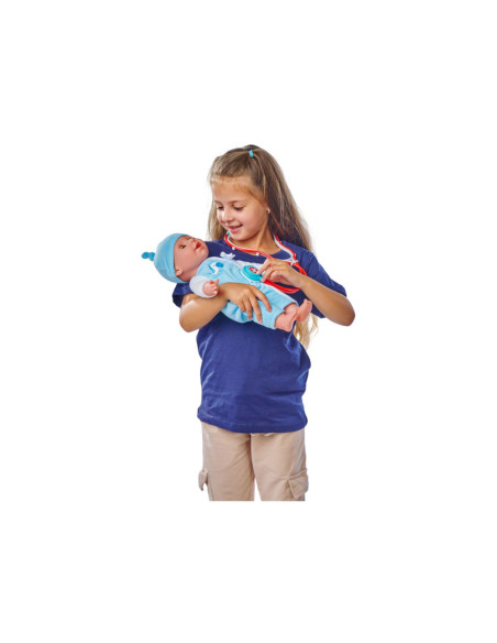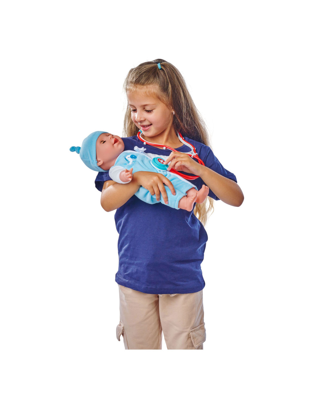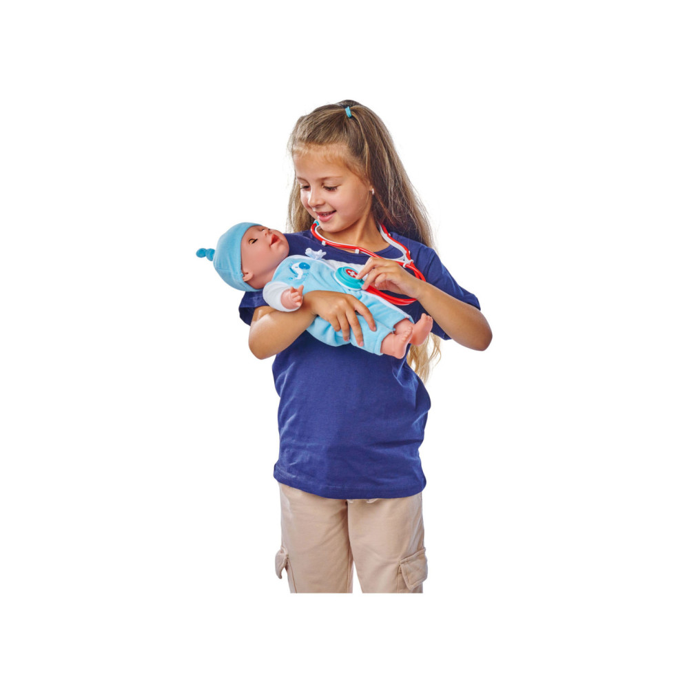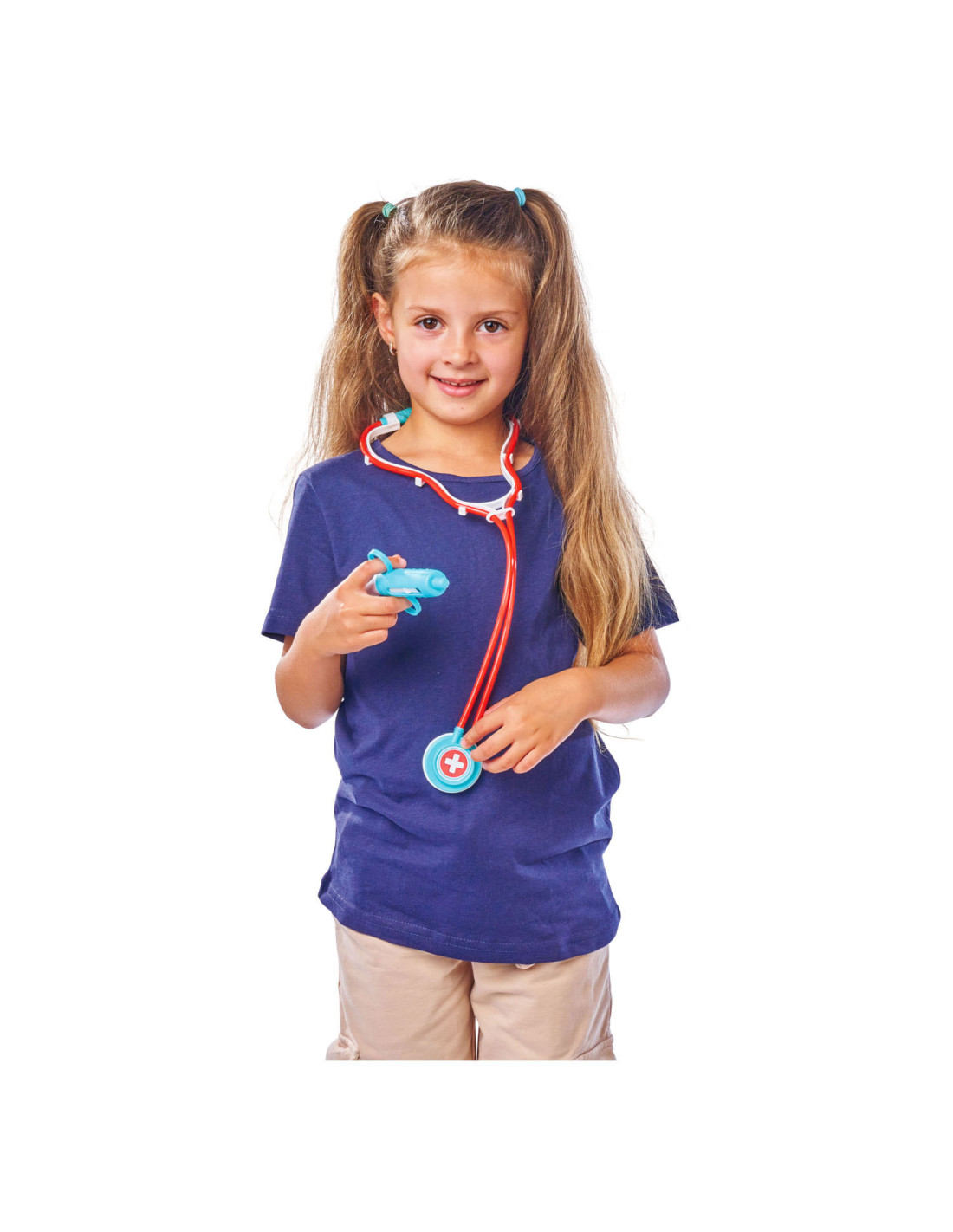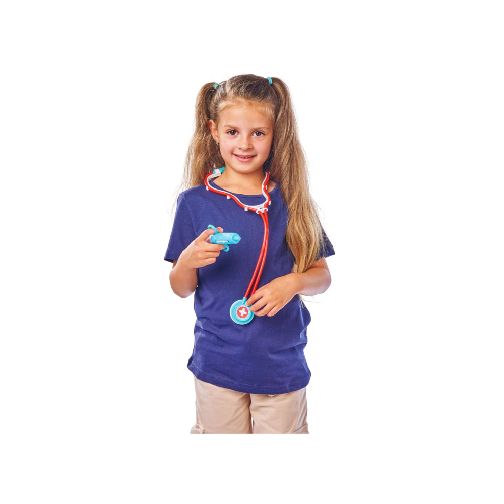 Kunststof dokterskoffer met 12 accessoires, waaronder een stethoscoop, een doktersbriefje, een thermometer en een pleister. Geschikt vanaf 3 jaar.