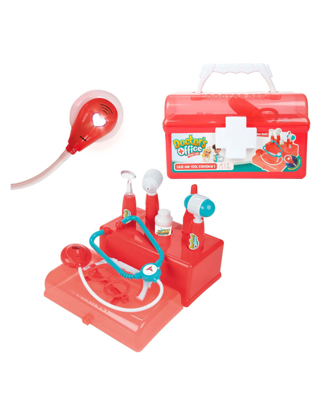 Dokterskoffer Rood met Accessoires 7dlg.