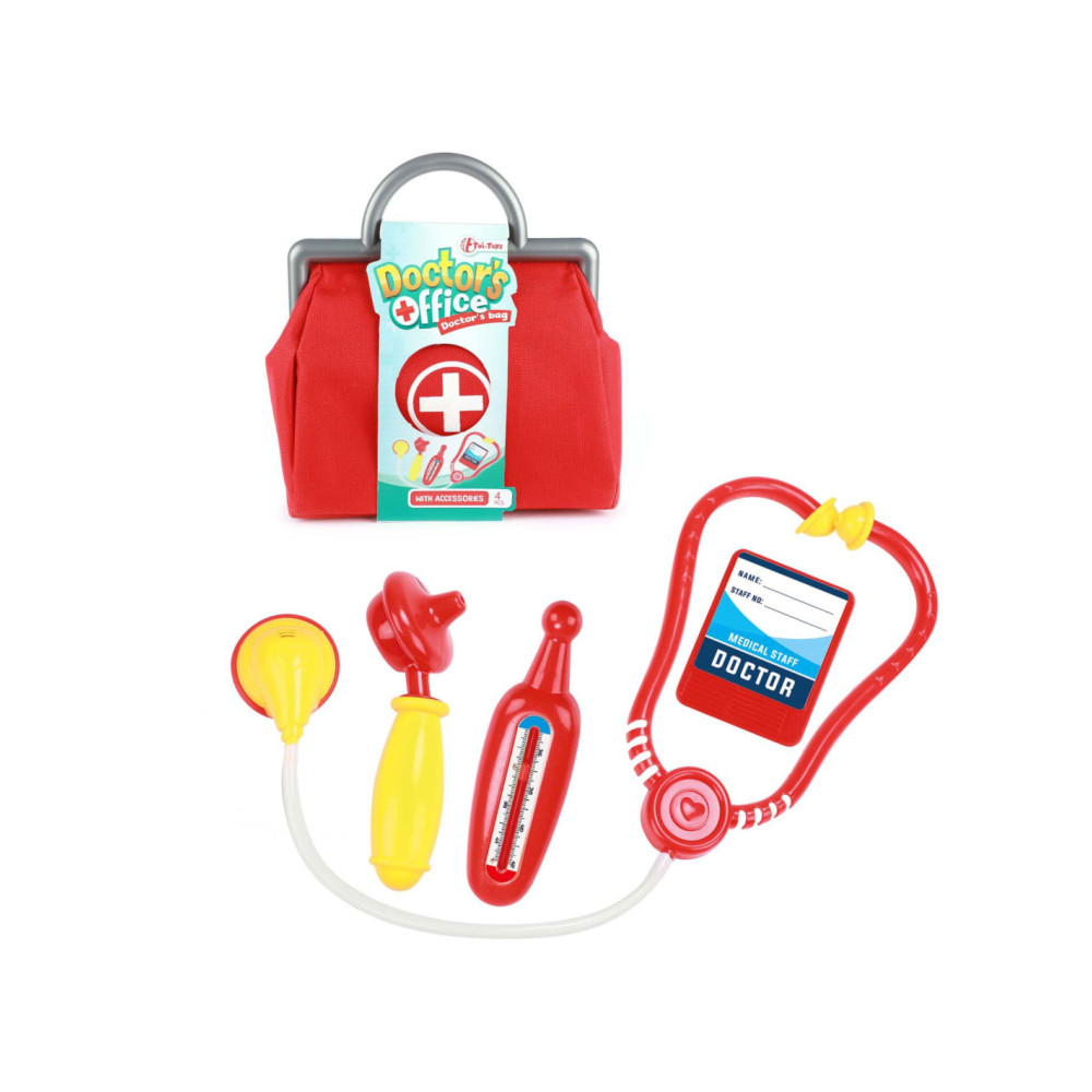 Dokter set in rode tas (6-delig). Geschikt voor kinderen vanaf 3 jaar.
